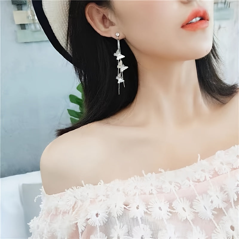 Add a touch of elegance to your outfit with these butterfly tassel long earrings featuring 925 silver needle. Ideal for women and girls as a stylish accessory.