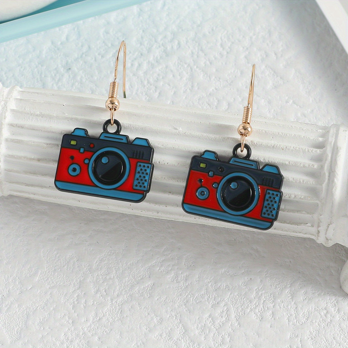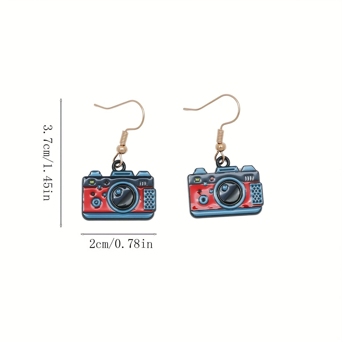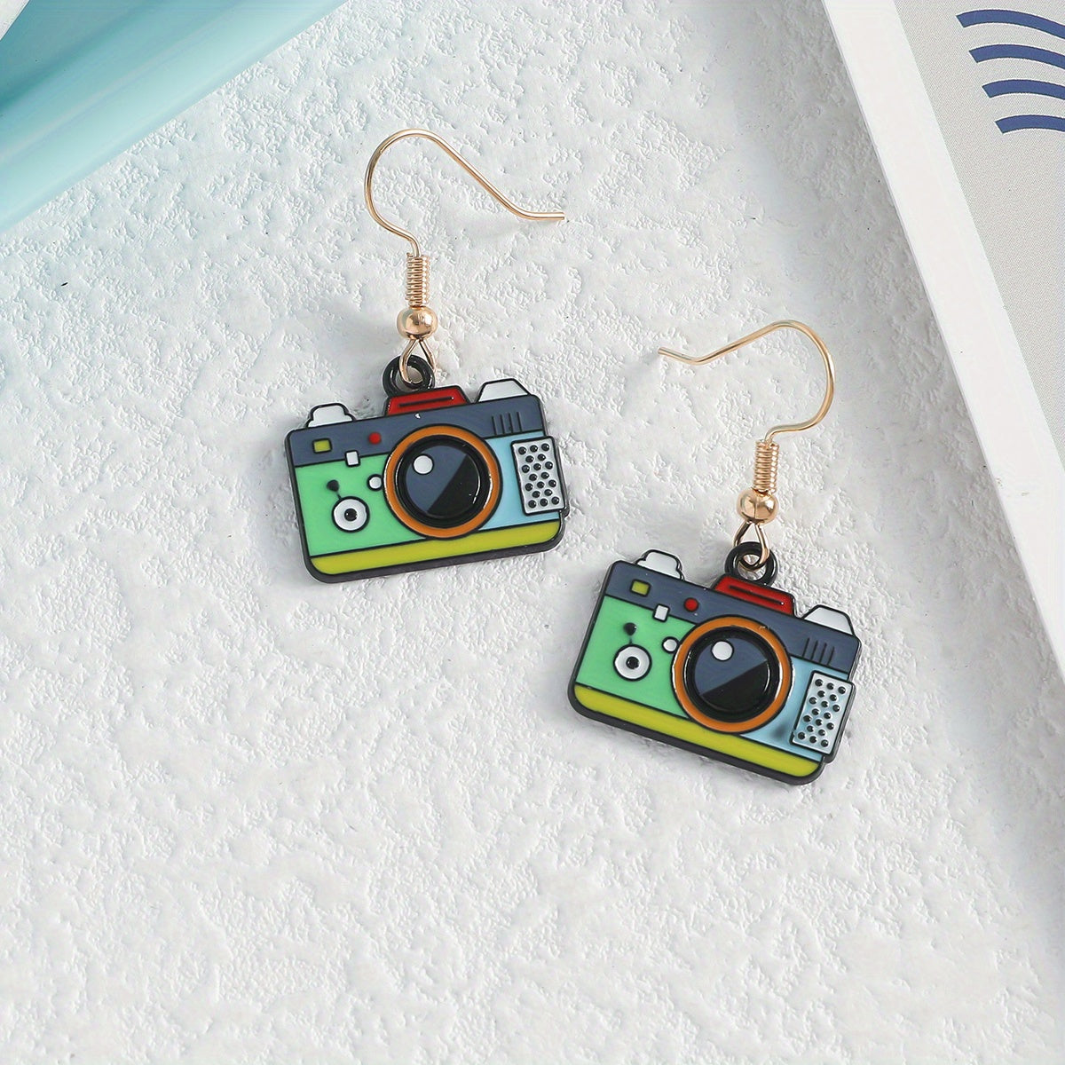Adorable cartoon camera dangle earrings made of zinc alloy. Perfect daily wear accessories for women and girls.