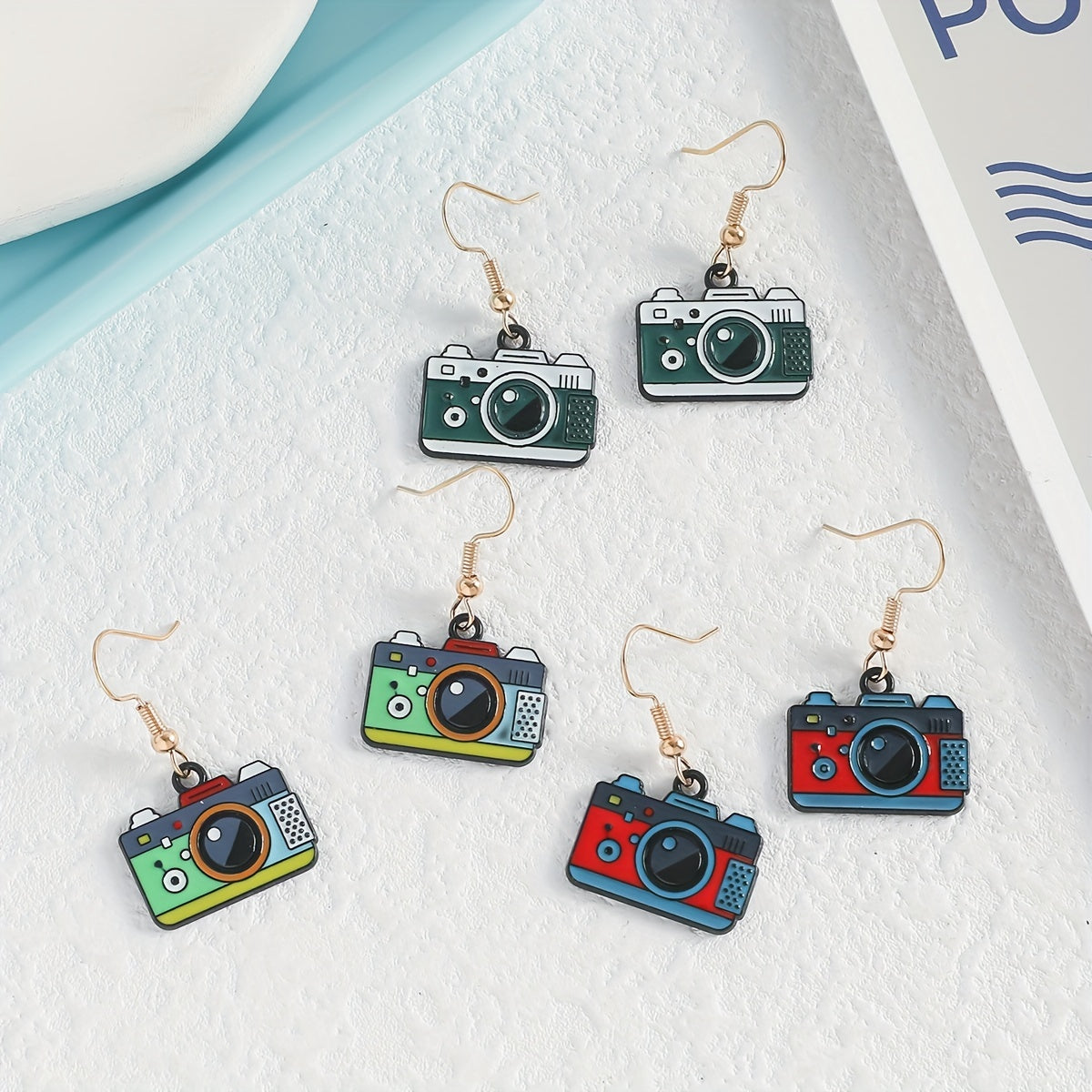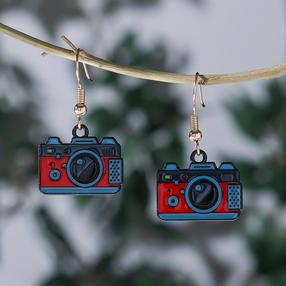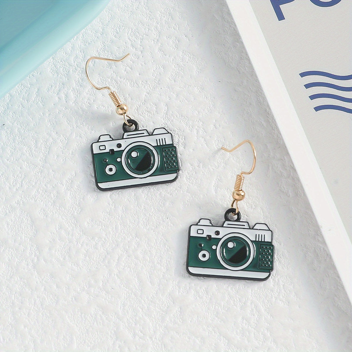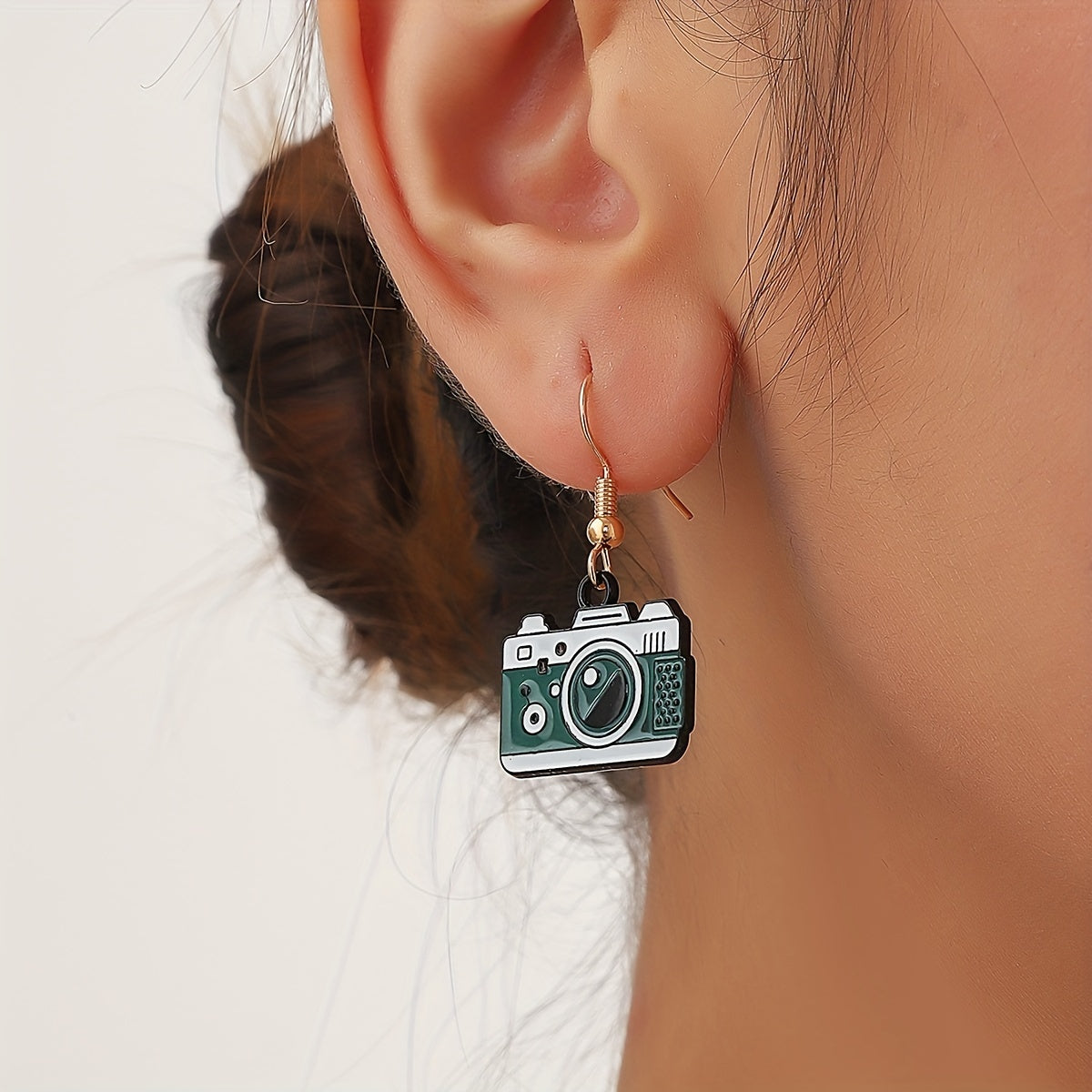 Adorable cartoon camera dangle earrings made of zinc alloy. Perfect daily wear accessories for women and girls.