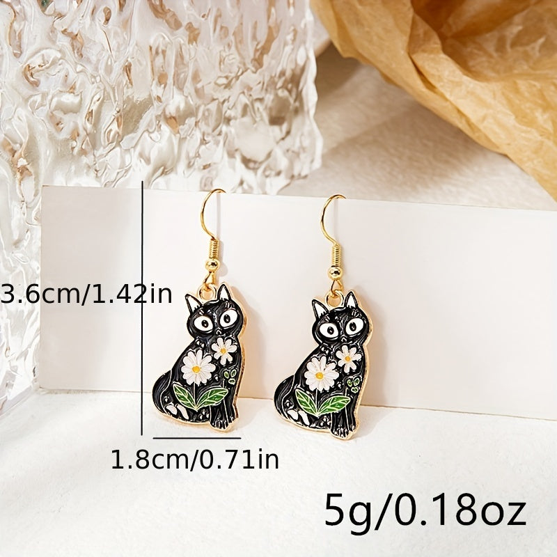 These adorable cat flower pattern enamel hook earrings are made of high-quality alloy material. They make a perfect gift for any female who loves unique and cute jewelry.
