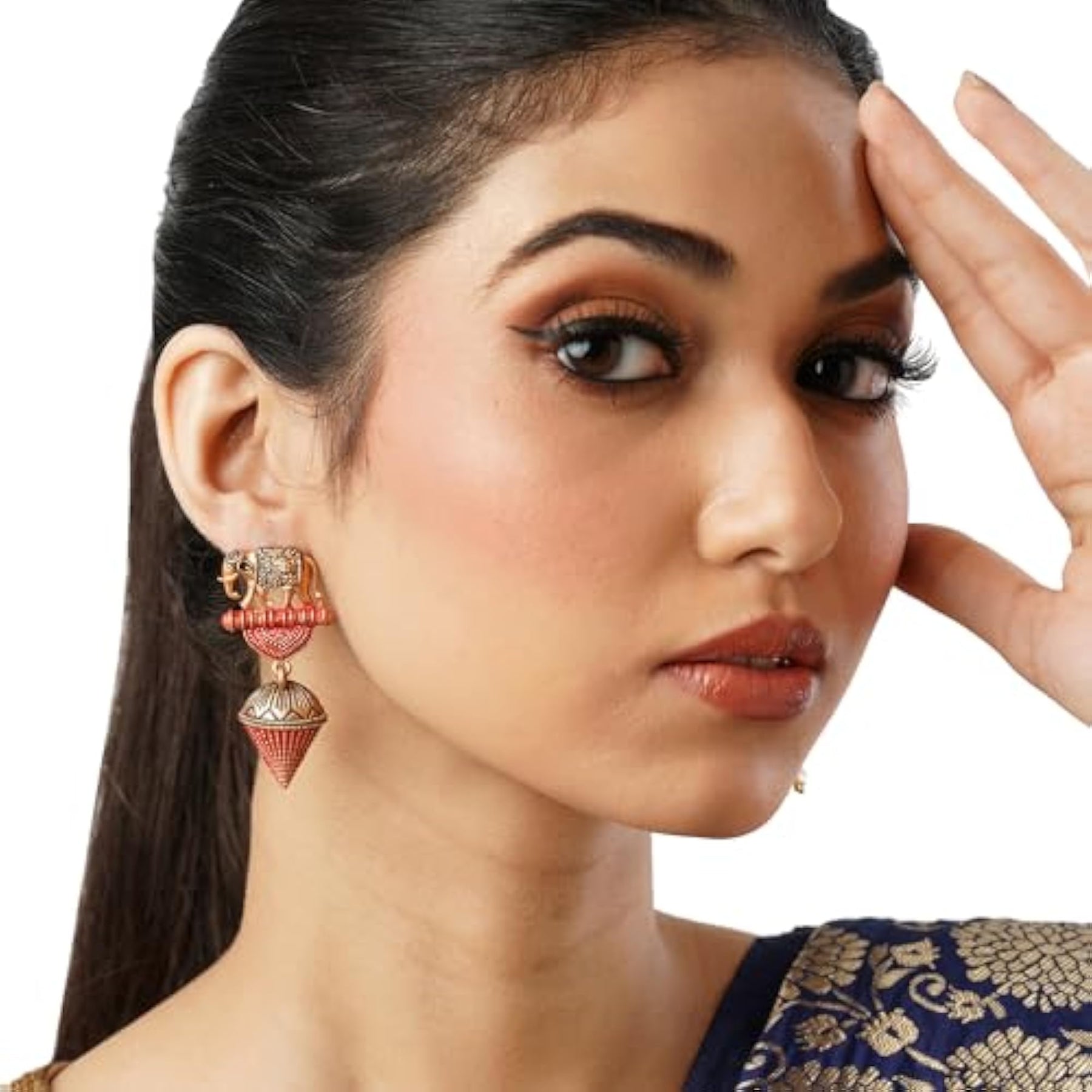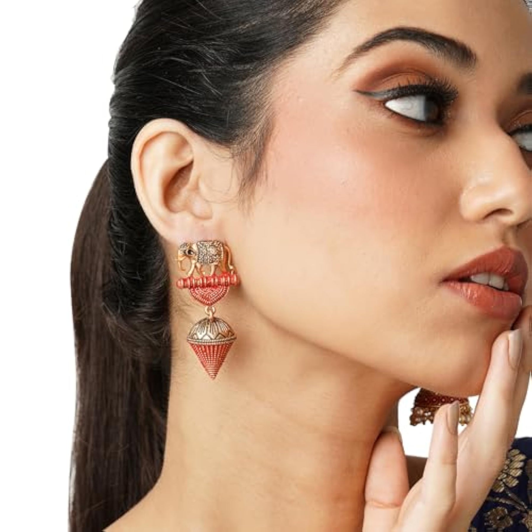 These Chandbali ethnic earrings are a stunning addition to your collection, featuring intricate design and vibrant colors.