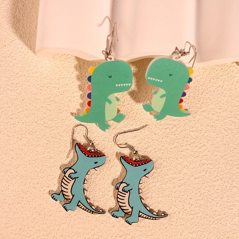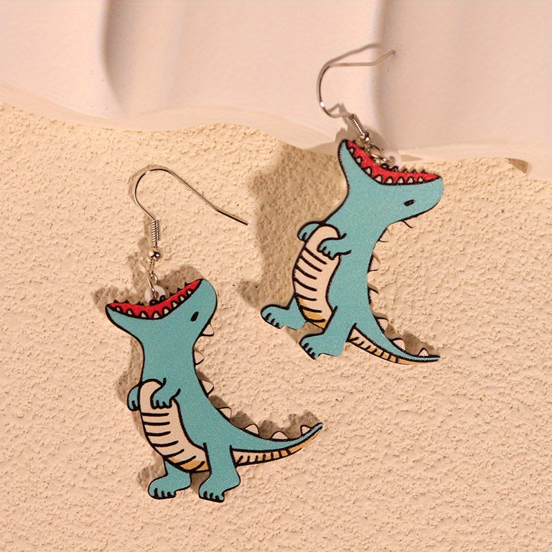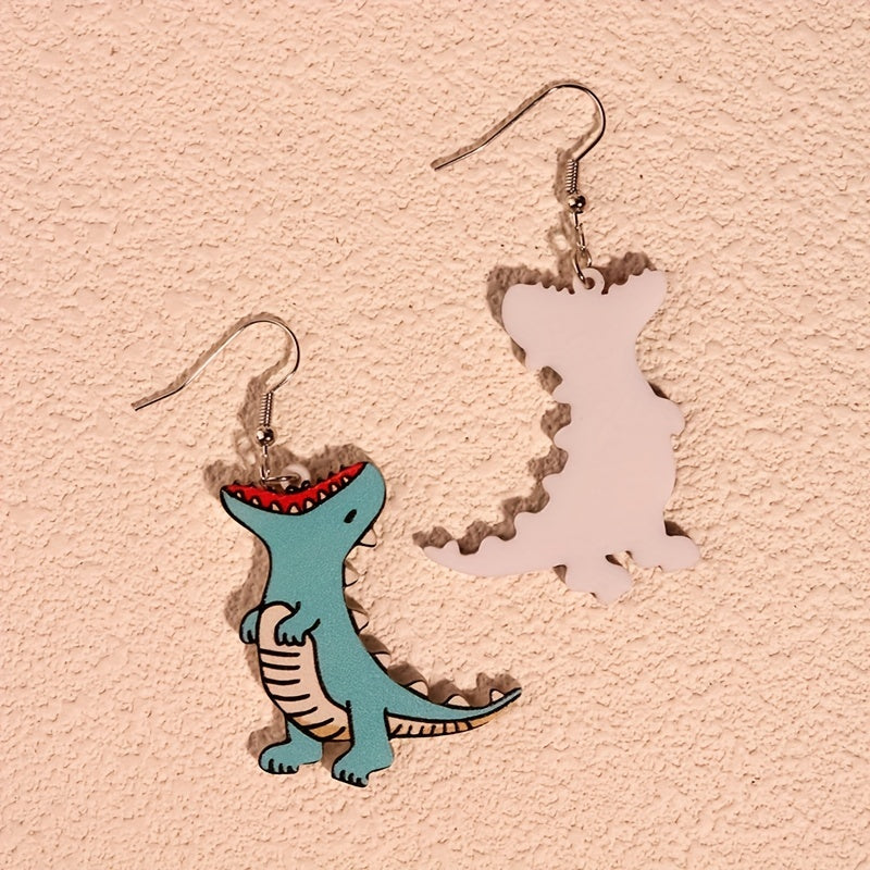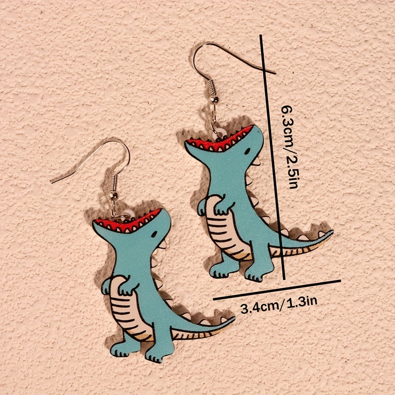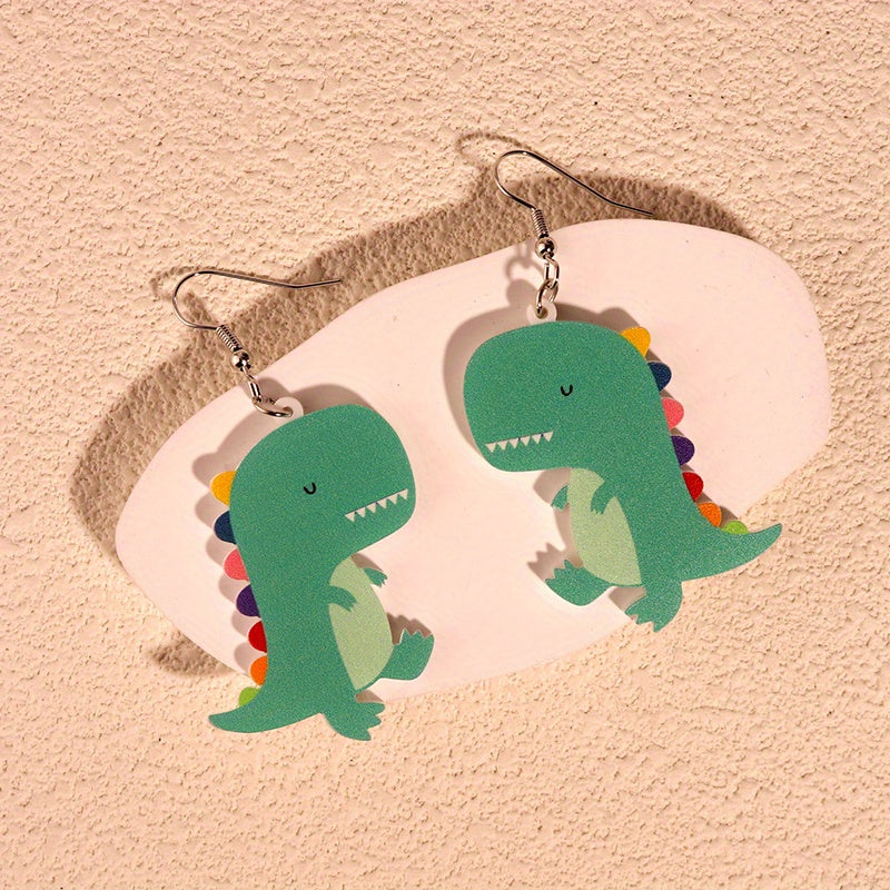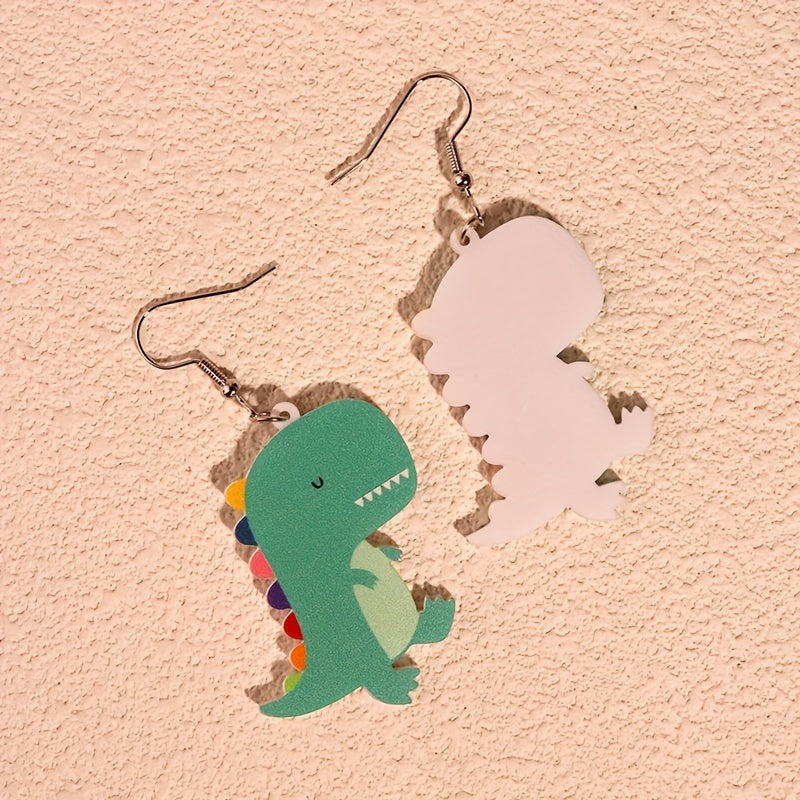 Adorable cartoon dinosaur earrings made from acrylic, perfect for women and girls. Cute and fun accessory.