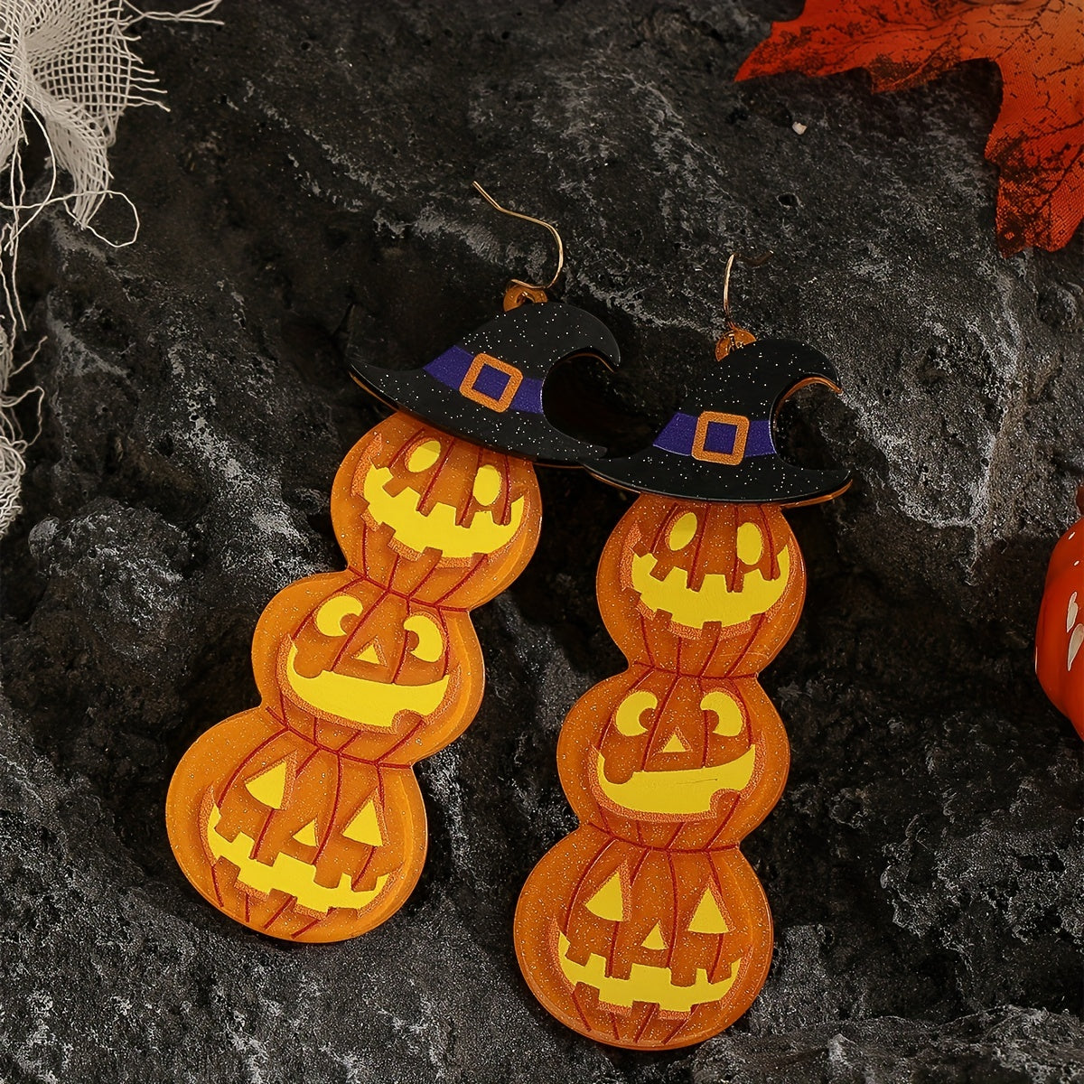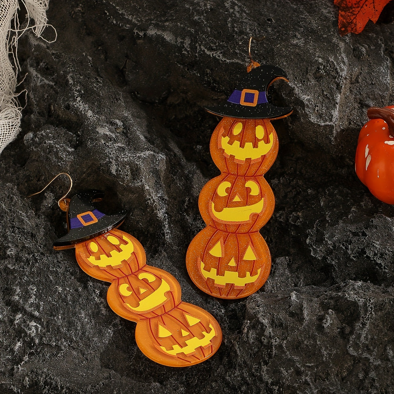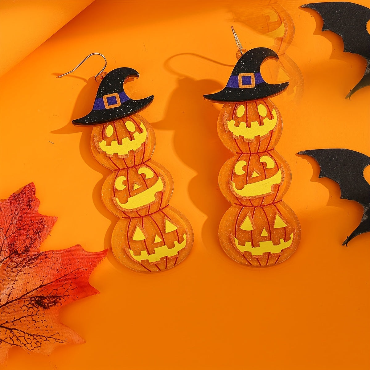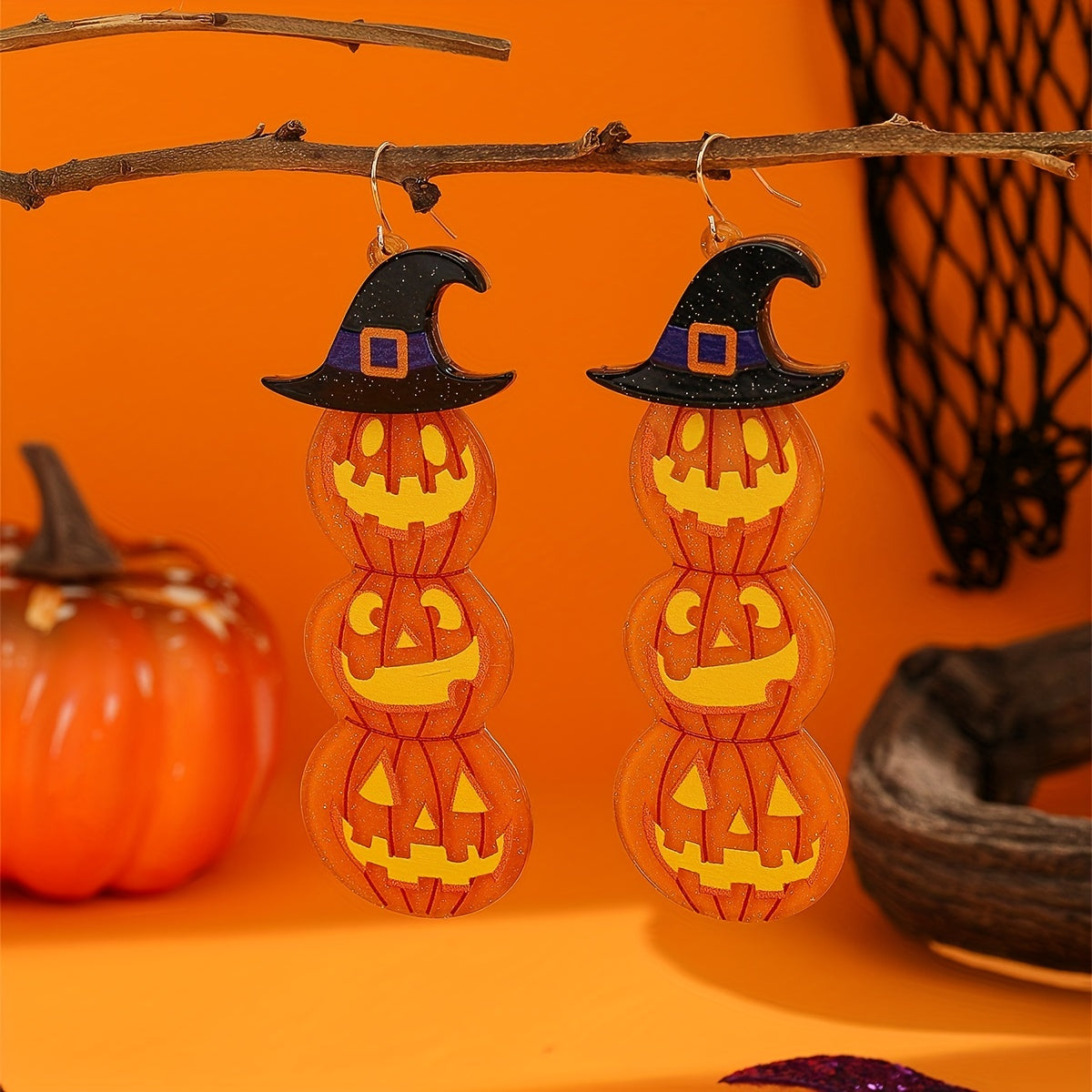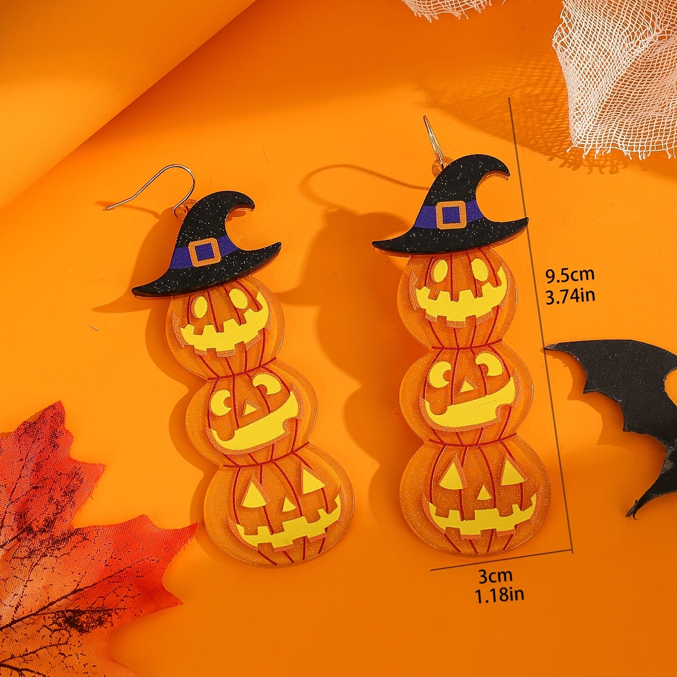 These Halloween-themed earrings feature a dark witch hat design with a dangling pumpkin, perfect for adding a vocation style to your outfit. They make a great gift for females who love unique jewelry.