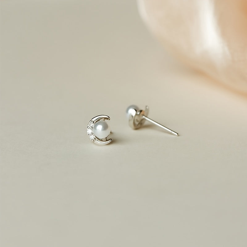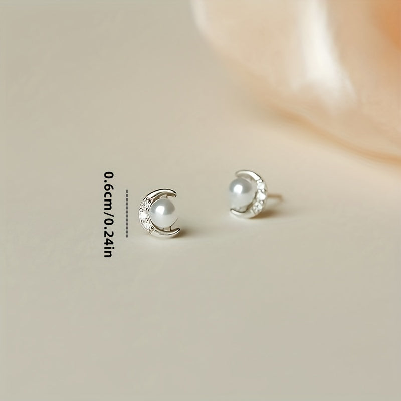 Delicate Faux Pearl Moon Stud Earrings Jewelry Gift Women Girls