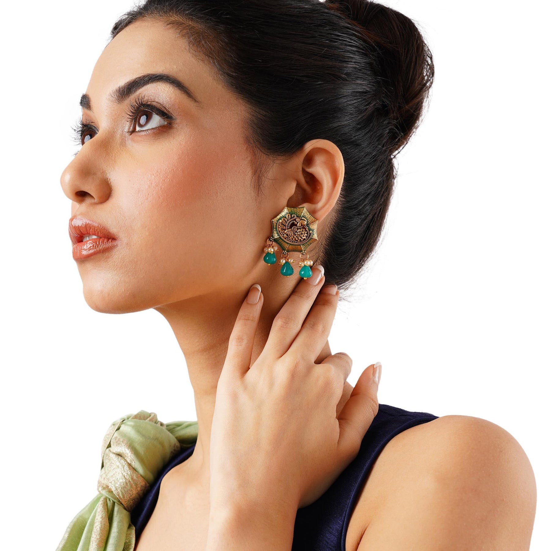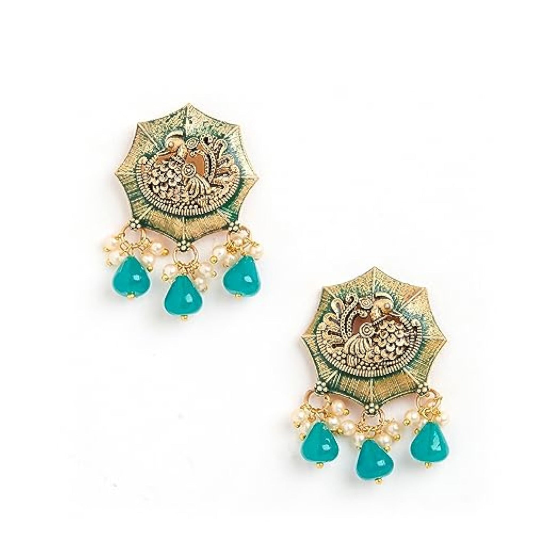 Add a touch of cultural elegance to your outfit with these handcrafted ethnic earrings featuring intricate detailing.