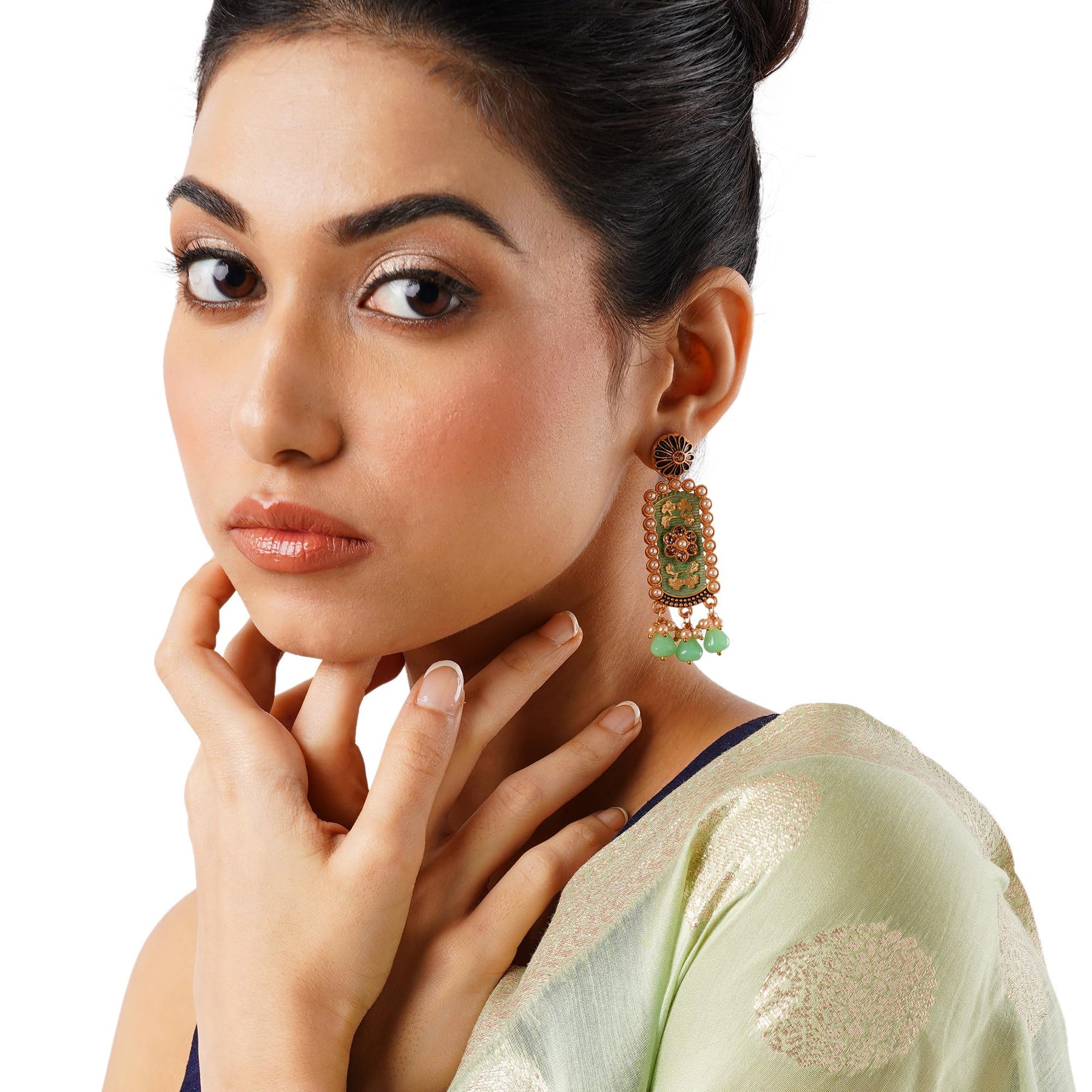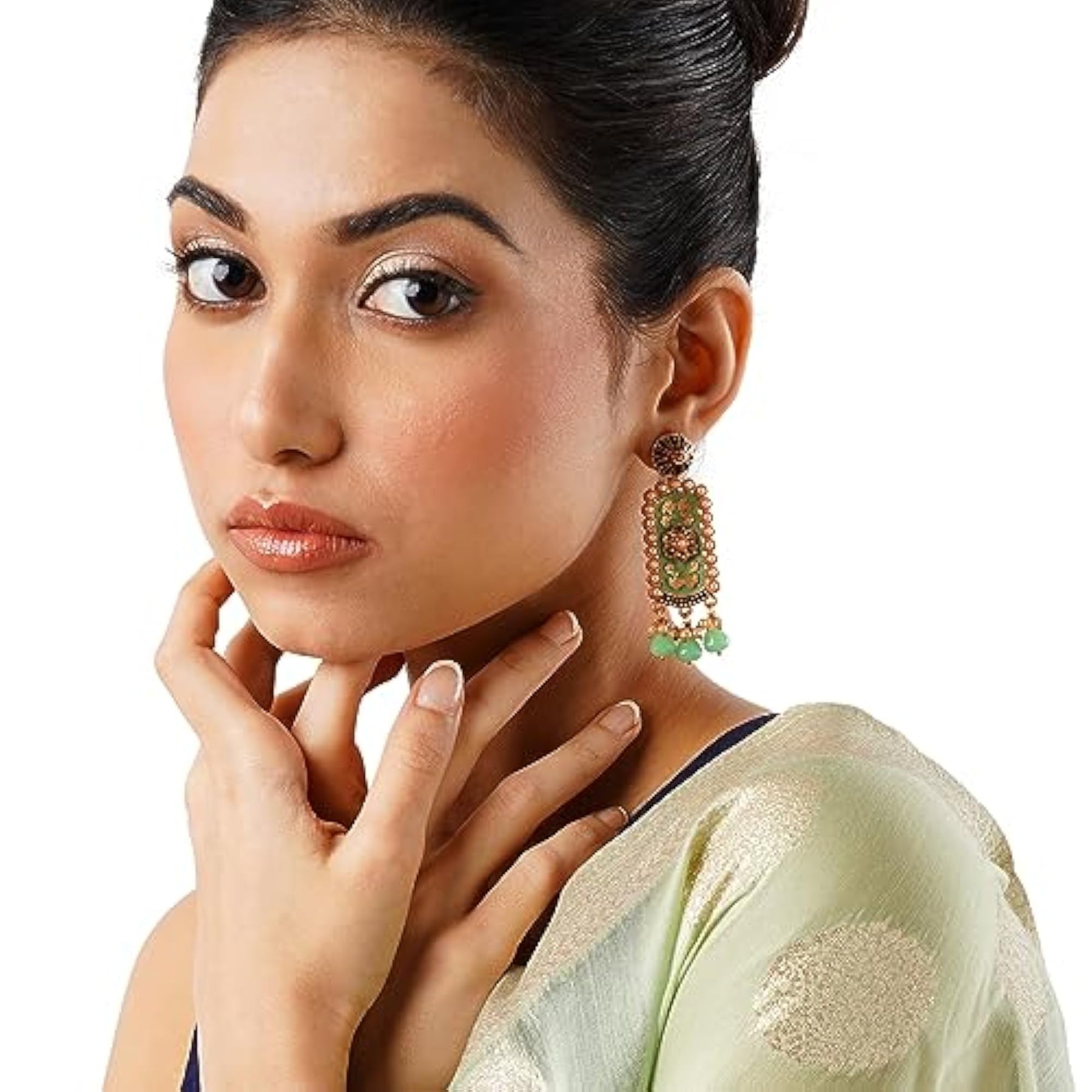 Add a touch of cultural elegance to your outfit with these stunning ethnic statement earrings. The intricate detailing adds a unique charm to your look.