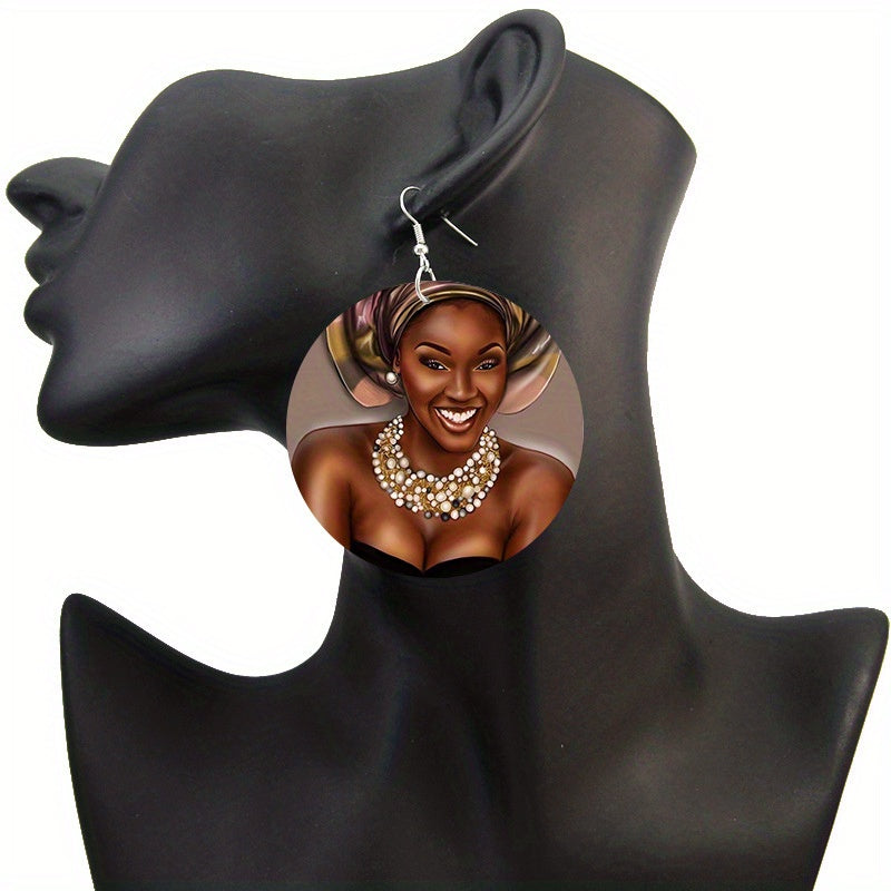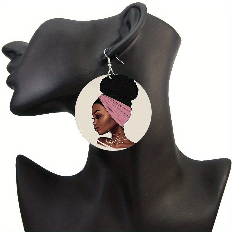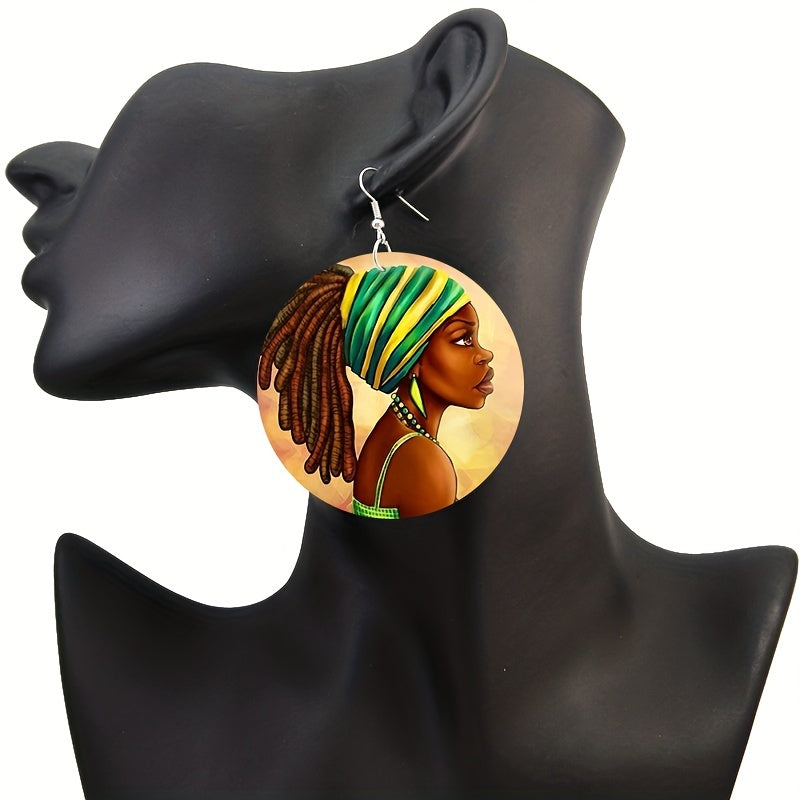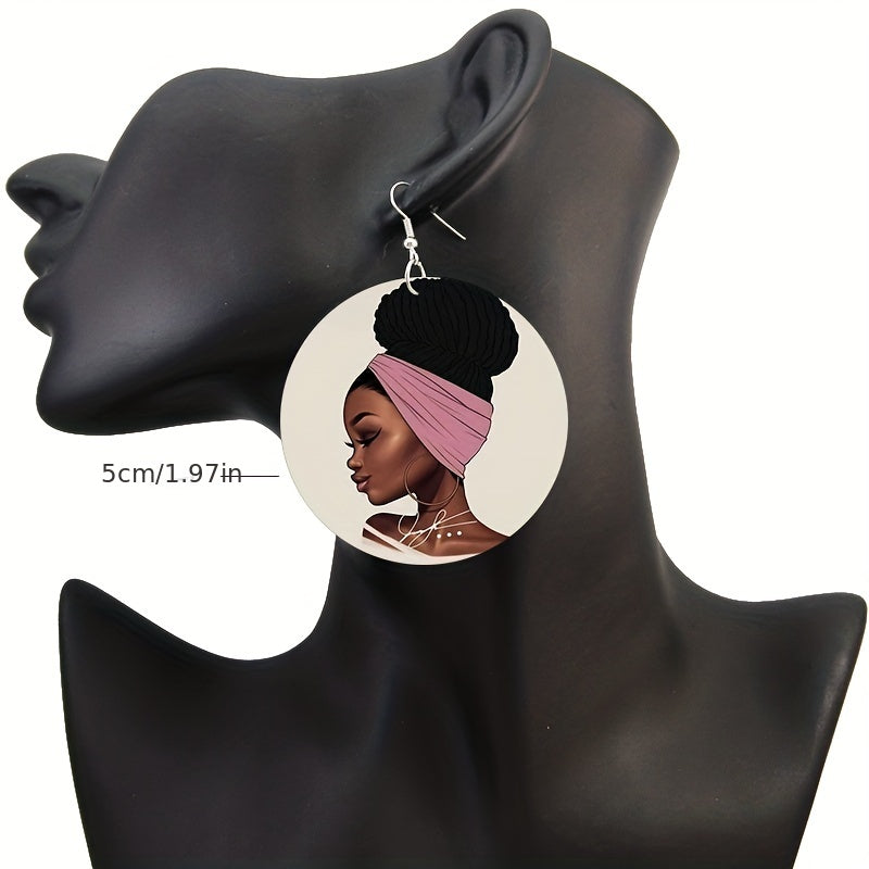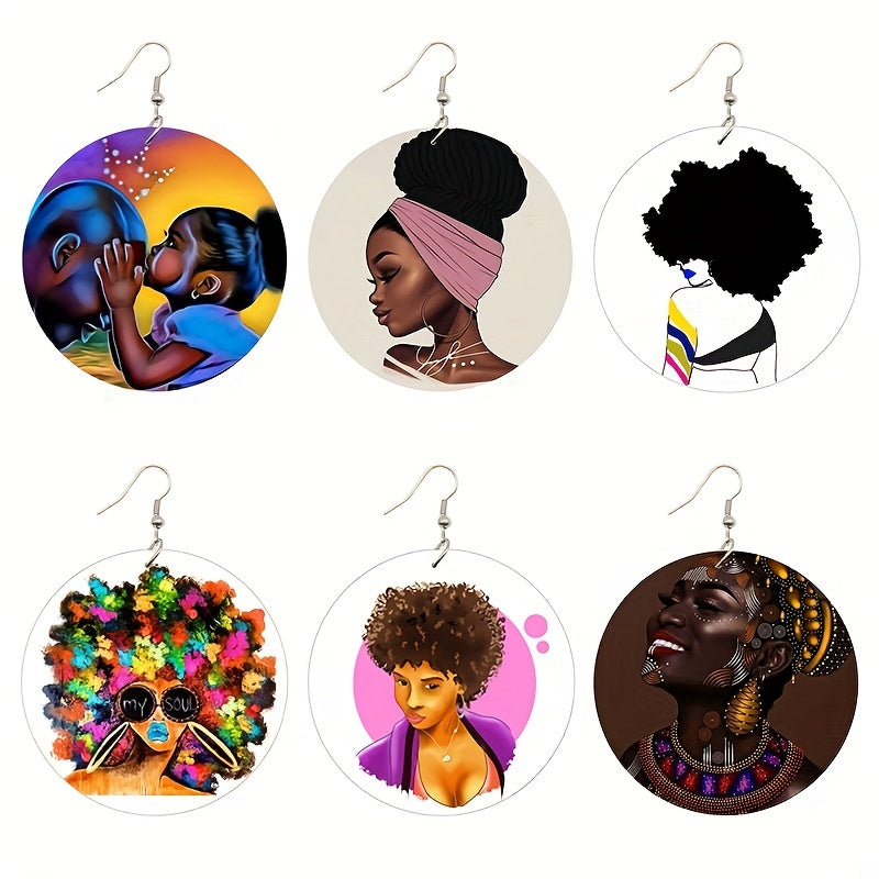 These unique resin earrings feature a bold African head pattern design, making them a stylish accessory. Perfect for adding a touch of personality to any outfit or as a thoughtful gift for a female friend.