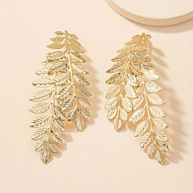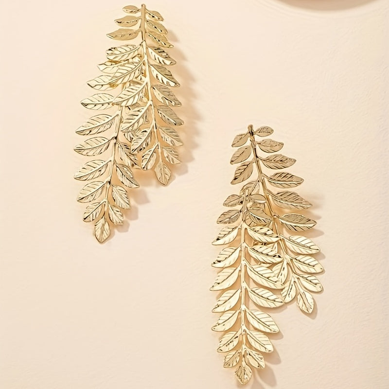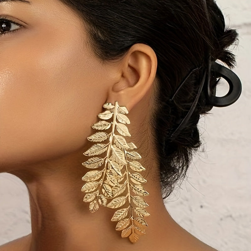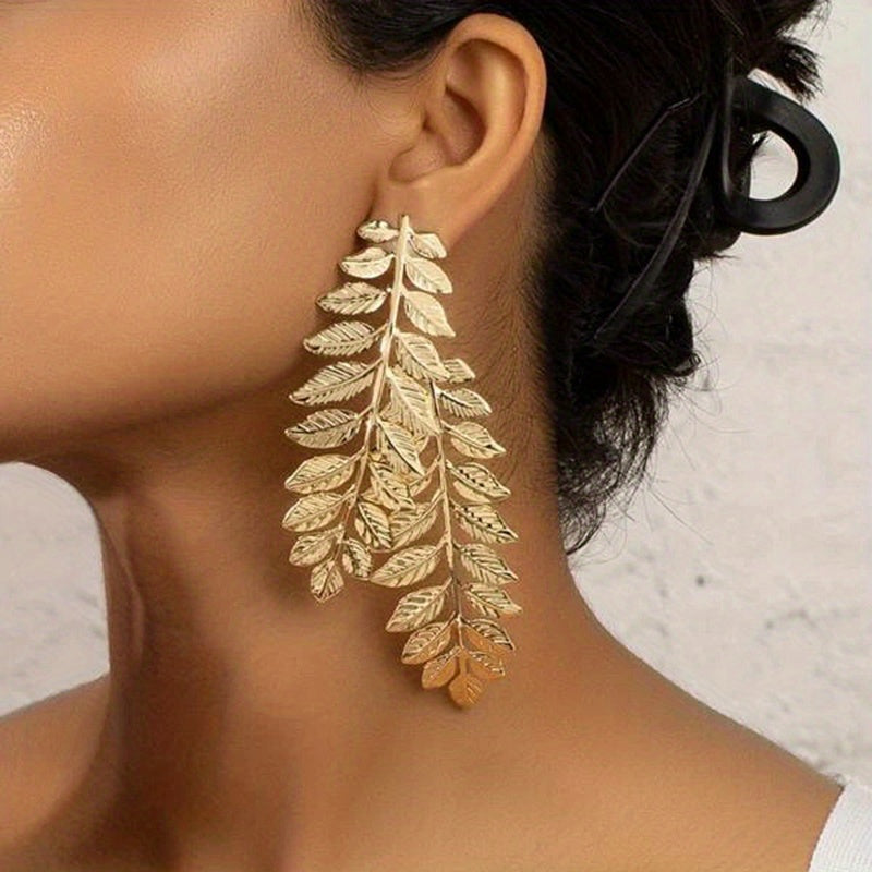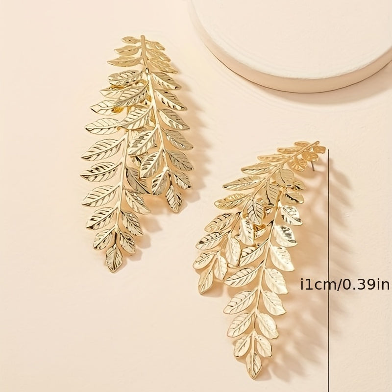 Make a statement with these stunning golden leaf stud earrings. Perfect for parties or showroom events.