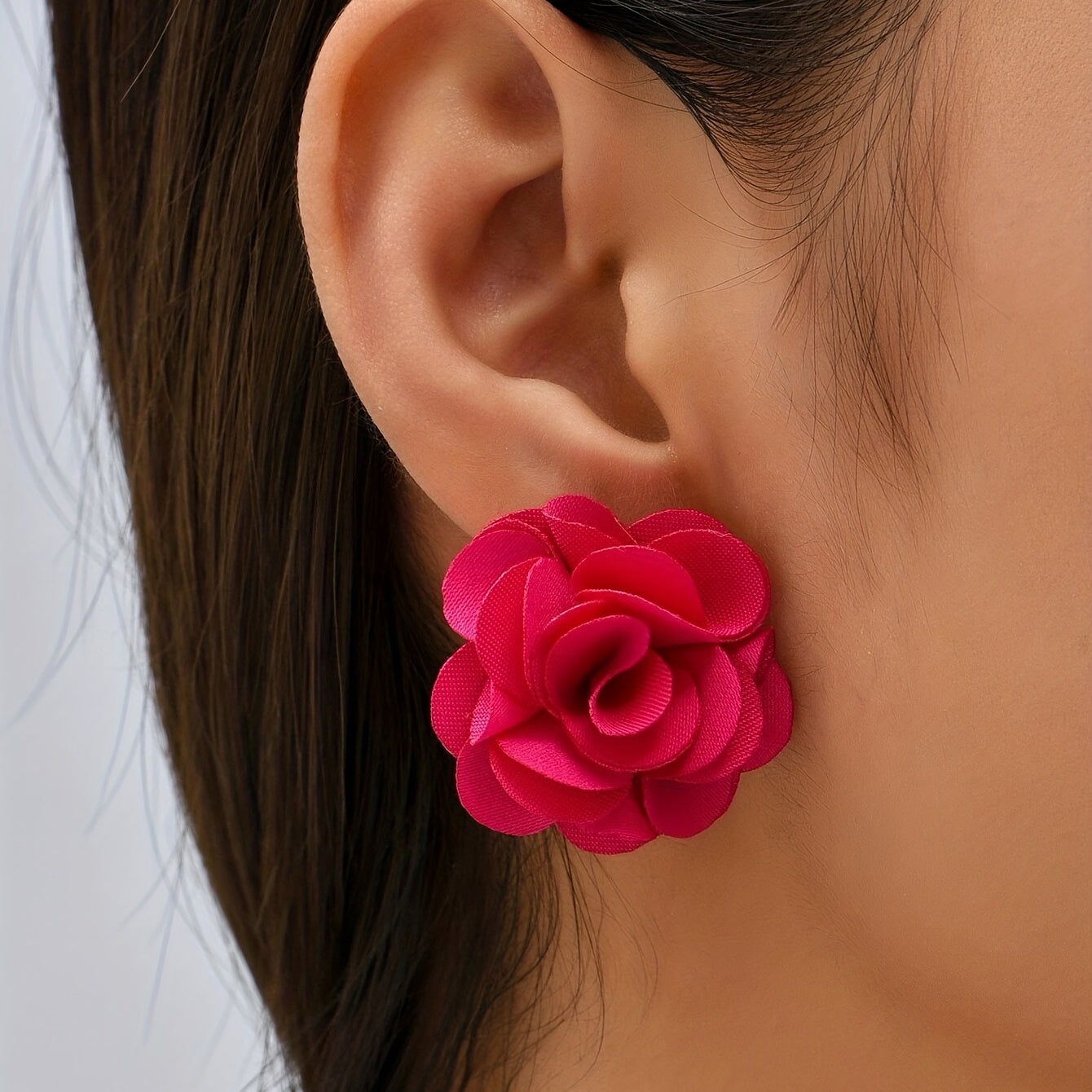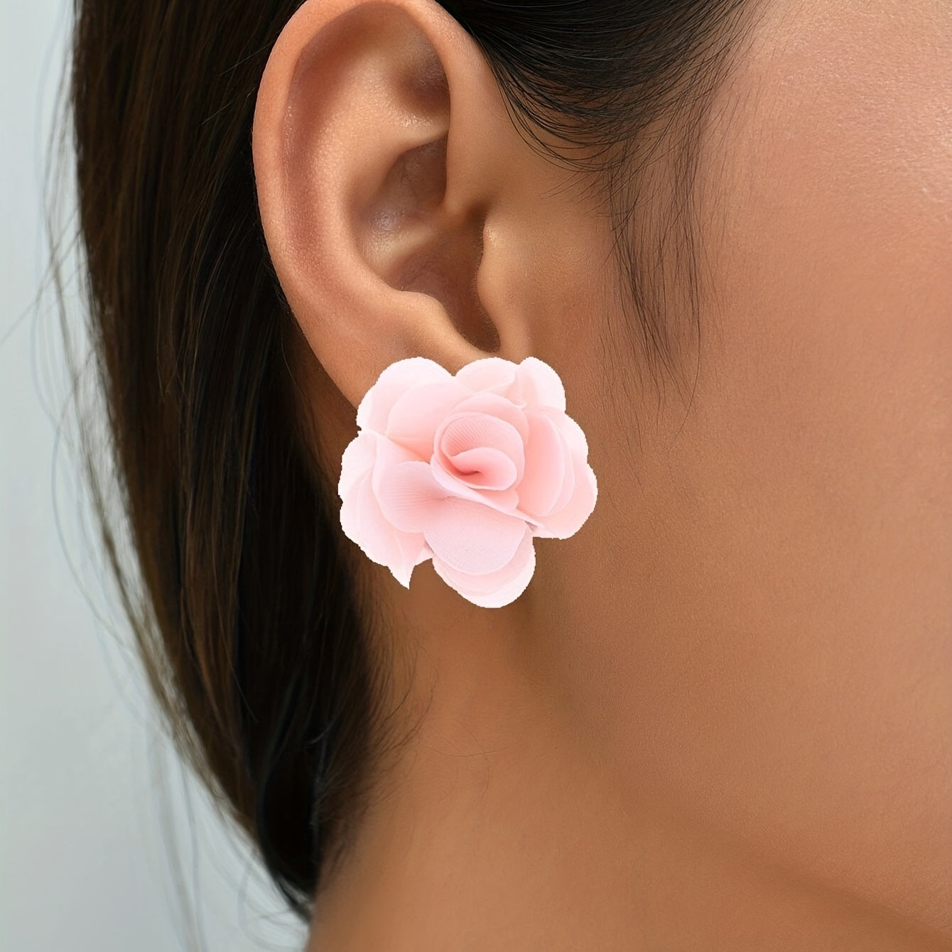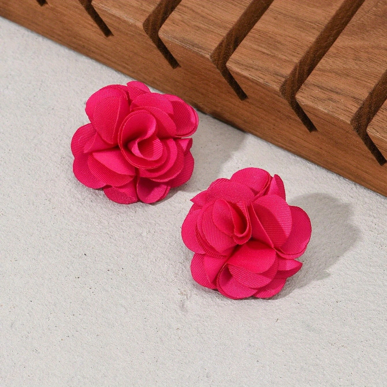 These fabric flower stud earrings are perfect for adding a touch of elegance to your outfit. They are a great accessory for vocation or leisure style.