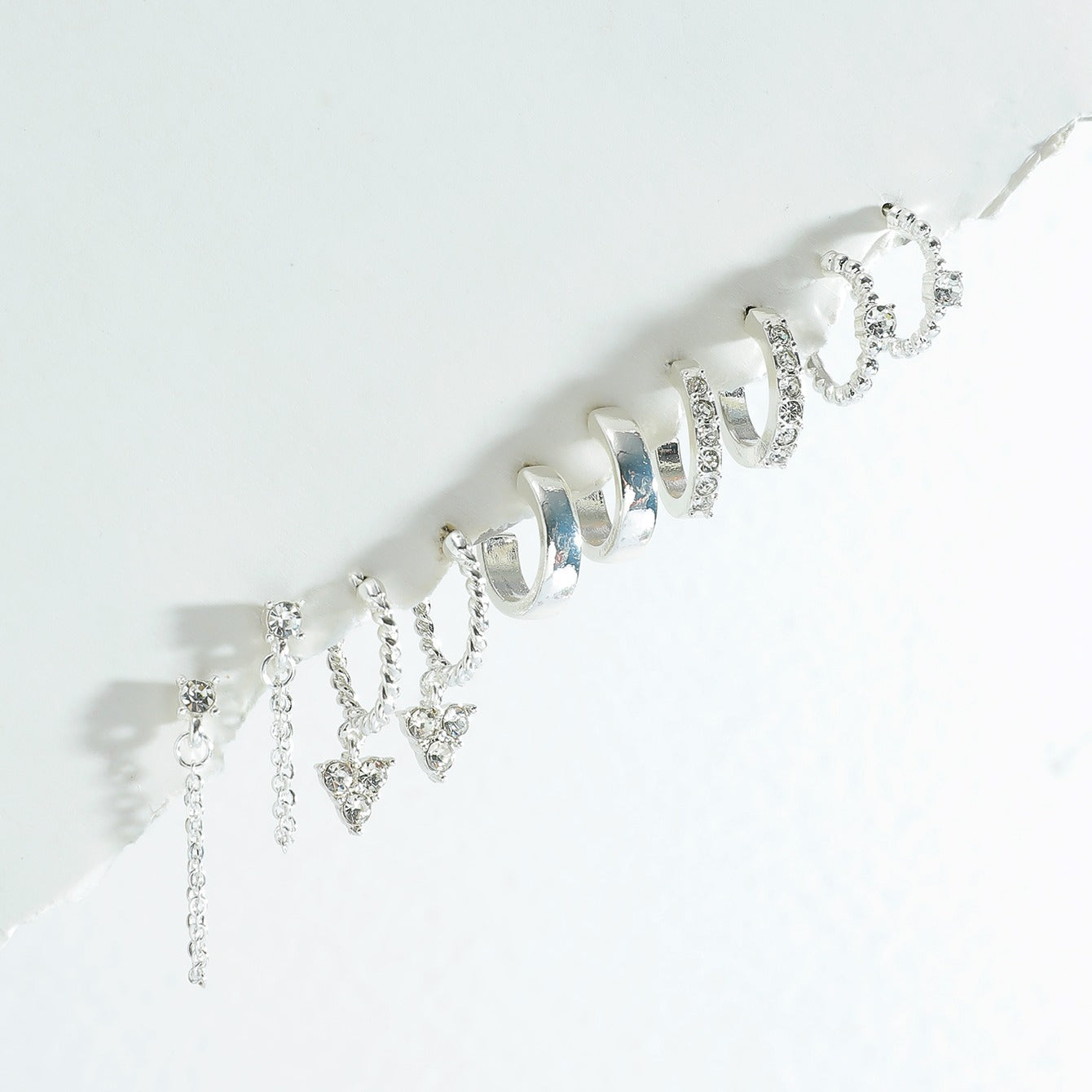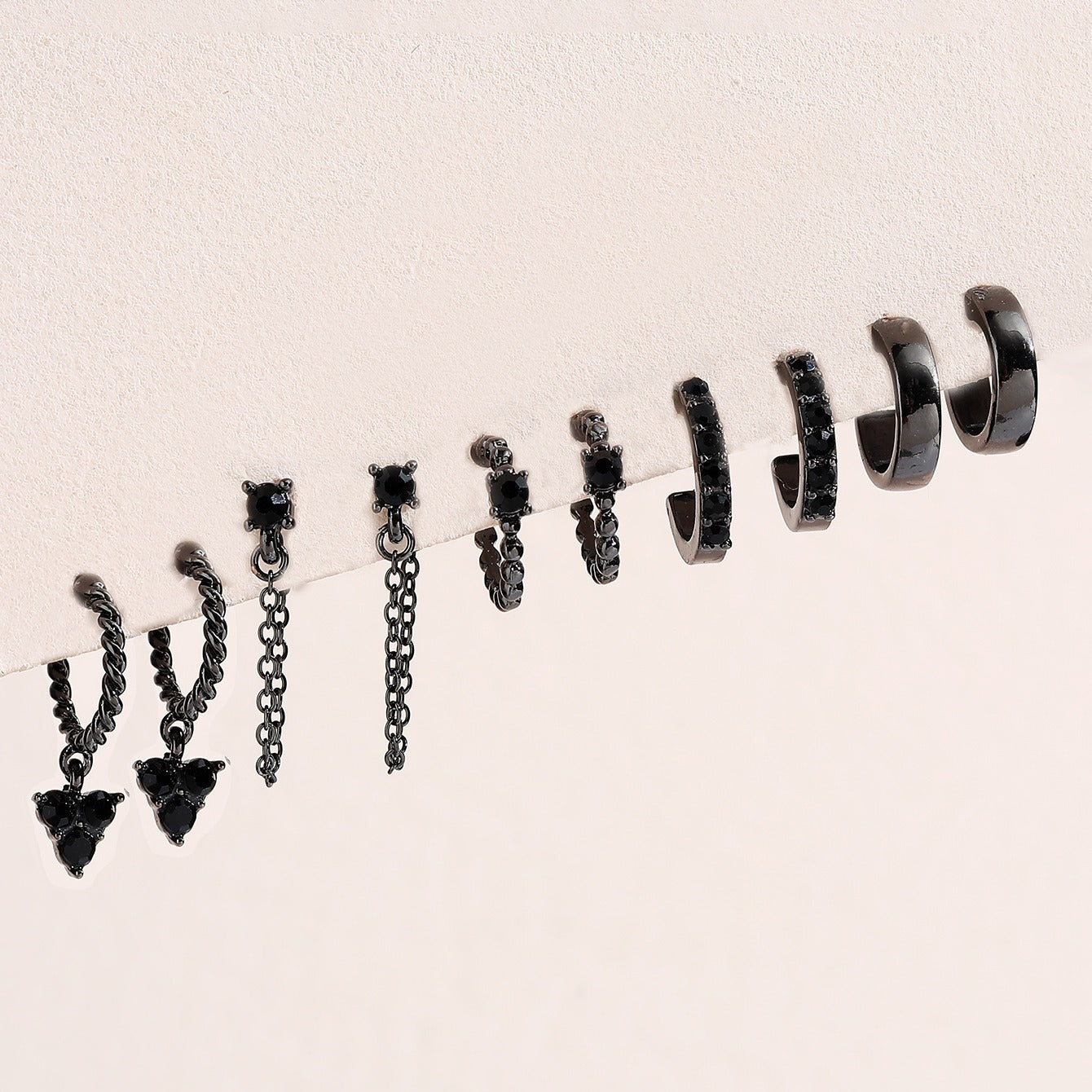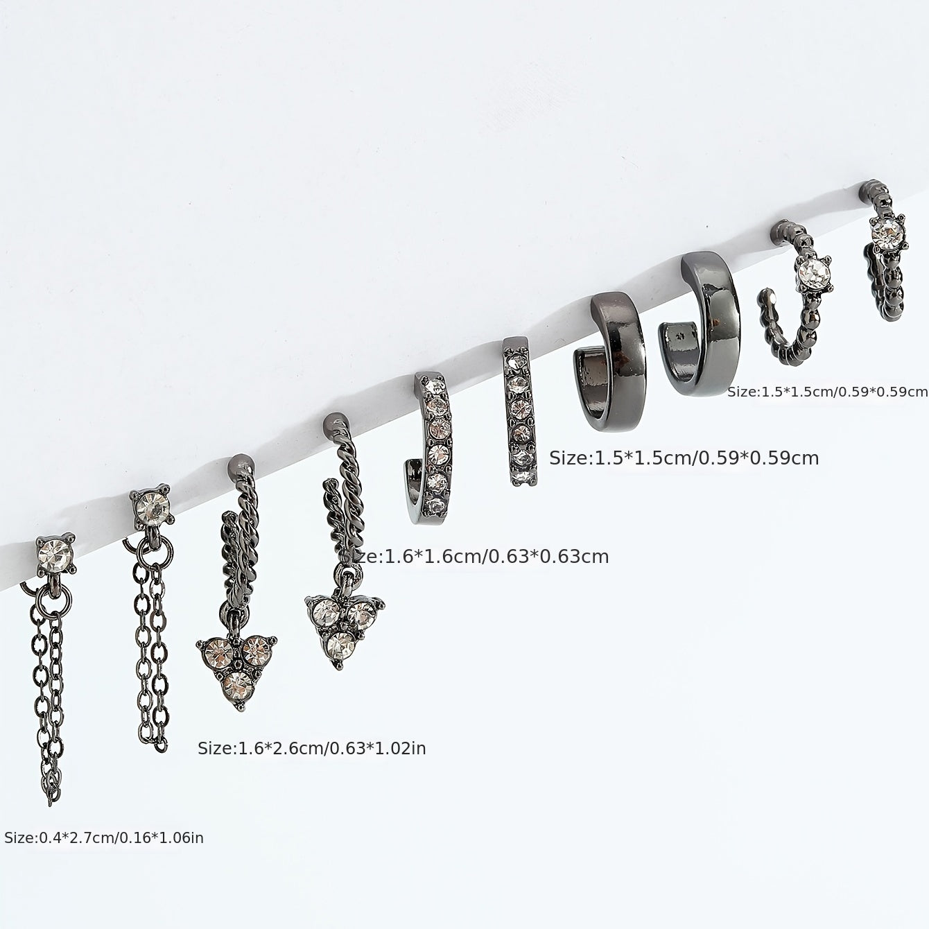 Add a touch of elegance to your outfit with this set of 5 pairs of geometric chain earrings. Made with 14K gold plating, these earrings are perfect for any occasion.