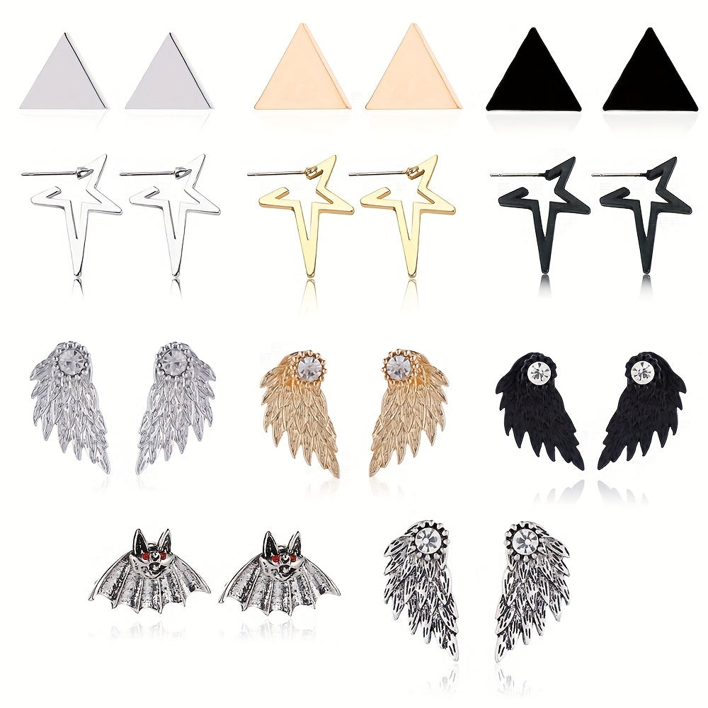 Piercing Bat Spider Wings Hollow Geometric Star Stud Earrings are a unique and stylish accessory for both men and women.
