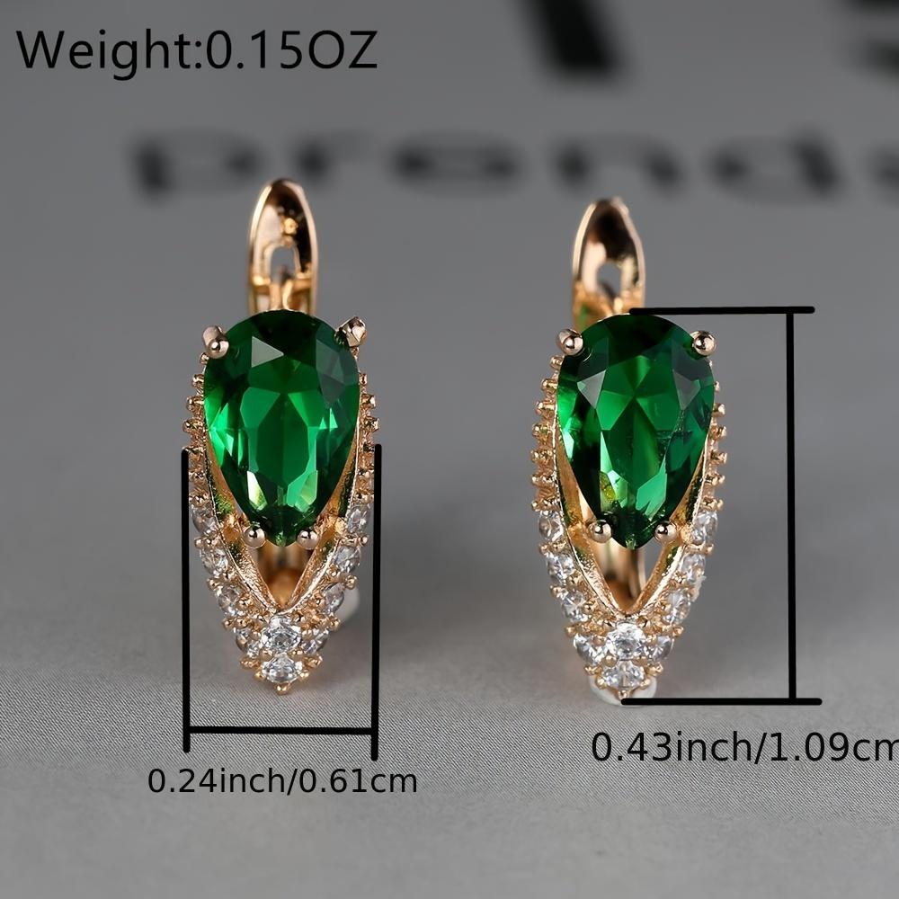 Enhance your style with these stunning aqua green stone earrings. The geometric teardrop design with zircon accents adds a touch of elegance to any outfit.