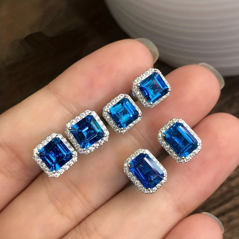 Elegant and chic, these geometric zirconia stud earrings with rhinestones are the perfect accessory to elevate any outfit.