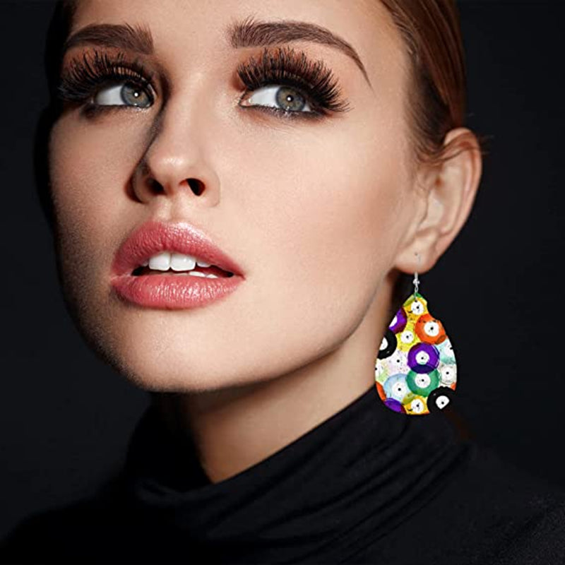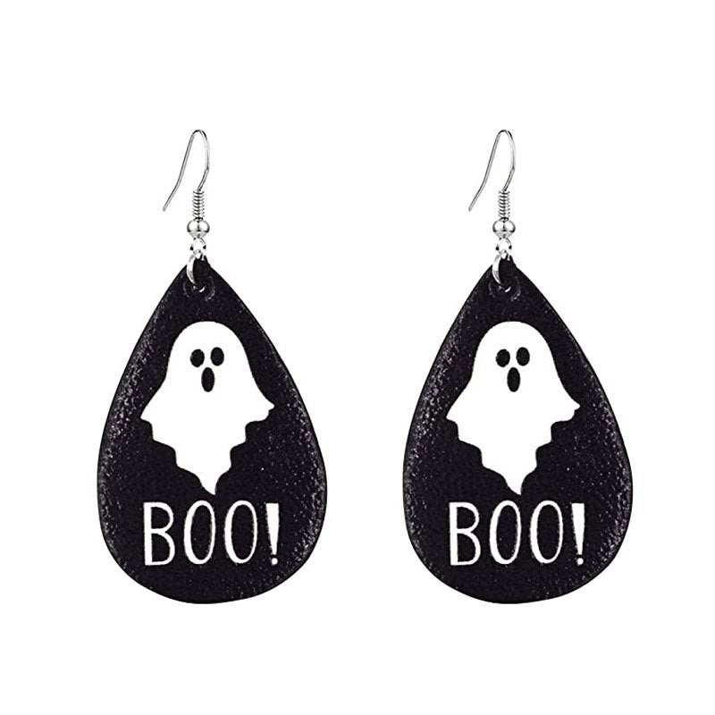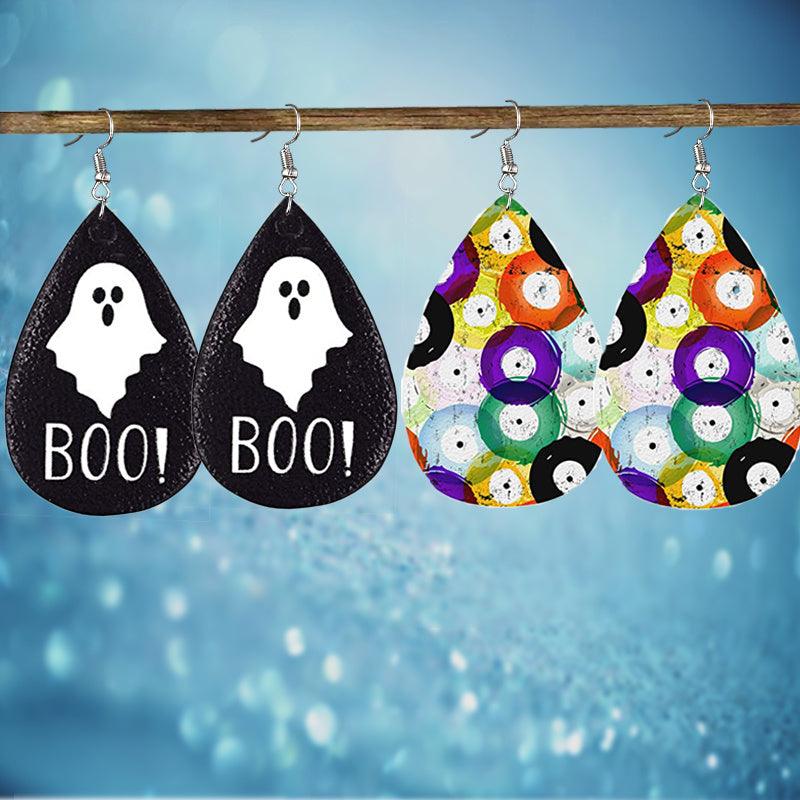 Get into the Halloween spirit with these Gothic-style PU leather earrings featuring a ghost and colorful eyes pattern. Ideal gift for females.