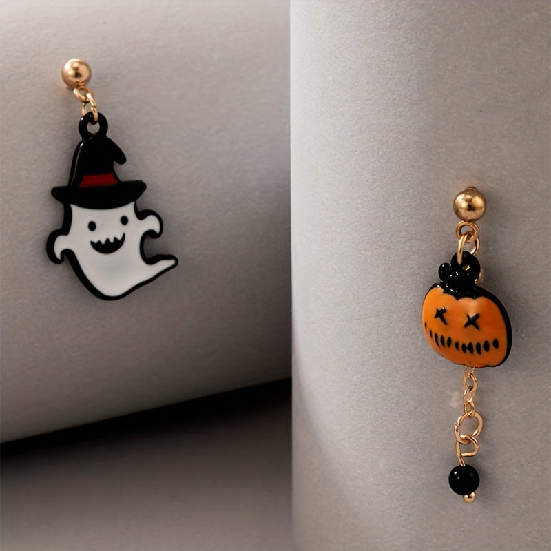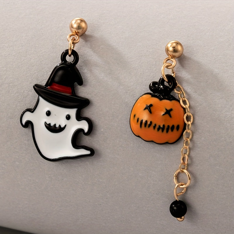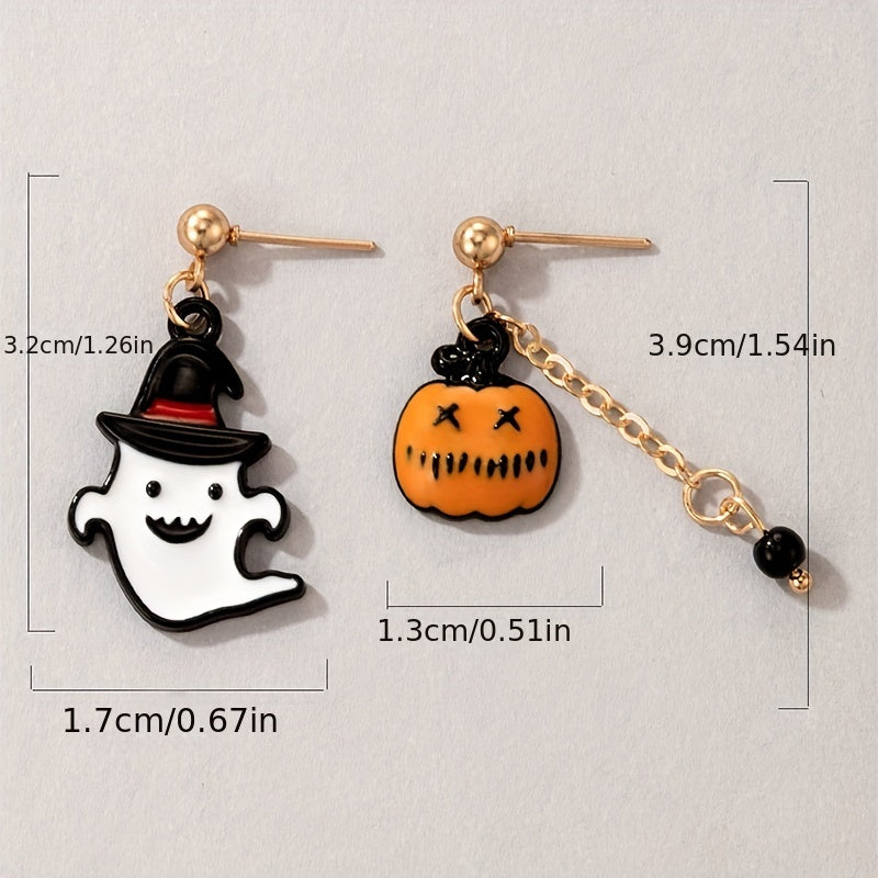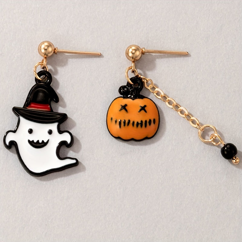 Ghost & Pumpkin Asymmetric Earrings Hip Hop Style Alloy Jewelry