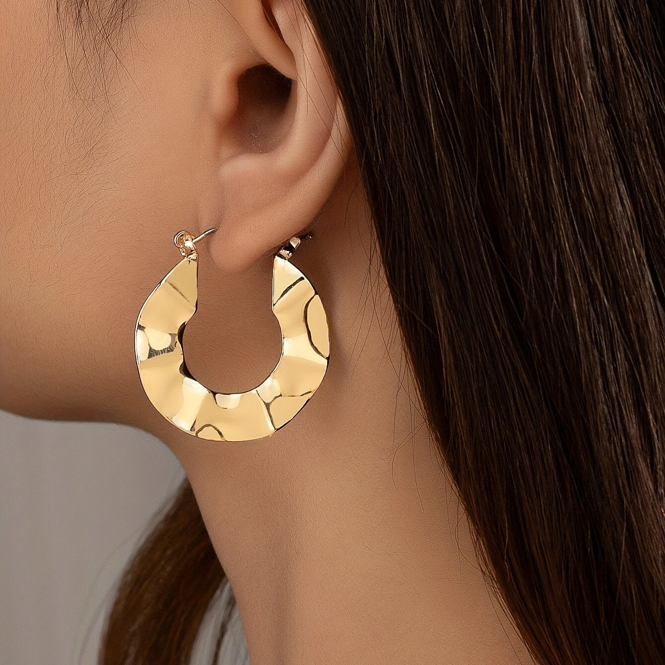 These chunky hoop earrings are a perfect blend of bohemian and leisure style. Made of high-quality alloy with 18K gold plating, these earrings are a great addition to any outfit. Perfect for female gift.