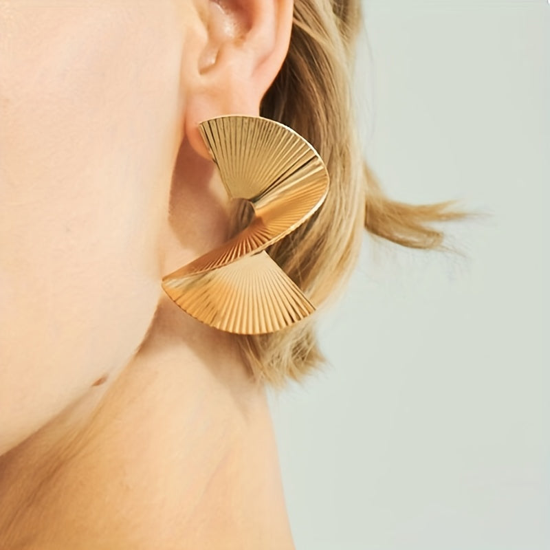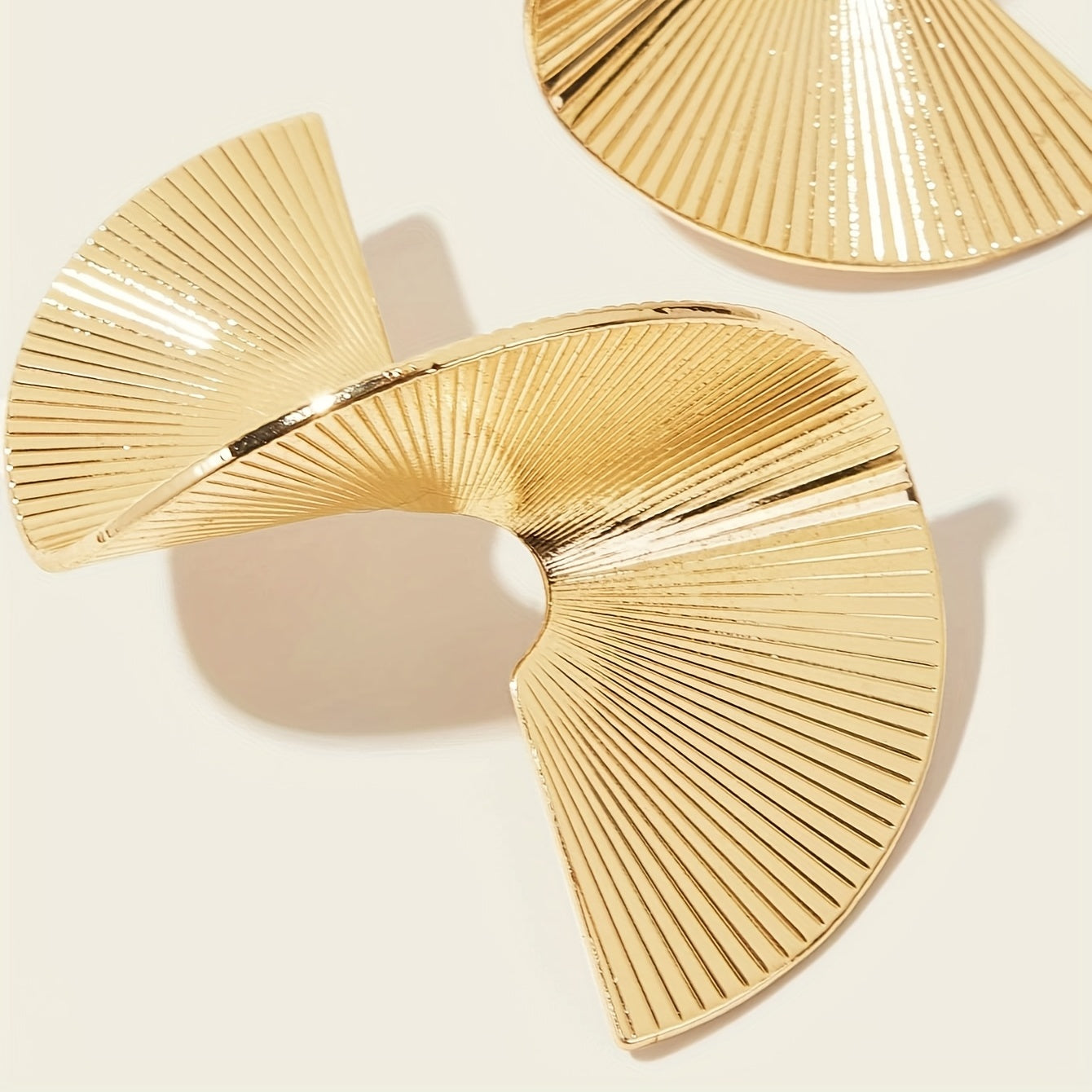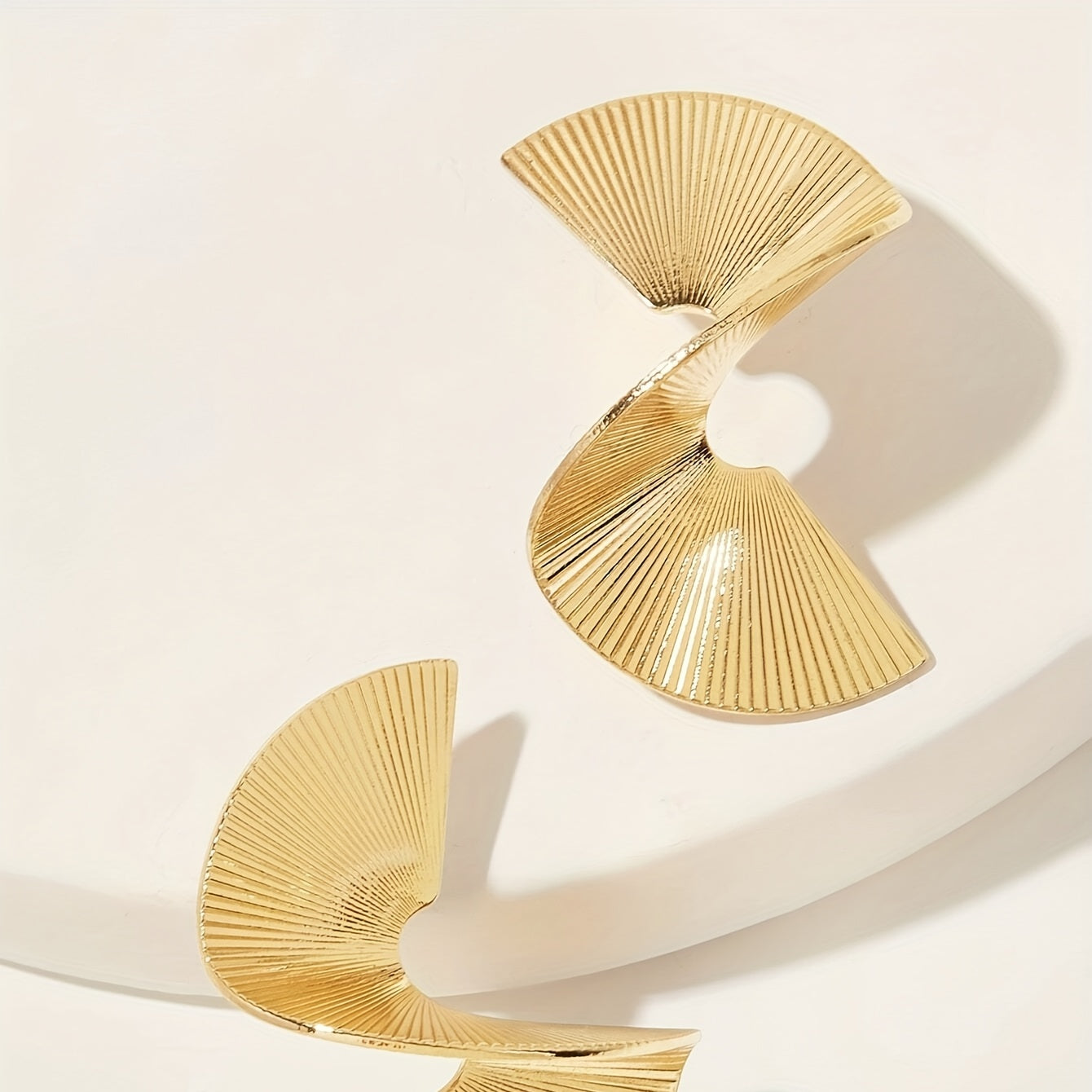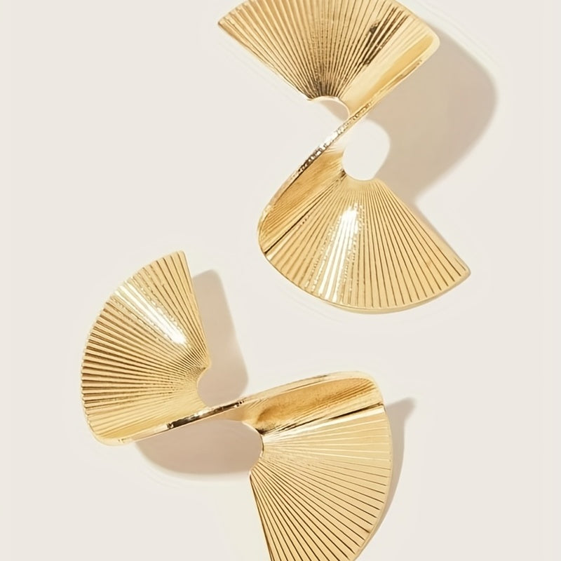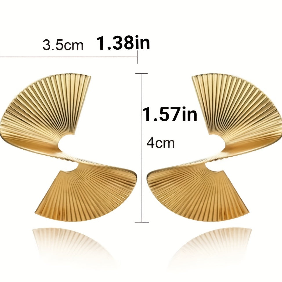 These twisted stud earrings feature a fan shape design in a retro style, made of alloy with 18K gold plating. Perfect for stage performances and parties.
