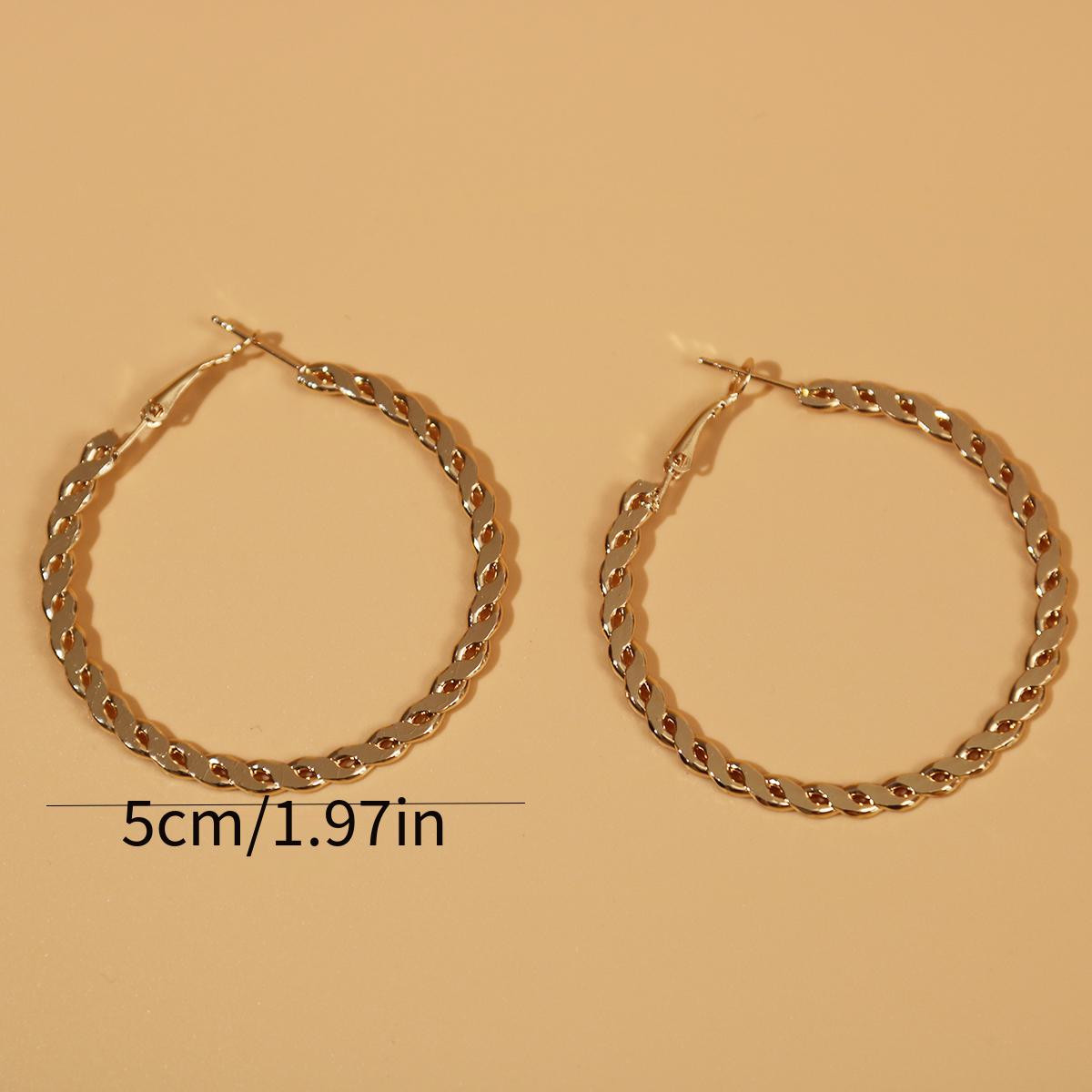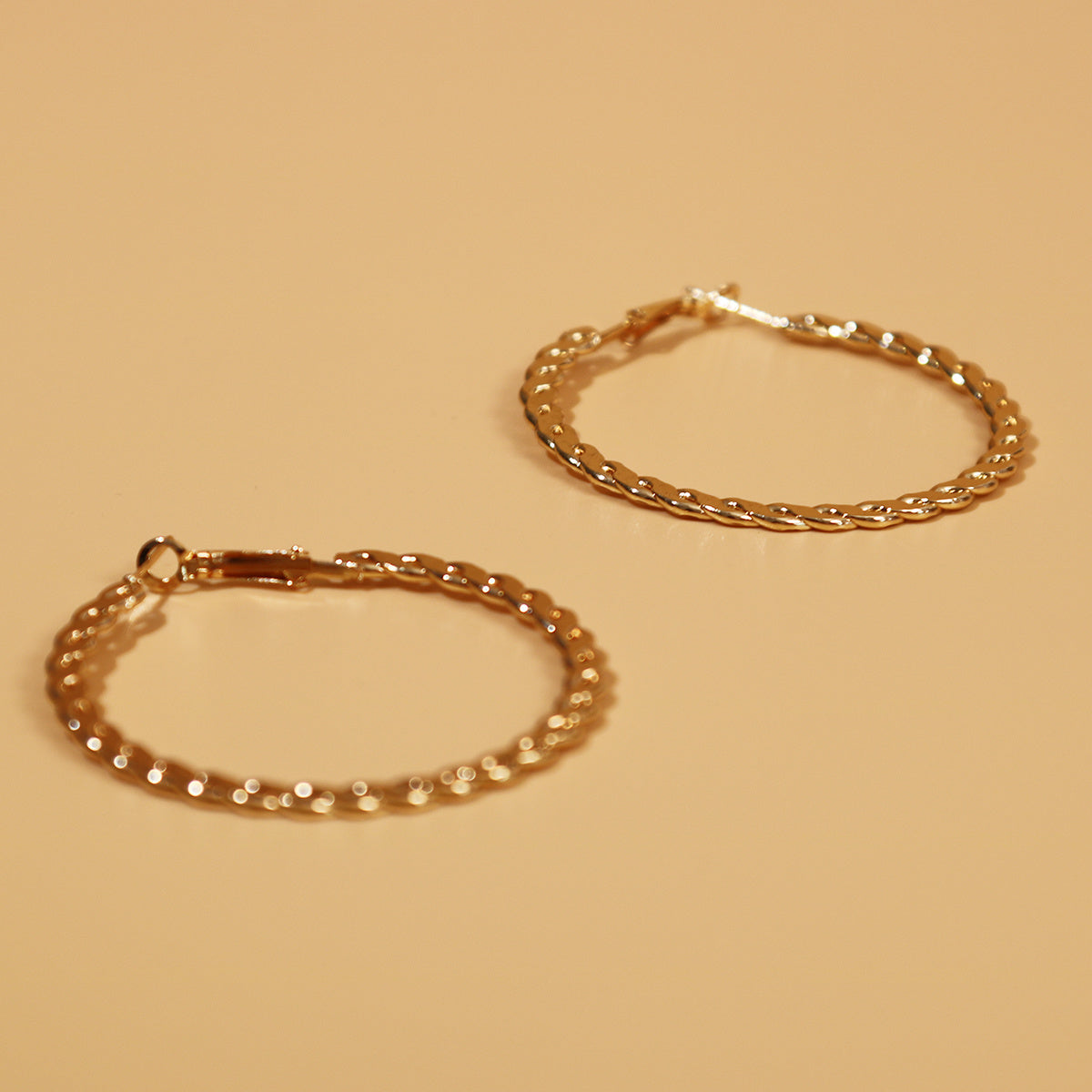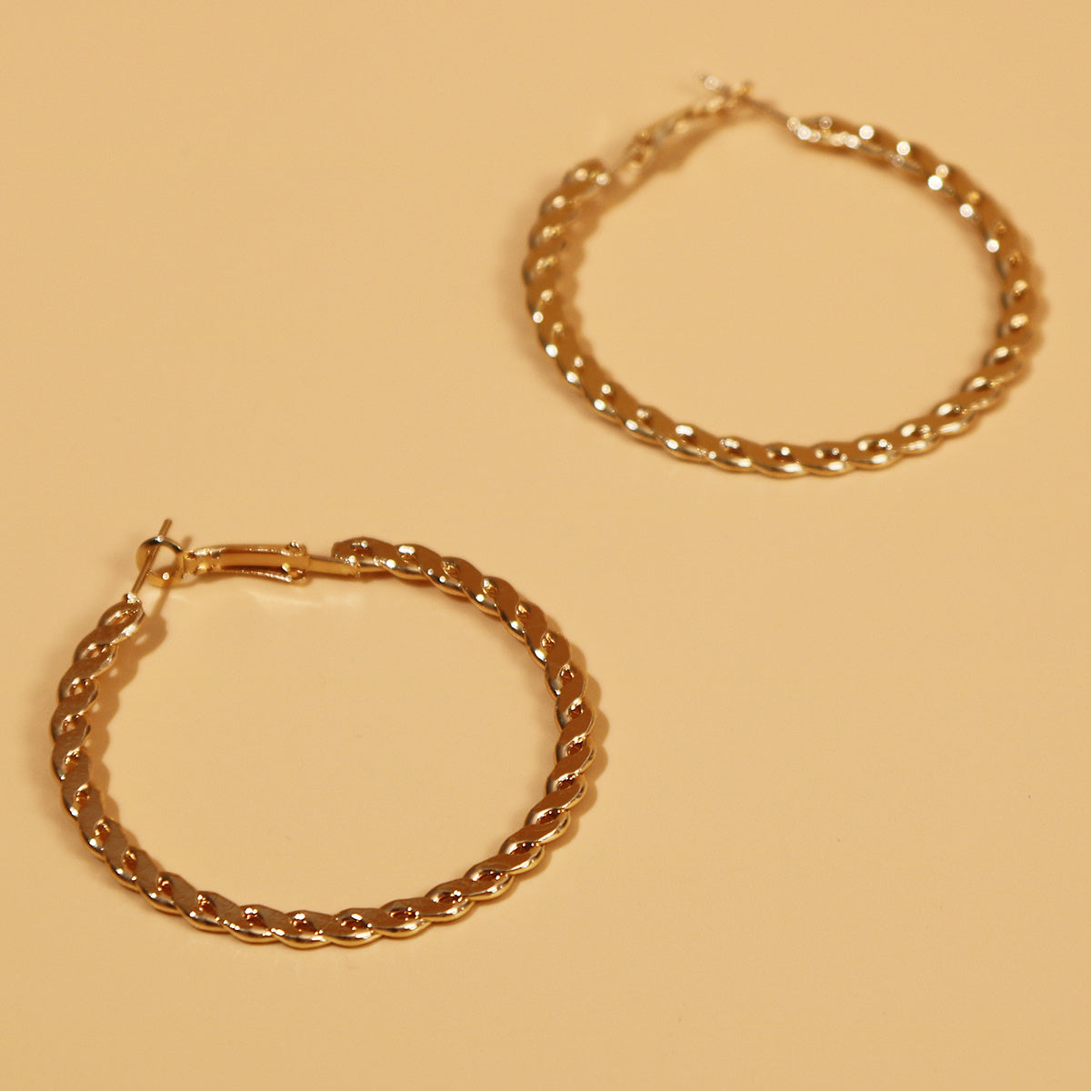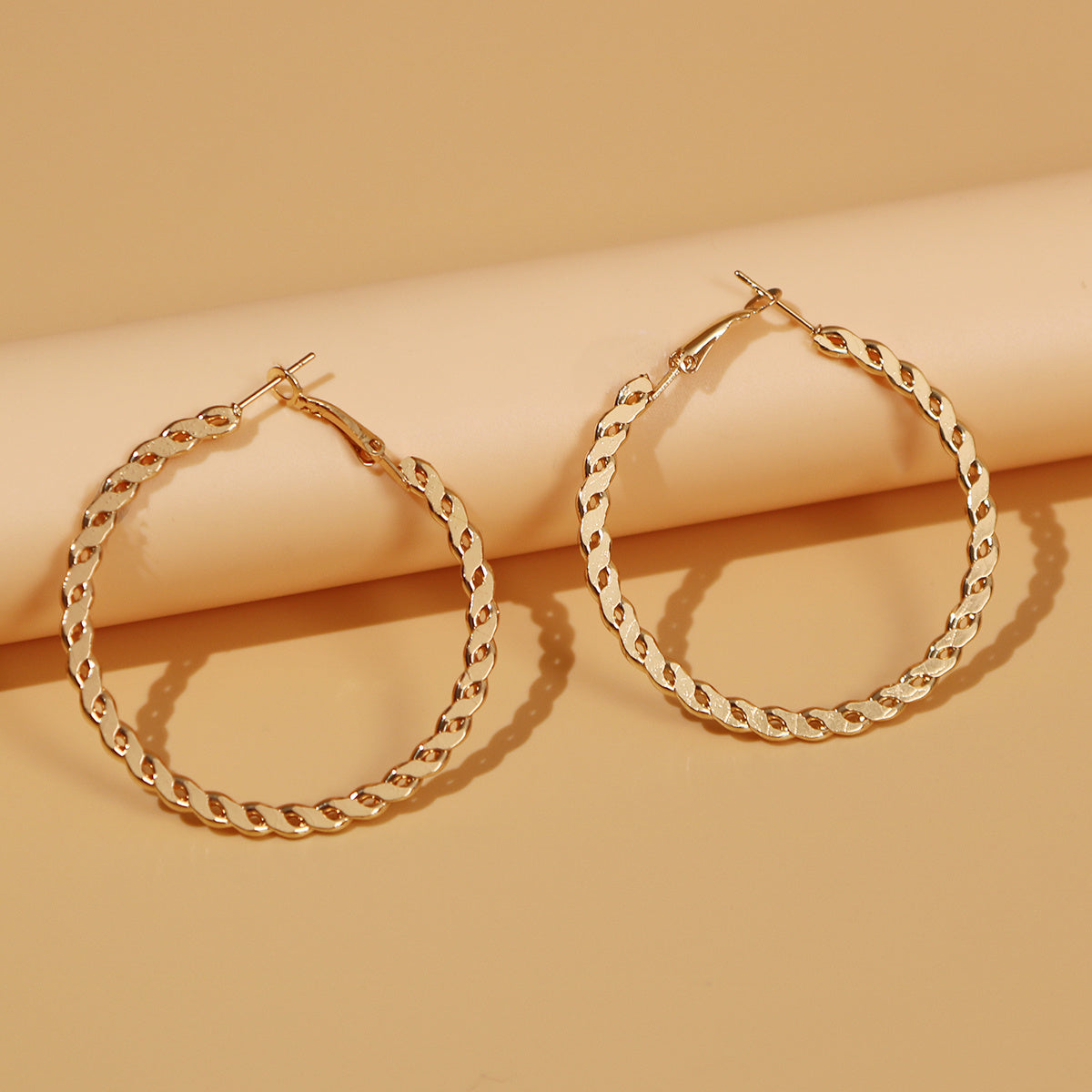 Complete your look with these elegant golden flat chain circle earrings that add a touch of sophistication to any outfit.