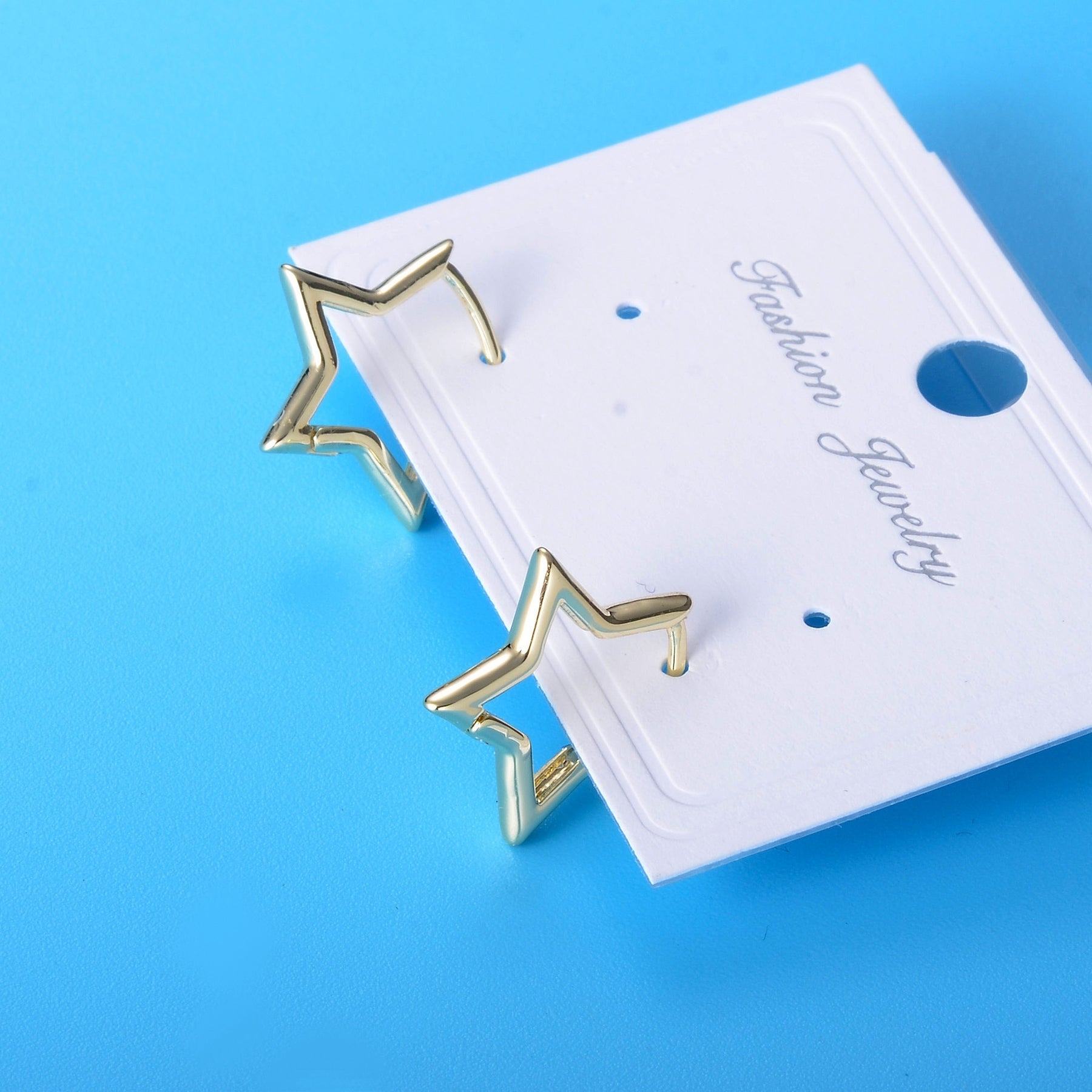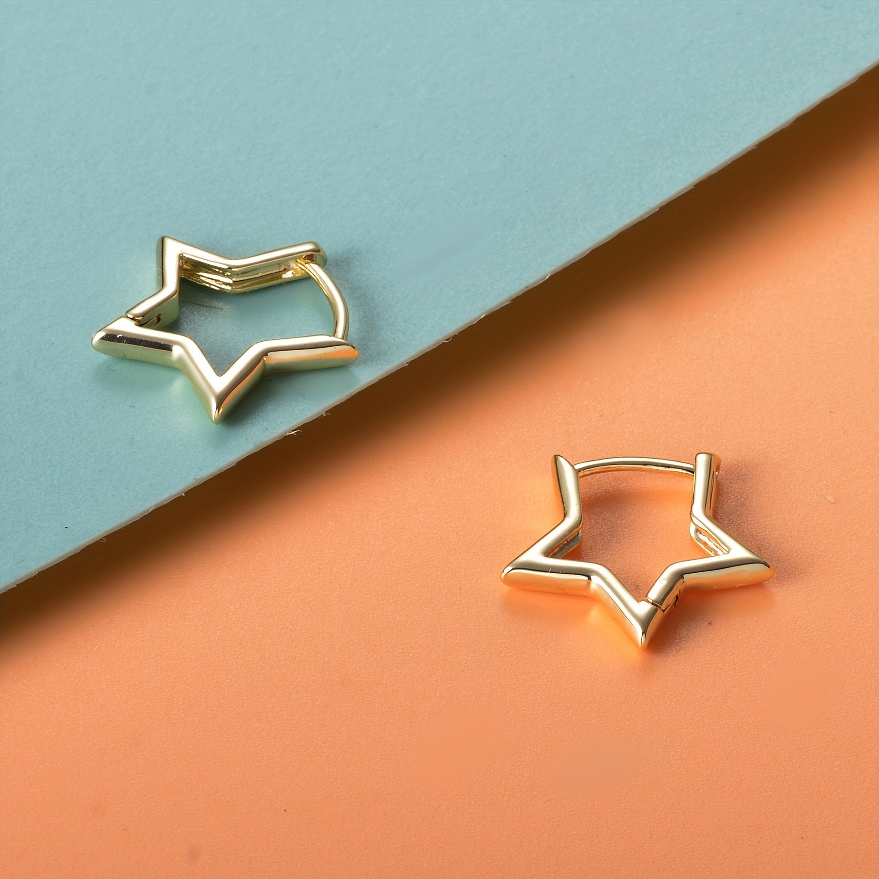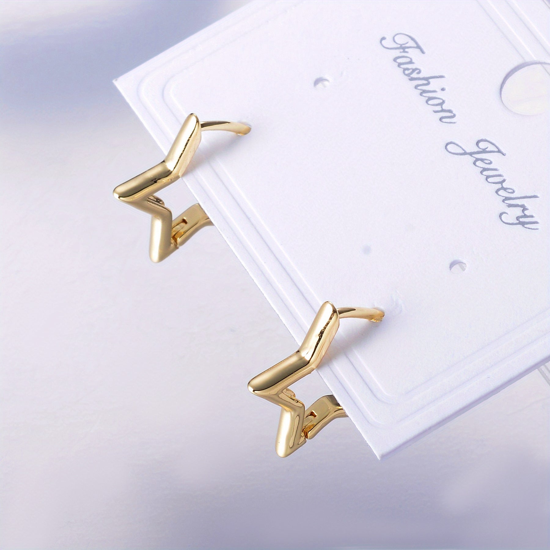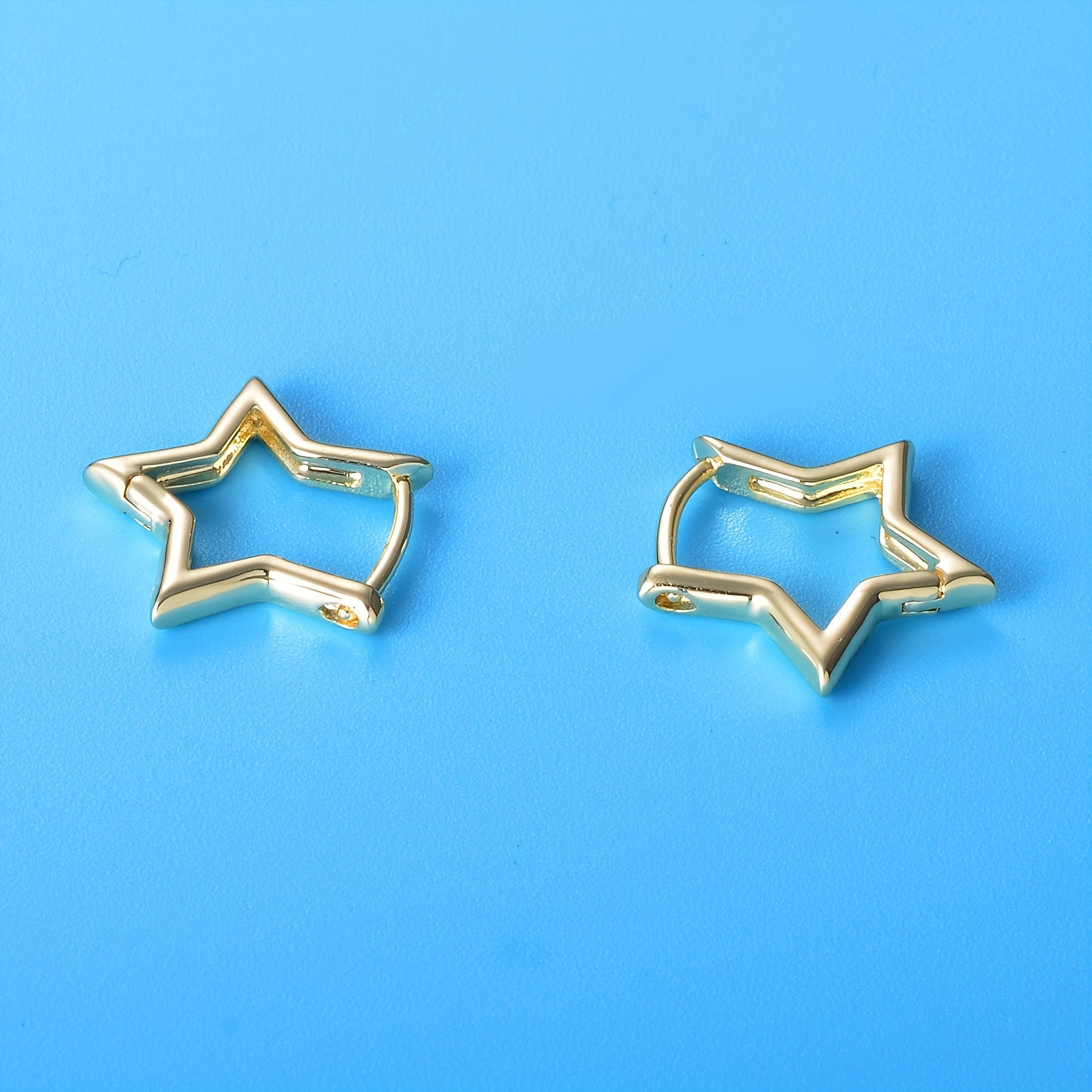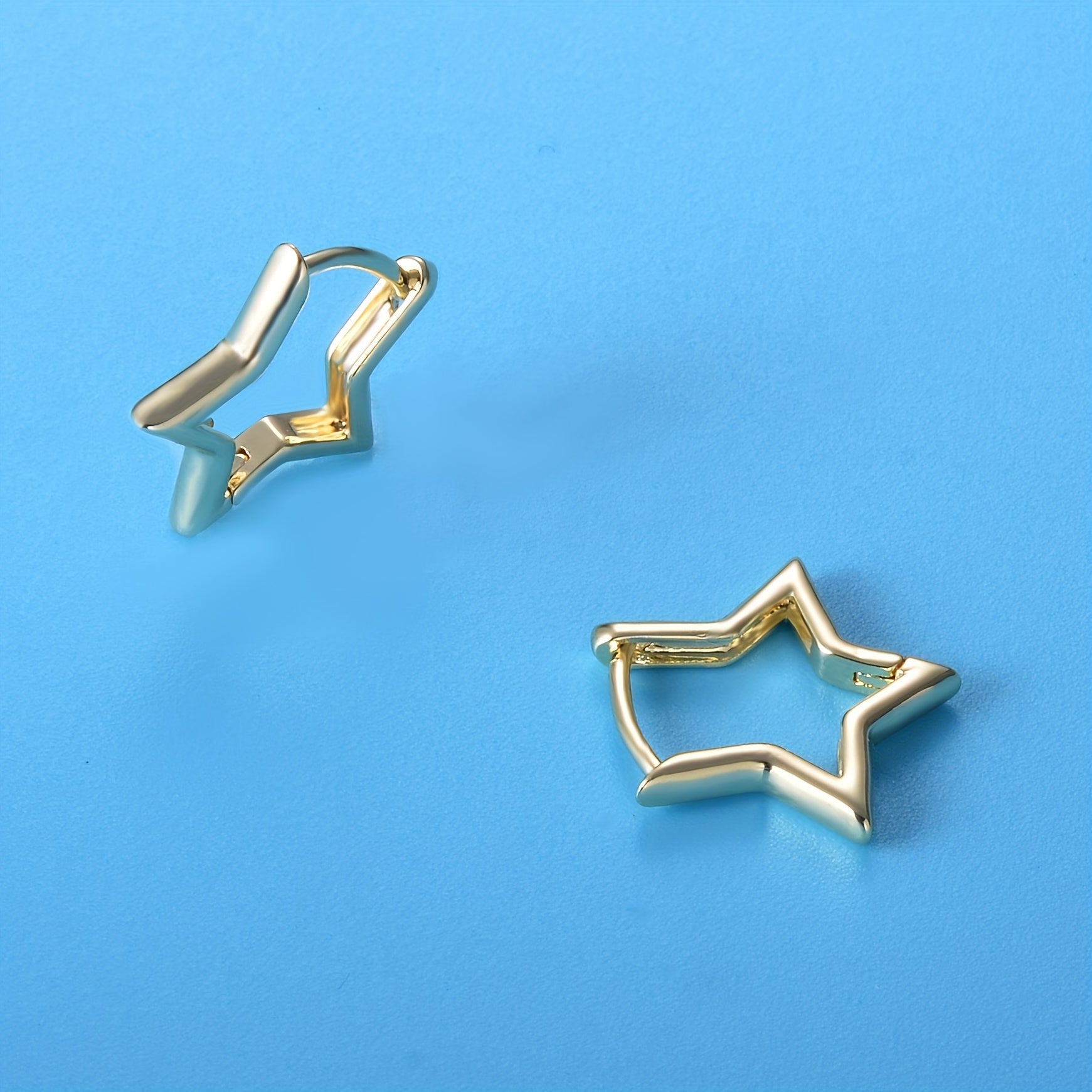 Add a touch of style with these star shape golden huggie hoop earrings. Perfect for everyday wear or special occasions.