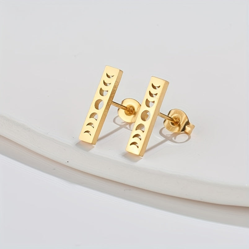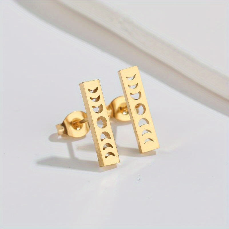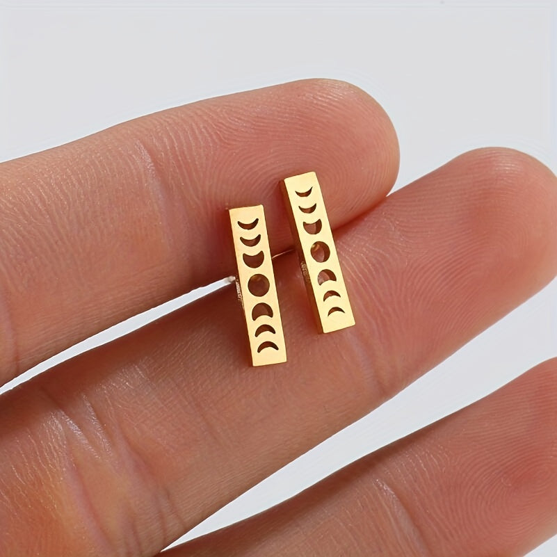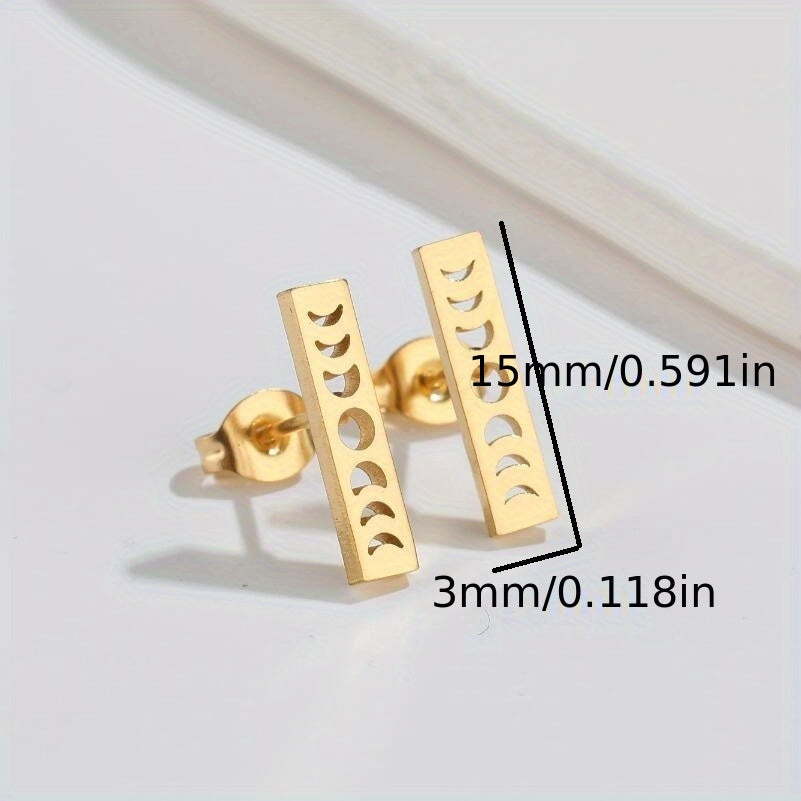 Add a touch of celestial flair to your style with these golden plated stainless steel earrings featuring sun, star, and moon design. Perfect for both casual and formal occasions.