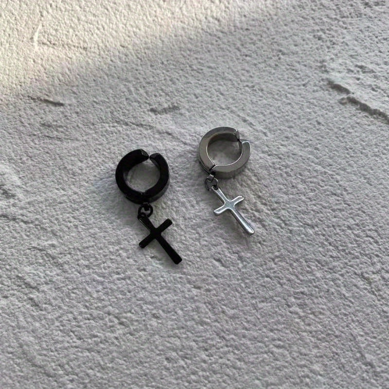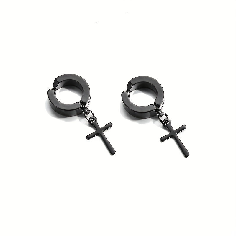 Gothic Hip hop Punk Cross Pendants Earrings for Men Women