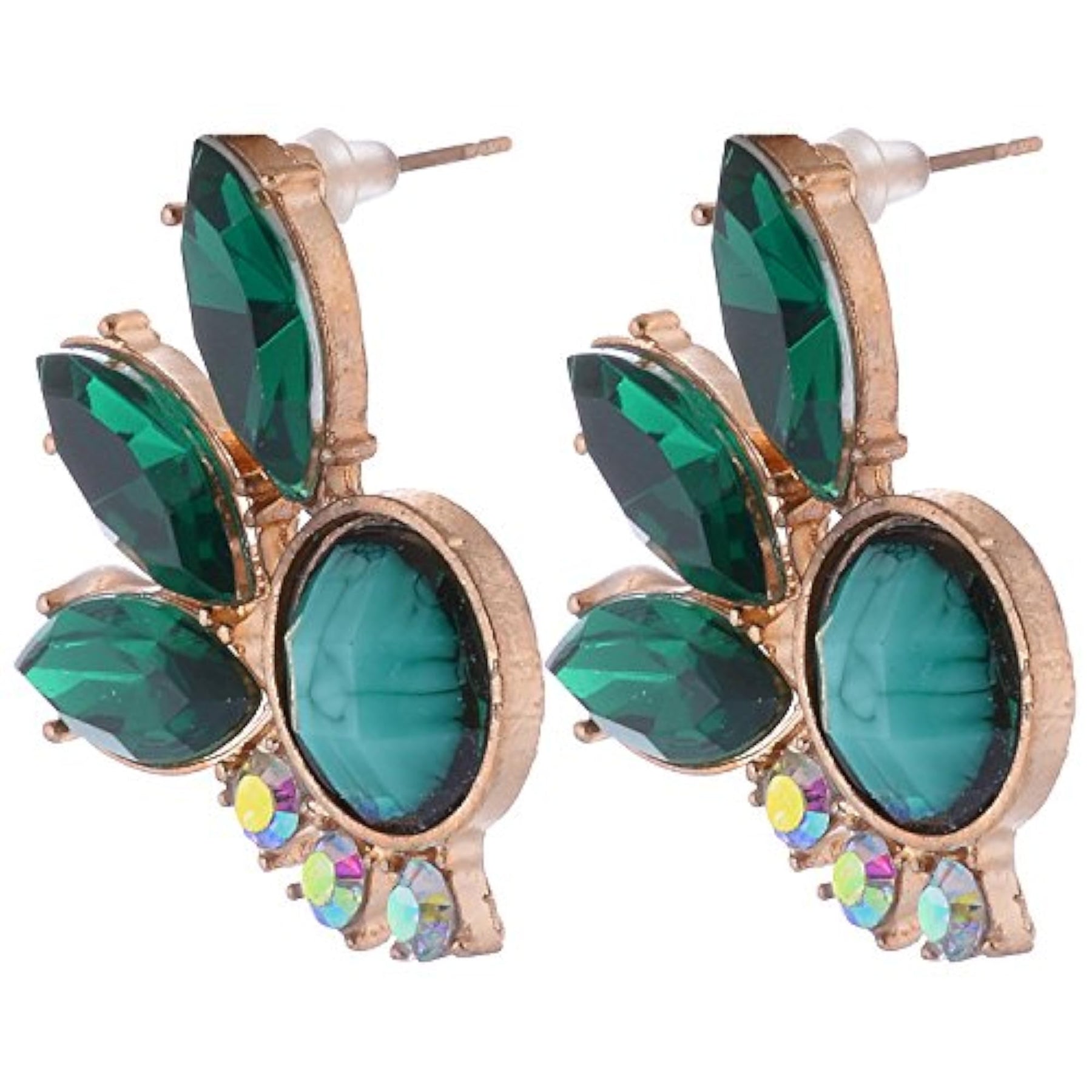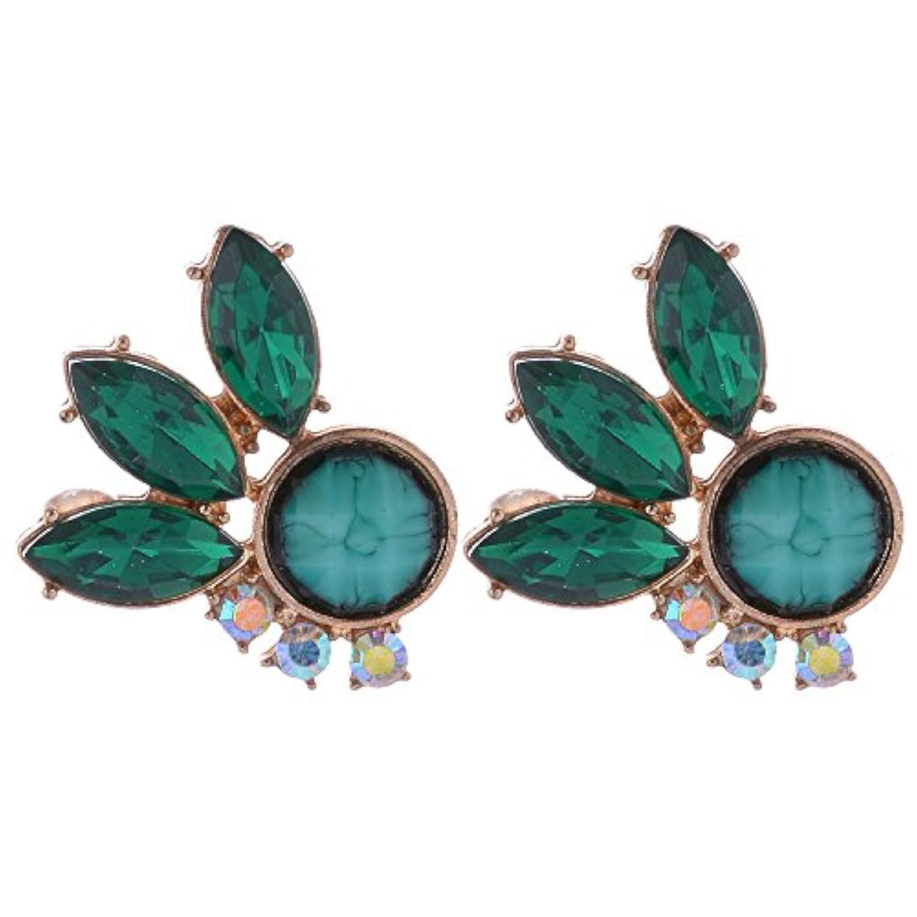Beautiful green earrings made from gold-alloy material featuring stunning stone accents.