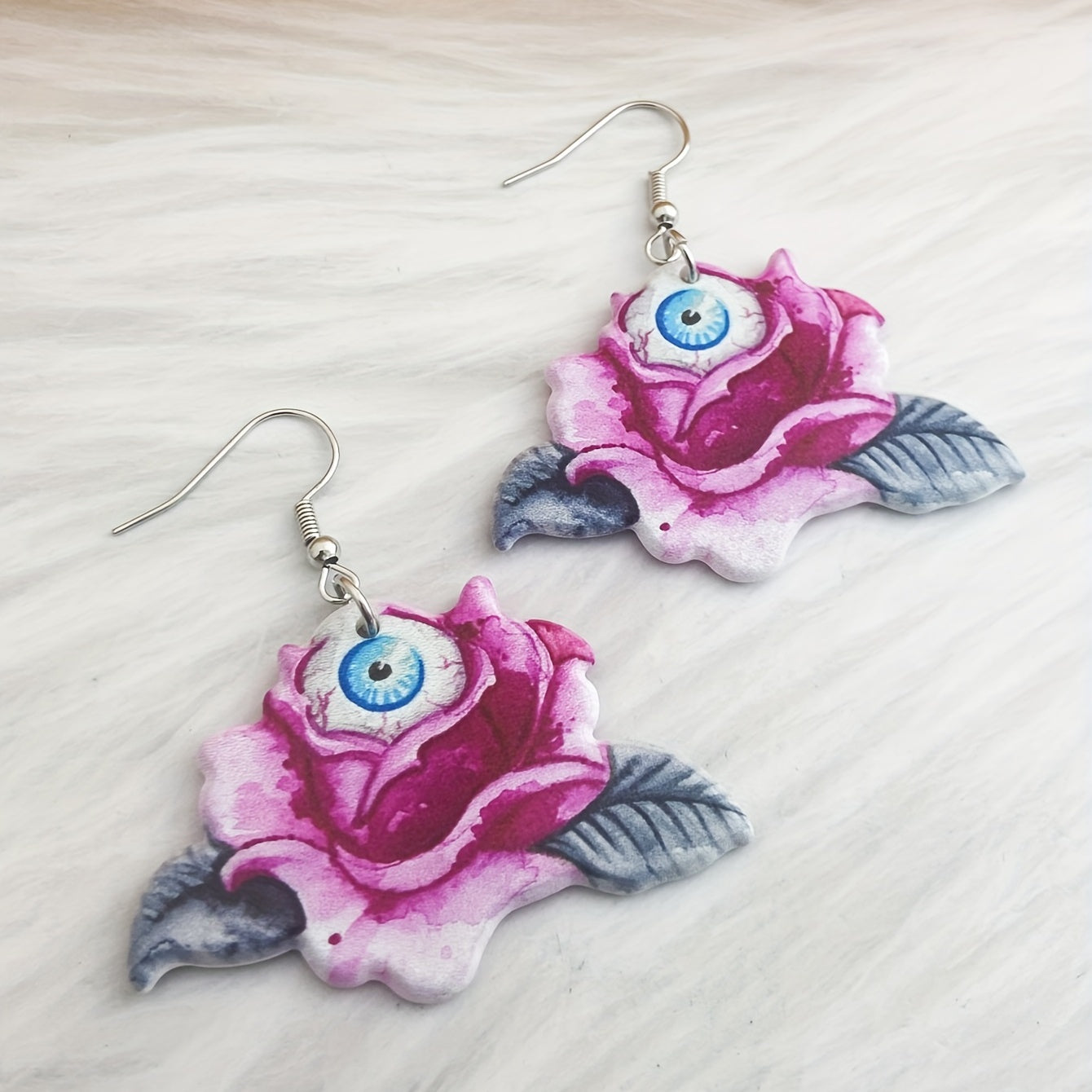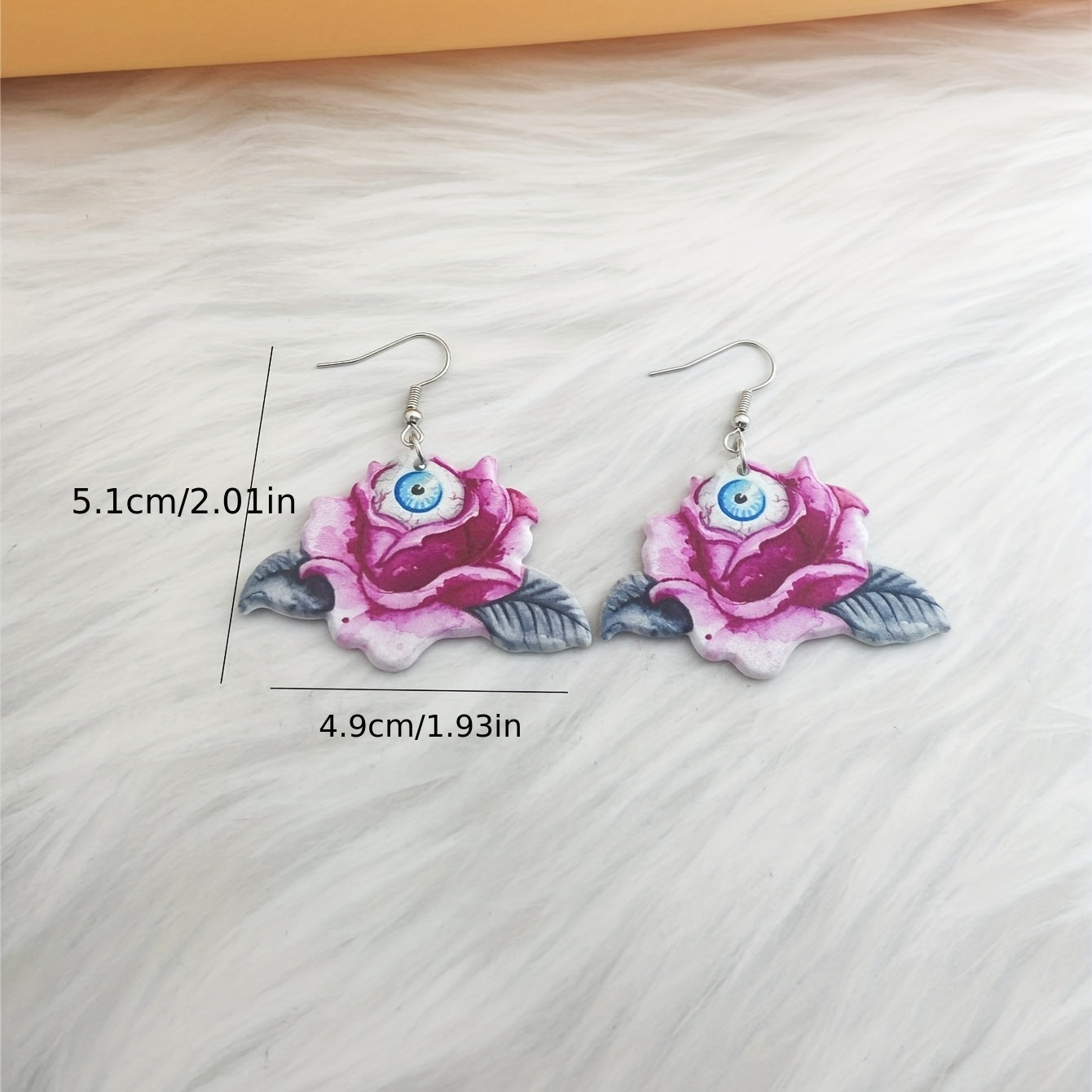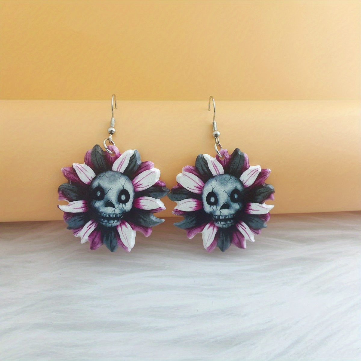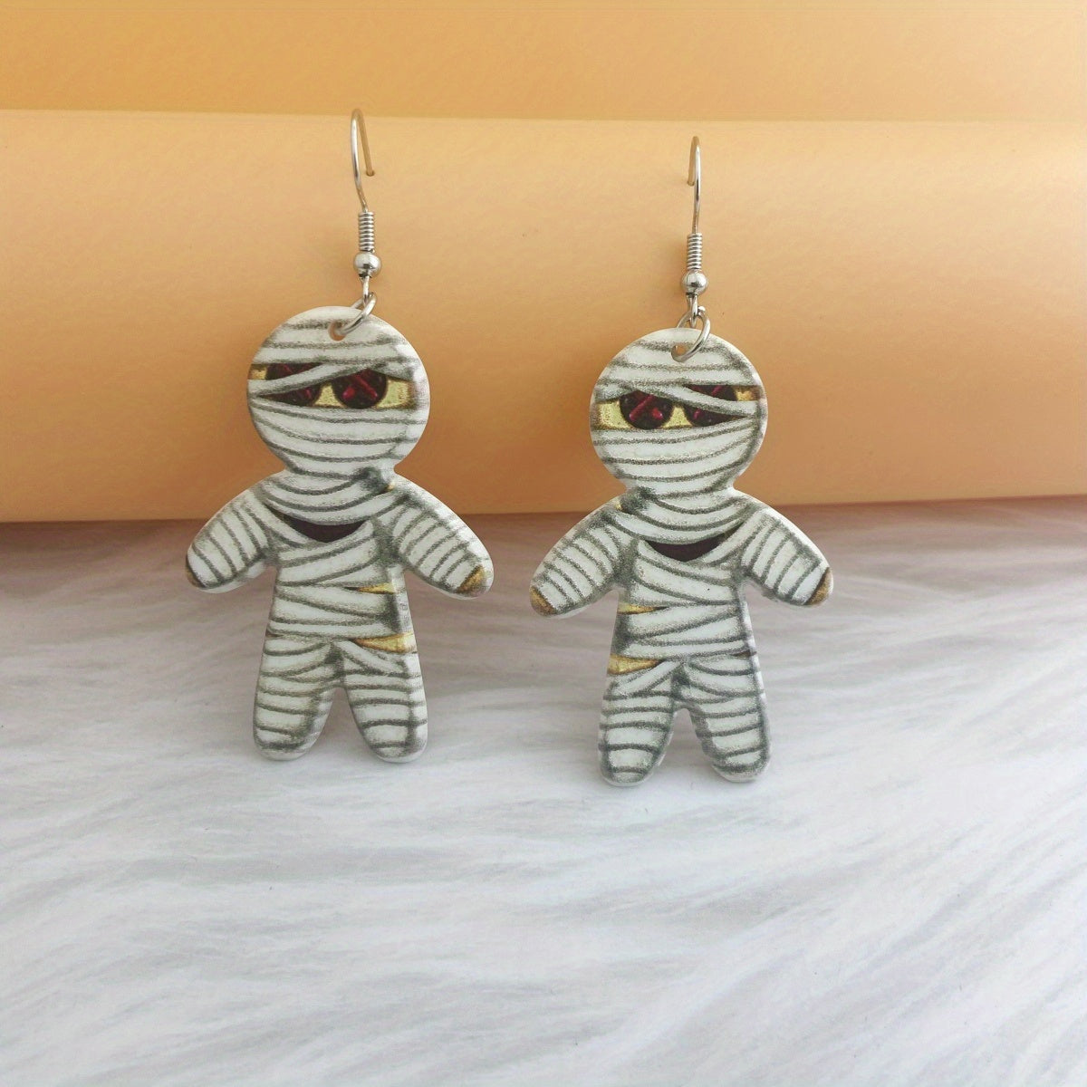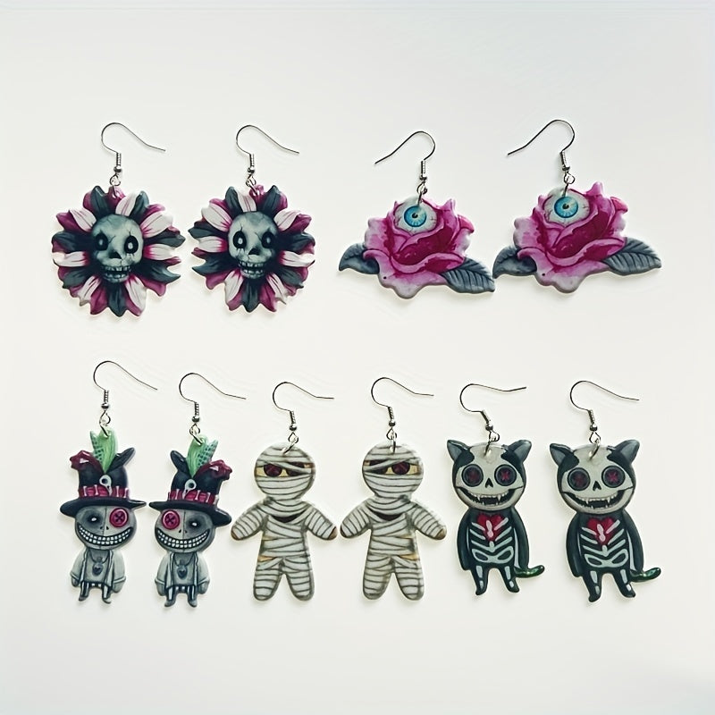 Elevate your Halloween look with these spooky goth style acrylic earrings featuring devil, flower, eye, mummy, hats, skull, cat, and ghost ornaments.