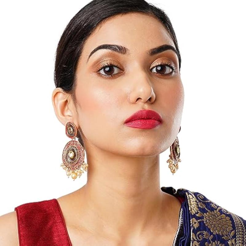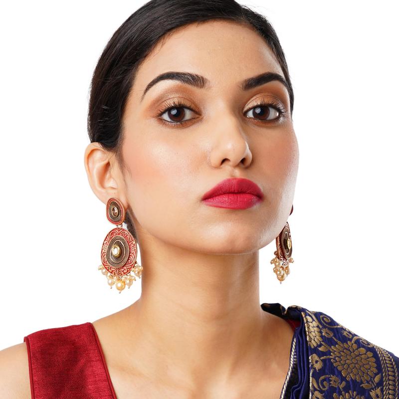 Make a statement with these stunning handcrafted ethnic earrings featuring intricate detailing for a touch of cultural elegance.
