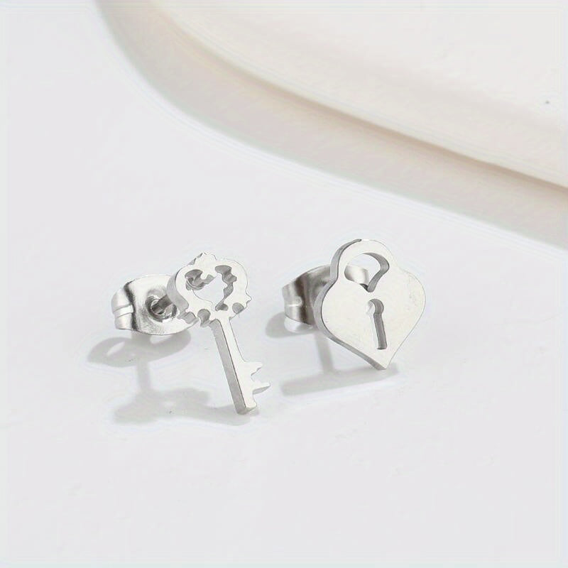 These stainless steel heart lock key earrings offer a romantic touch to any outfit. Perfect for weddings, parties, or as a special gift for men.