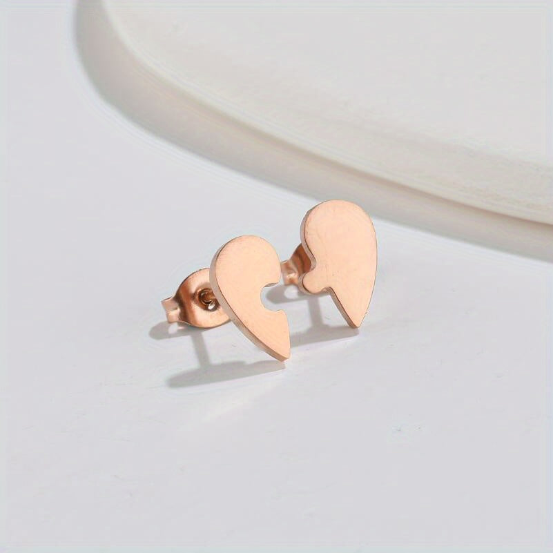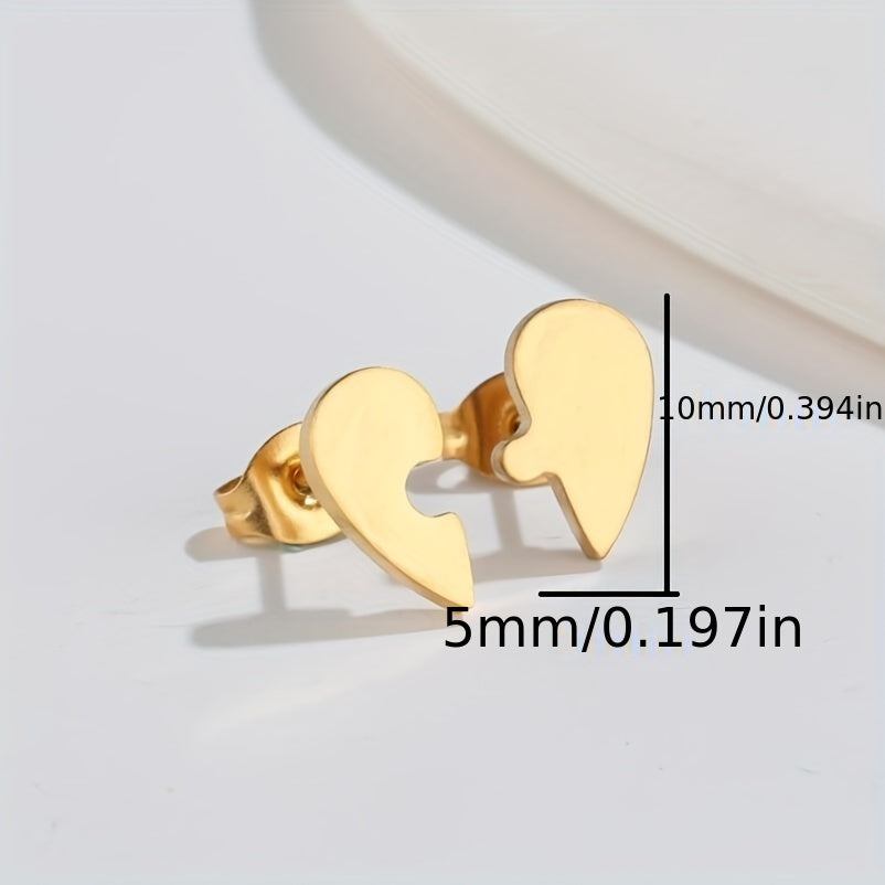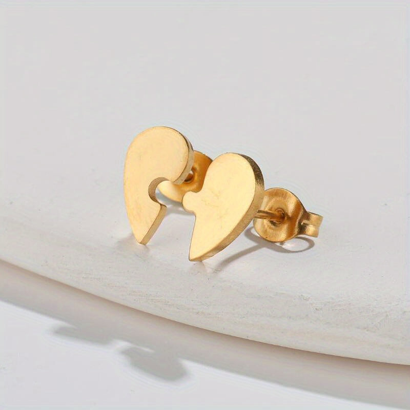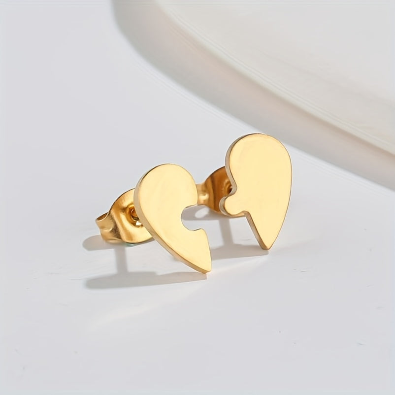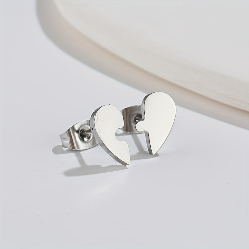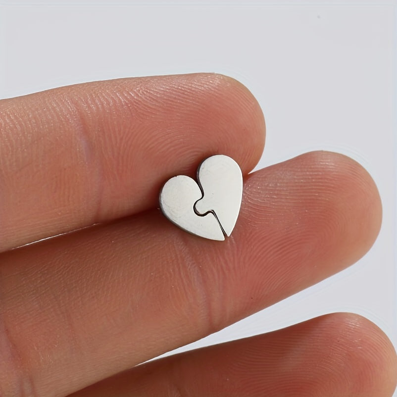 These lovely heart shape earrings are perfect for men. They feature an asymmetrical design with a puzzle stud style, making them small and sweet.