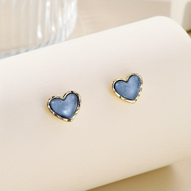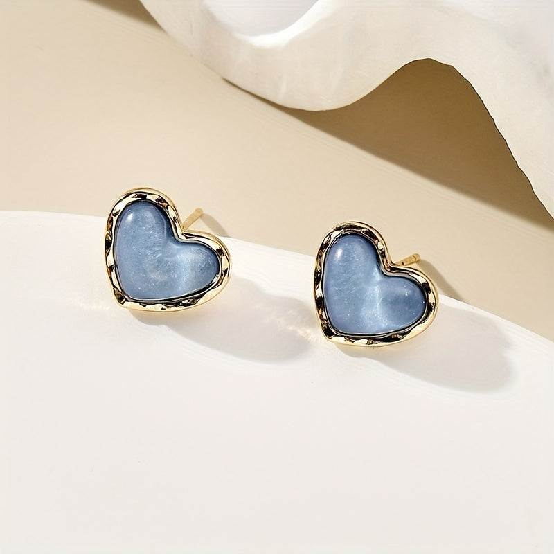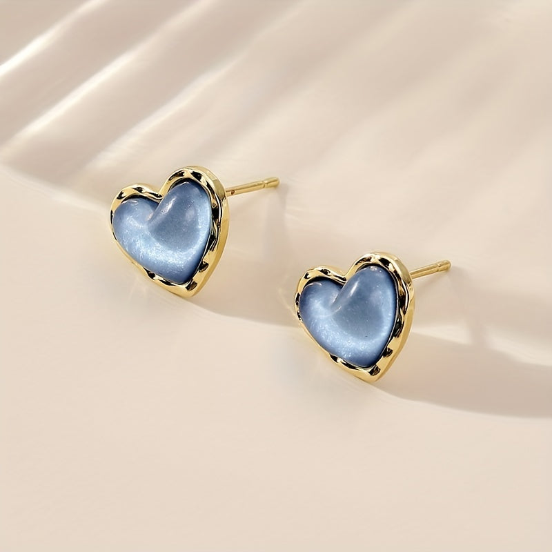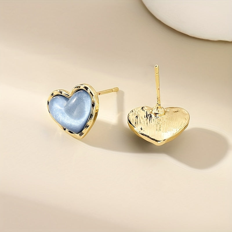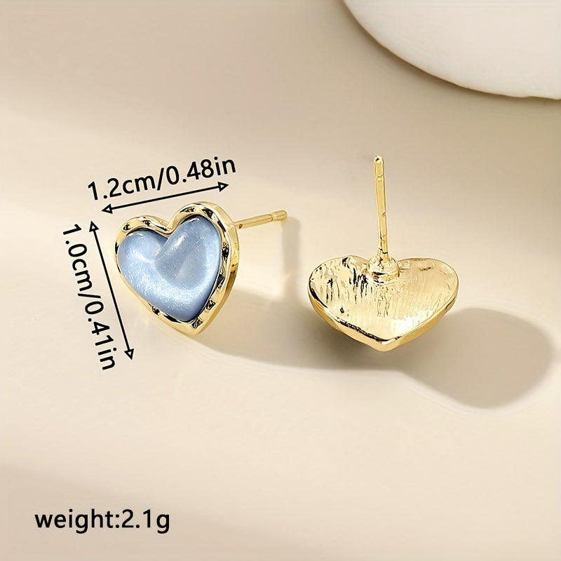 Heart Shape Stud Earrings Synthetic Gems Minimalist Style 14K Plated Gift