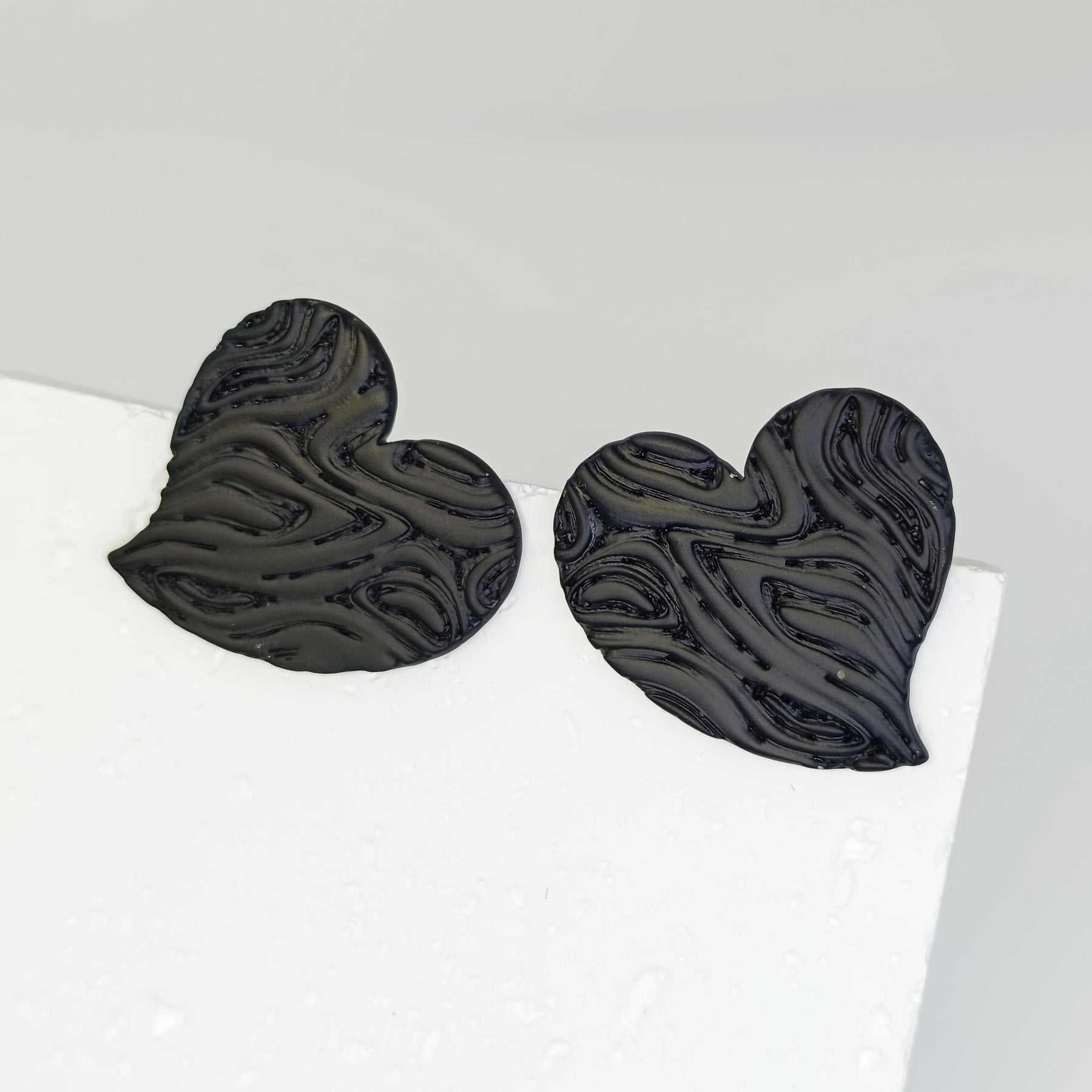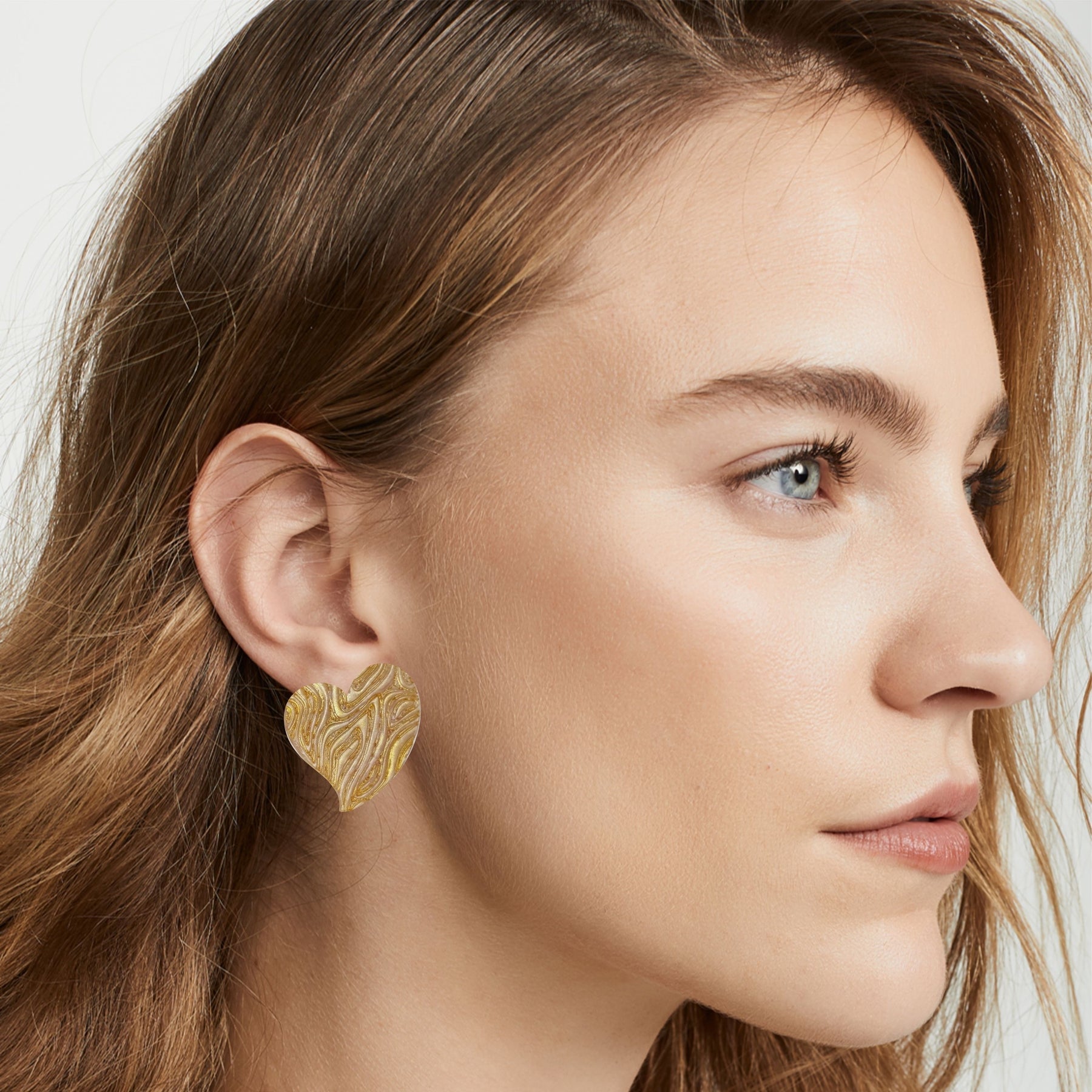 These retro minimalist style stud earrings feature a heart shape with textured design. Made of acrylic material, they are perfect for daily casual wear or as a thoughtful gift.