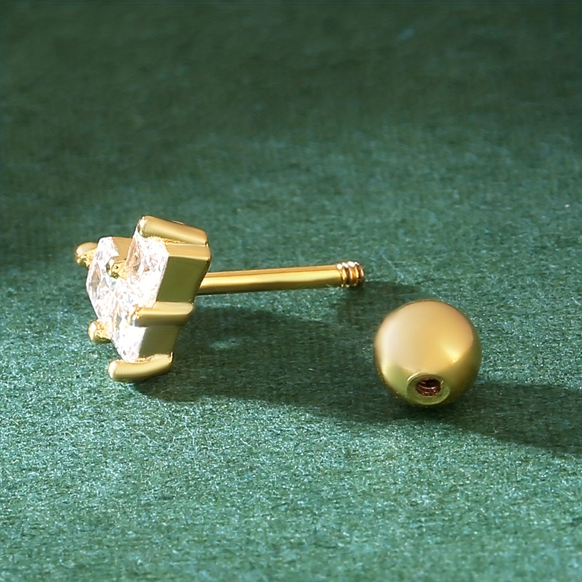 Heart Shape Zircon Stud Earrings Minimalist Style 14K Plated Jewelry