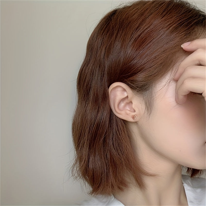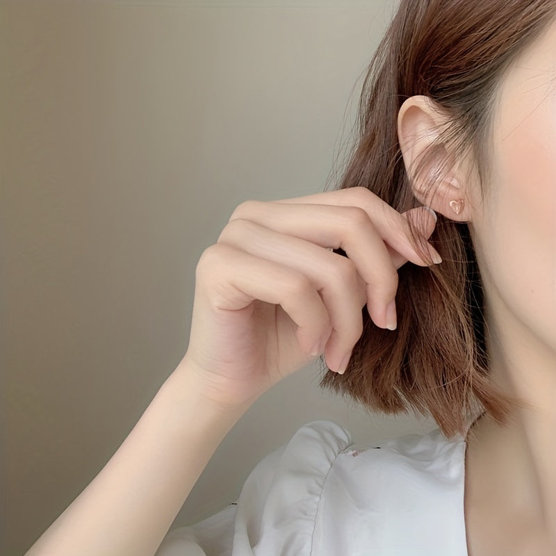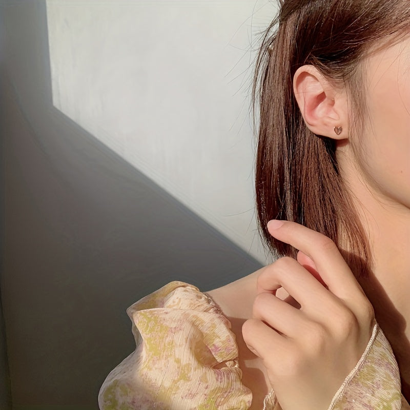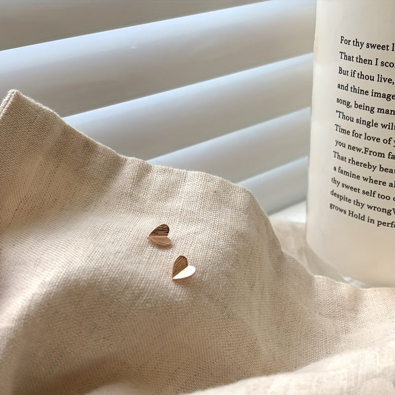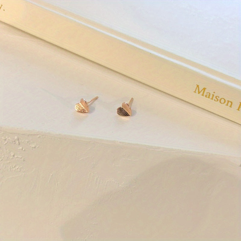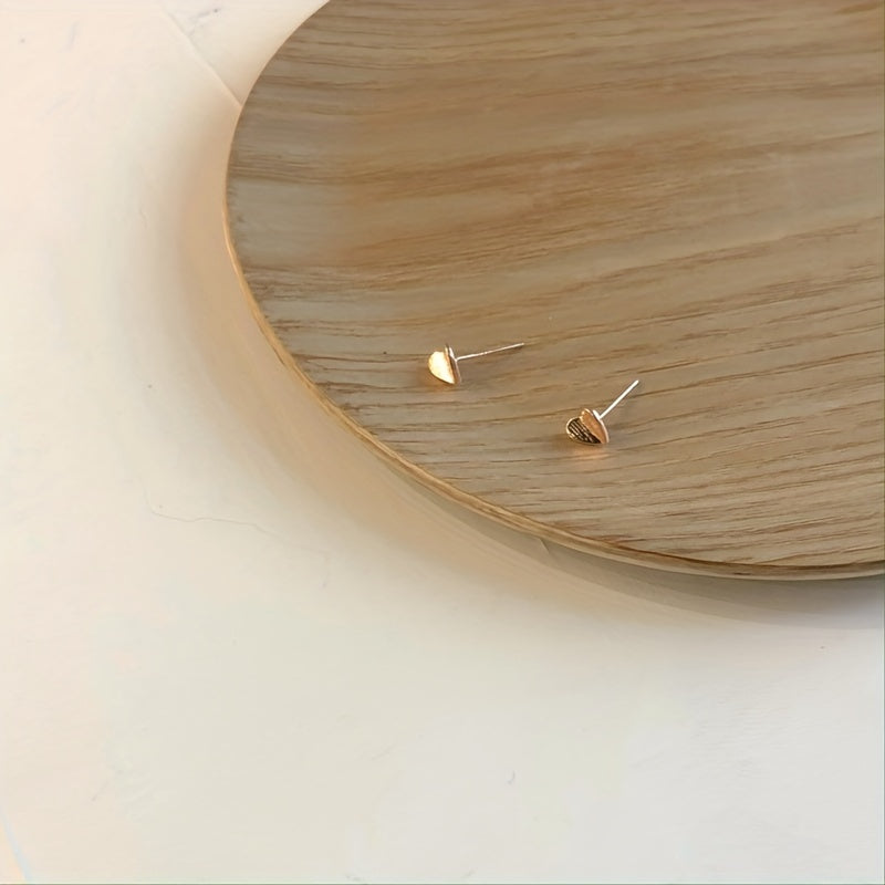 These glossy stud earrings feature a folding heart design in a minimalist style. Made of copper with a 14K gold plating, they make a lovely gift for someone special.