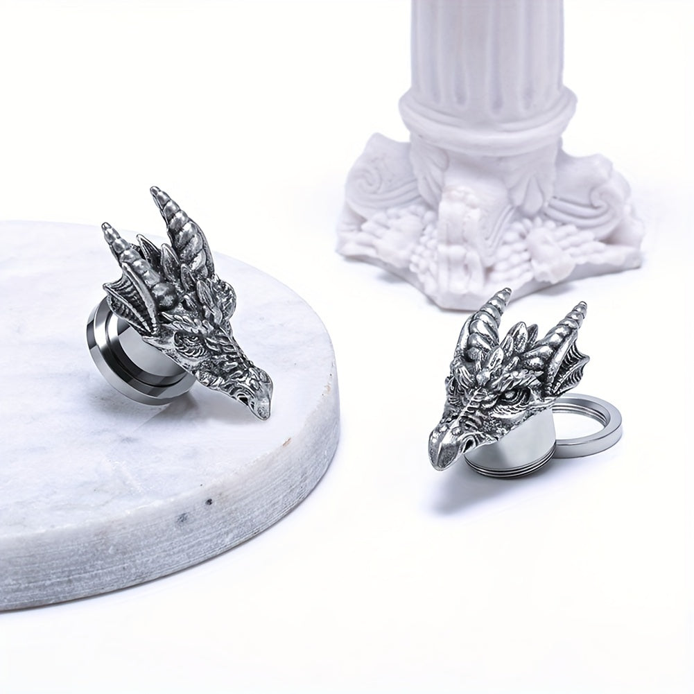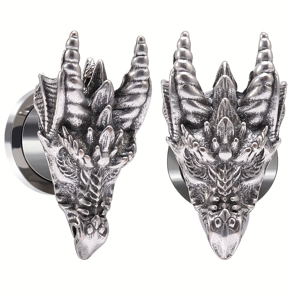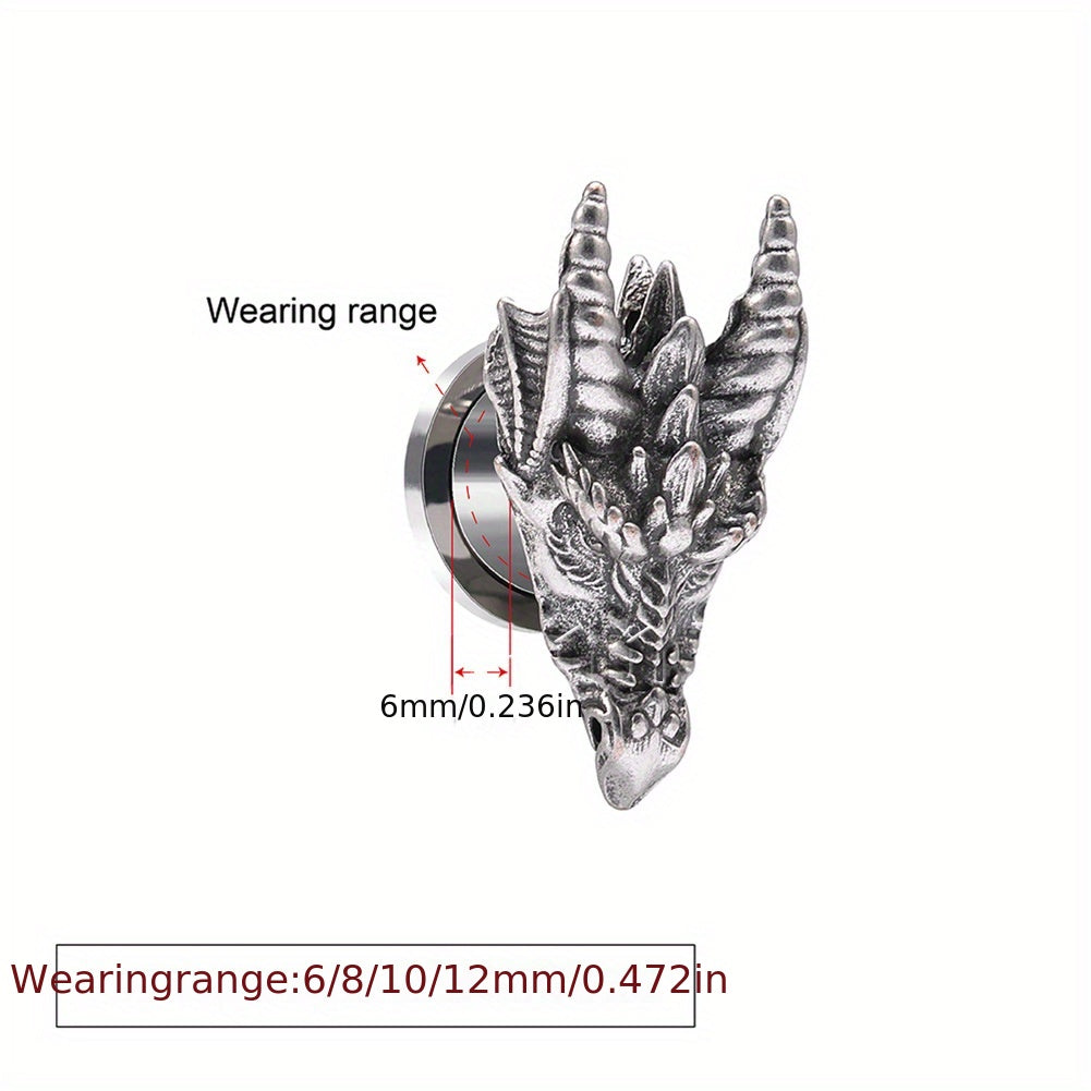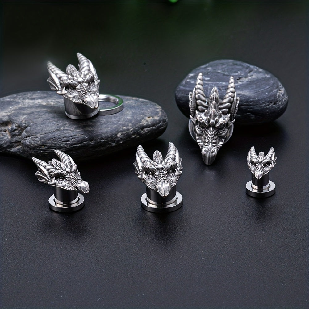 Unique stainless steel ear plugs designed as high dragon. Perfect for men who love punk style body piercing jewelry.