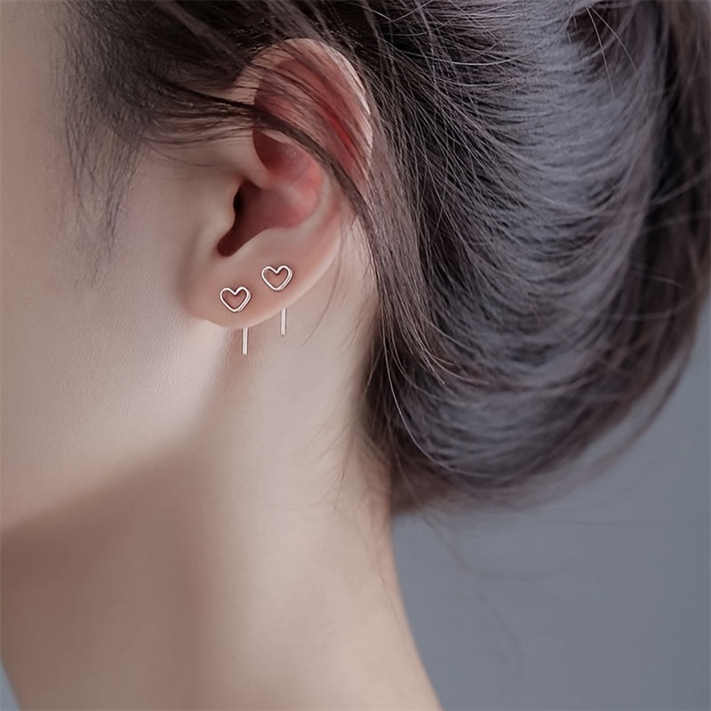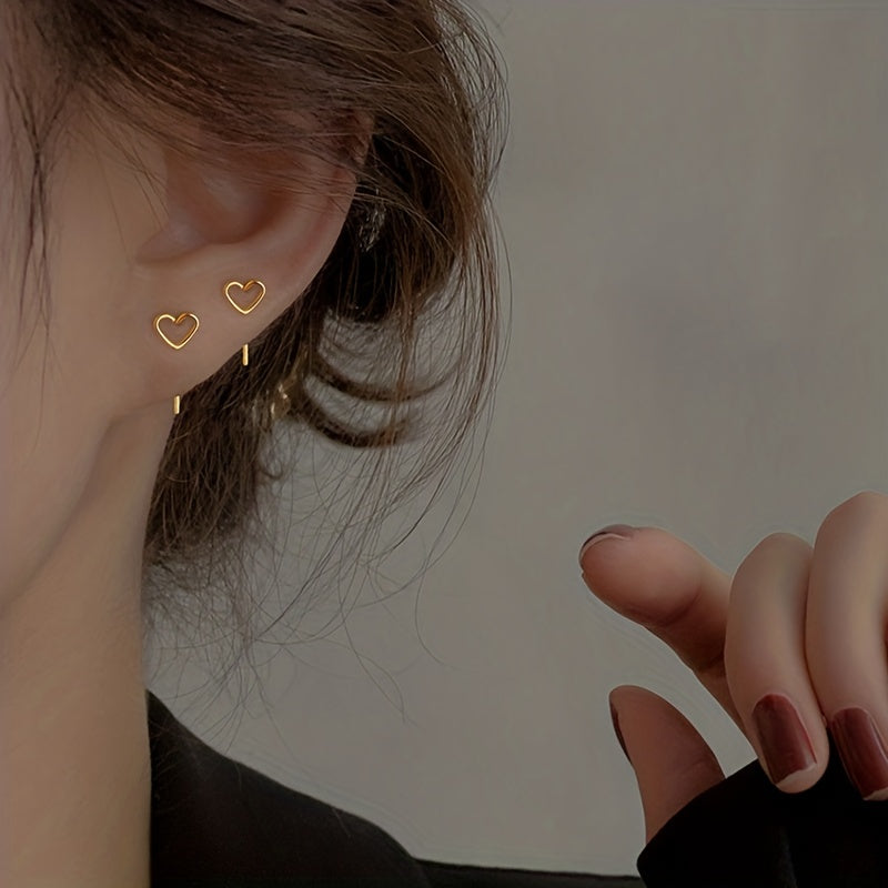 These elegant stud earrings feature a hollow heart design and silver plated posts. A perfect gift for women and girls who love minimalist jewelry.