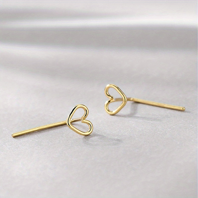 Hollow Heart Minimalist Stud Earrings Silver Plated Post Jewelry
