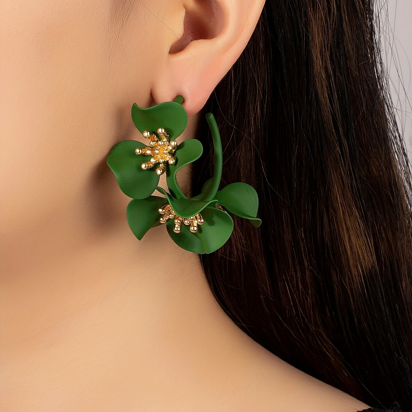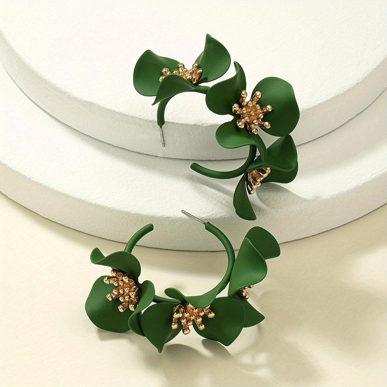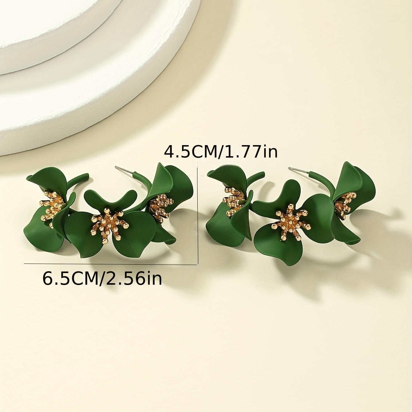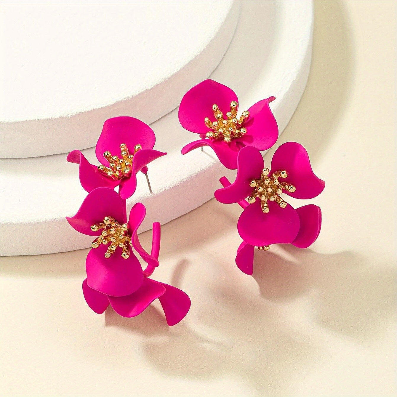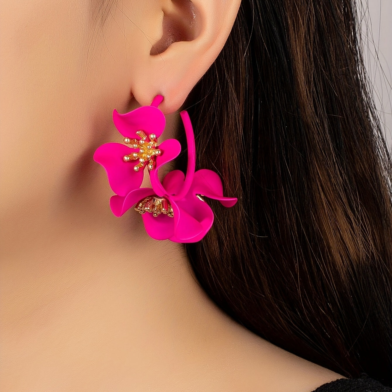 These hoop earrings feature a C shape design with hot pink flower decoration, adding a touch of sexy style. Made of high-quality alloy with 18K gold plating, making them a perfect gift for any occasion.