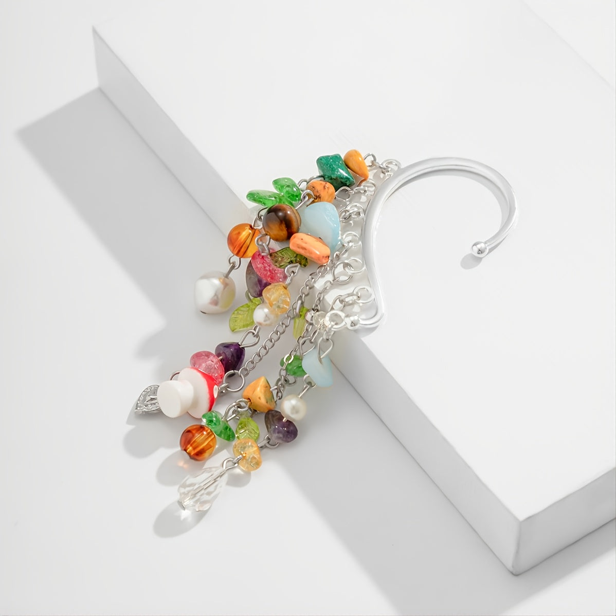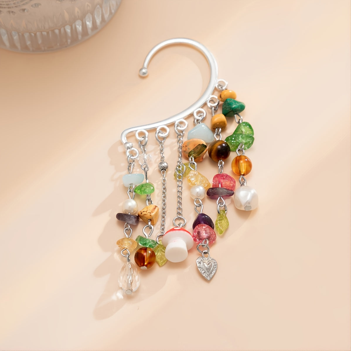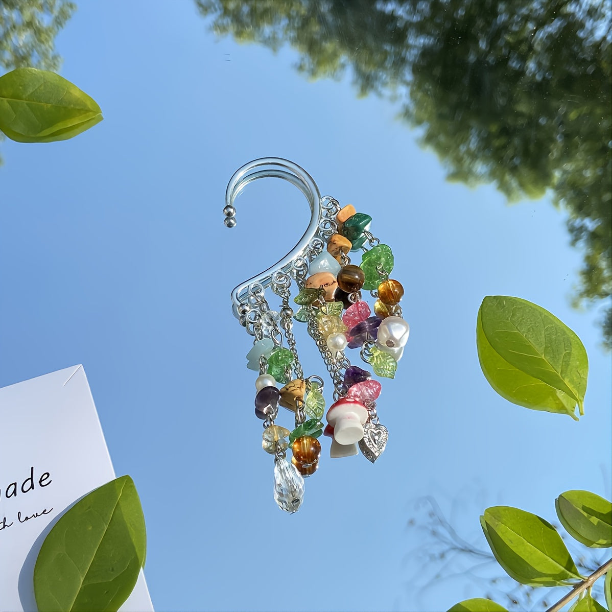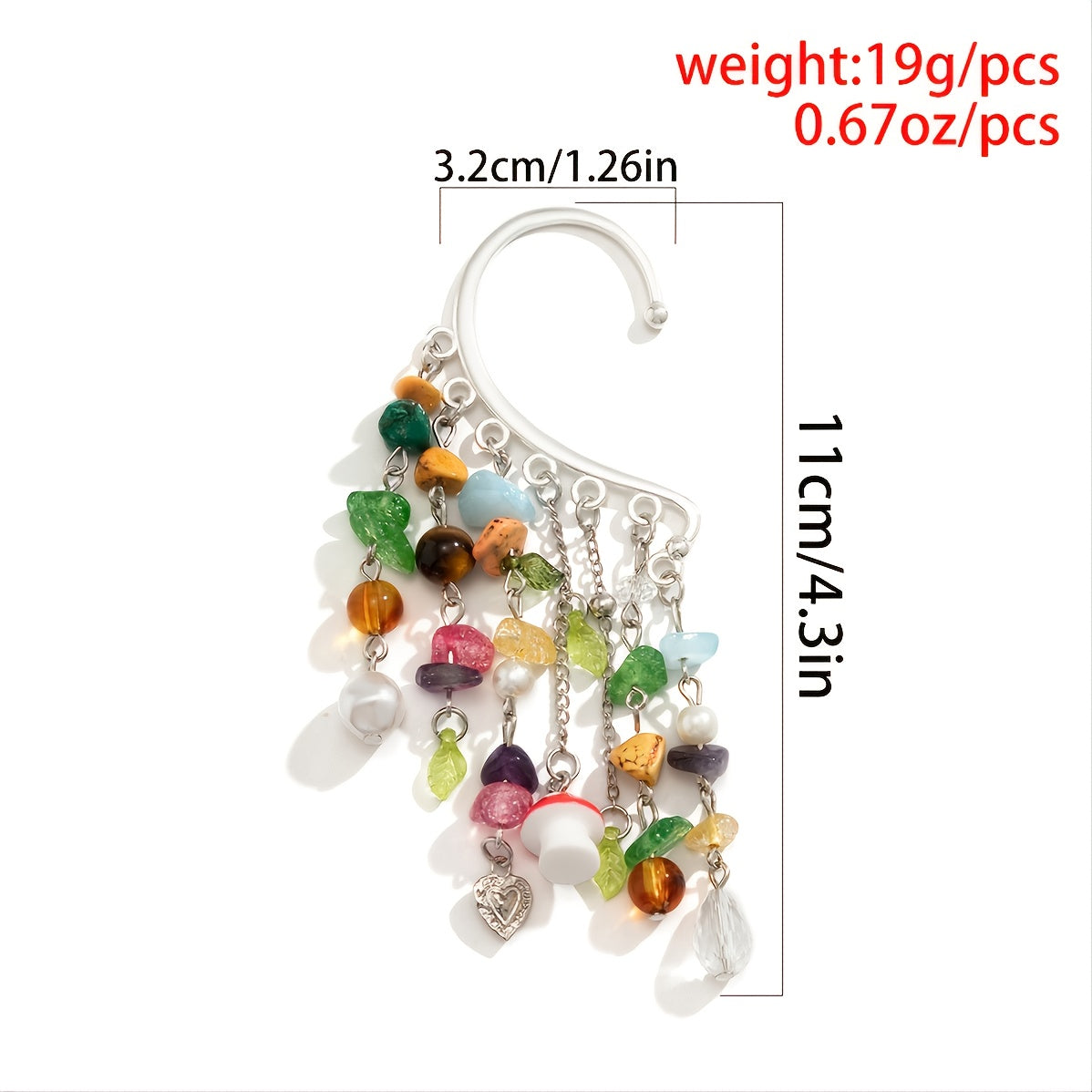 Irregular Turquoise Crystal Mushroom Love Pearl Tassel Earrings