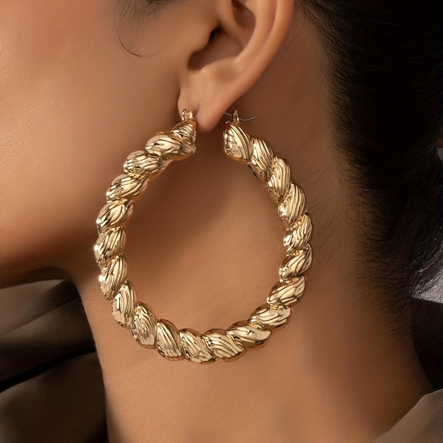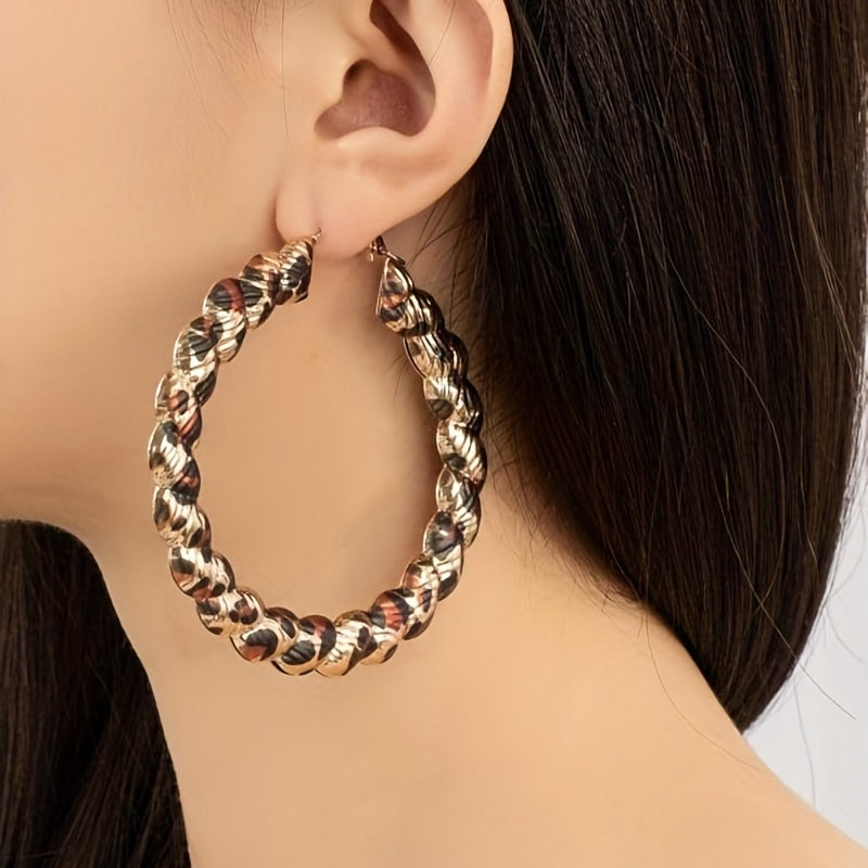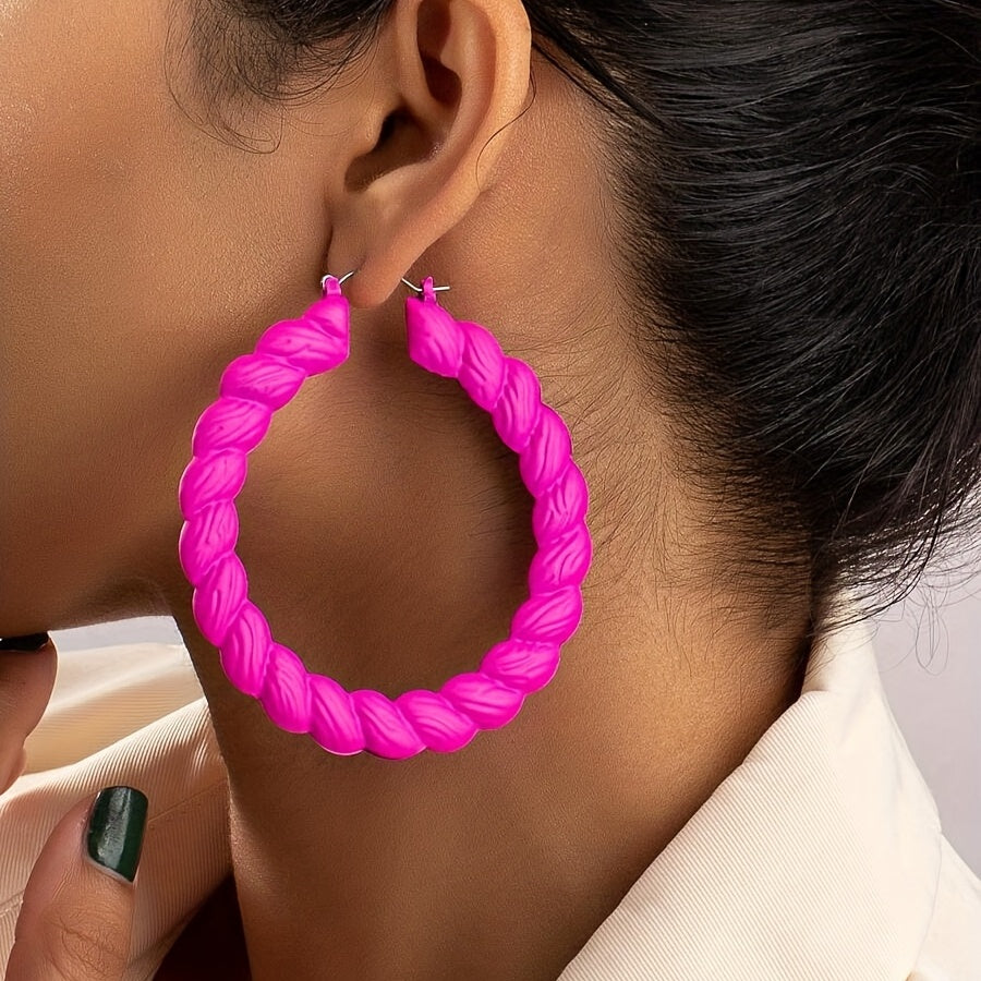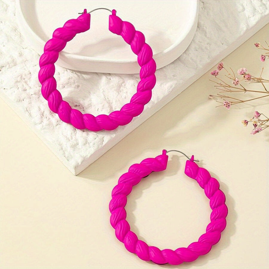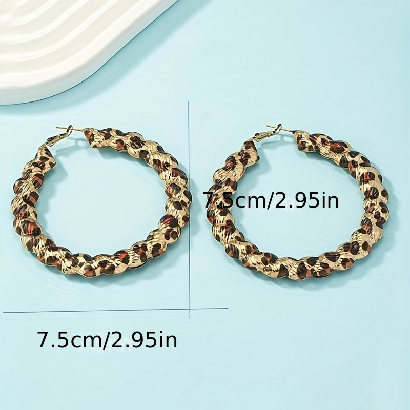 Add a bold touch to your outfit with these exaggerated twisted hoop earrings featuring a hot pink leopard pattern. Perfect for adding a pop of color and style to any look.