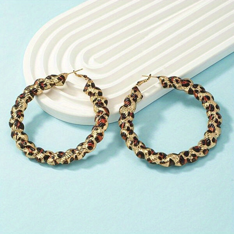 Leopard Pattern Hoop Earrings Hot Pink Gold Vocation Style Gift
