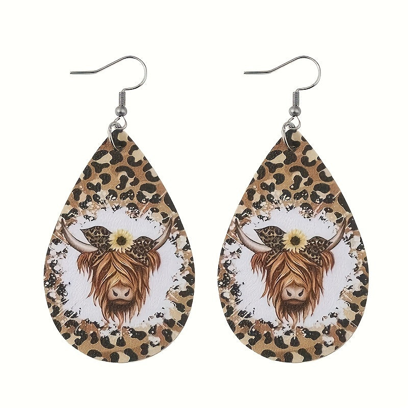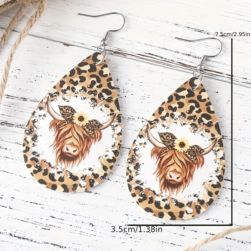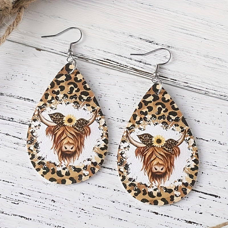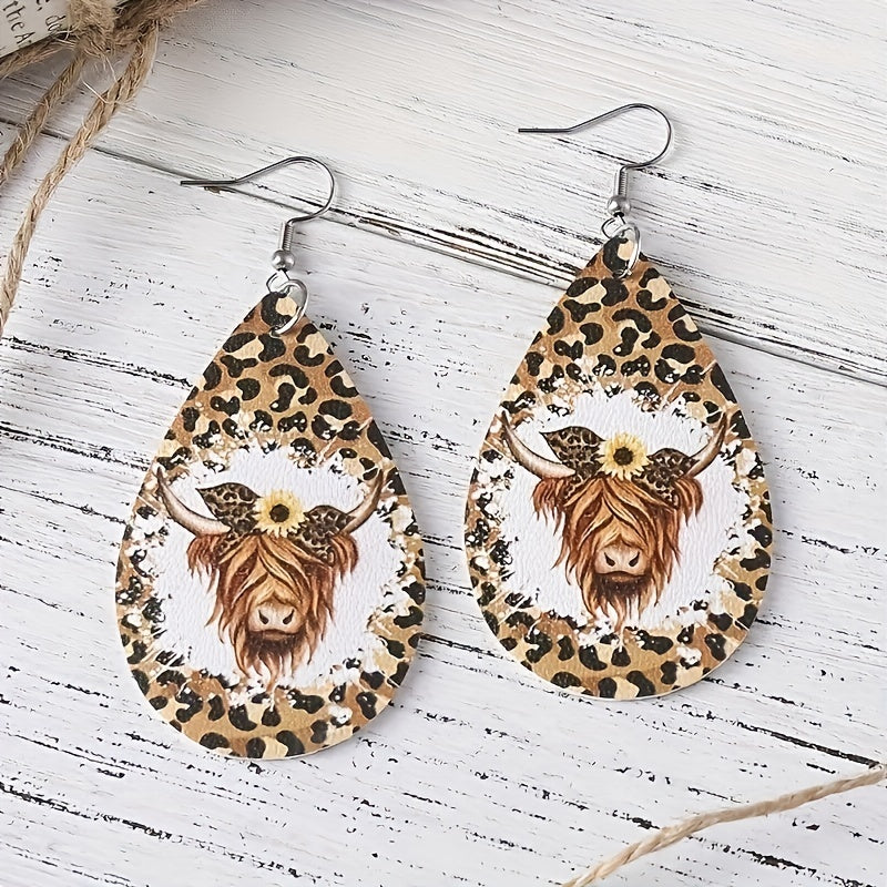 These earrings feature a leopard print bull head pattern, made of high-quality PU leather, suitable for male boys who appreciate a national retro style.