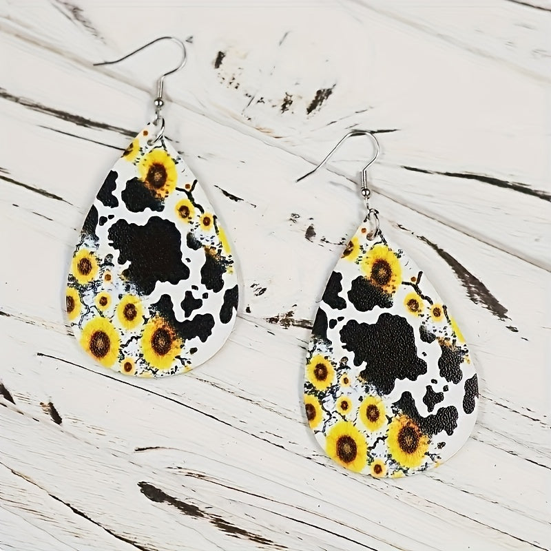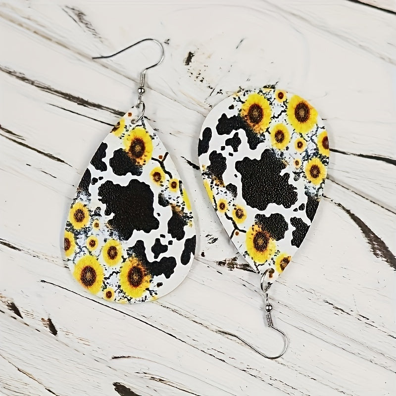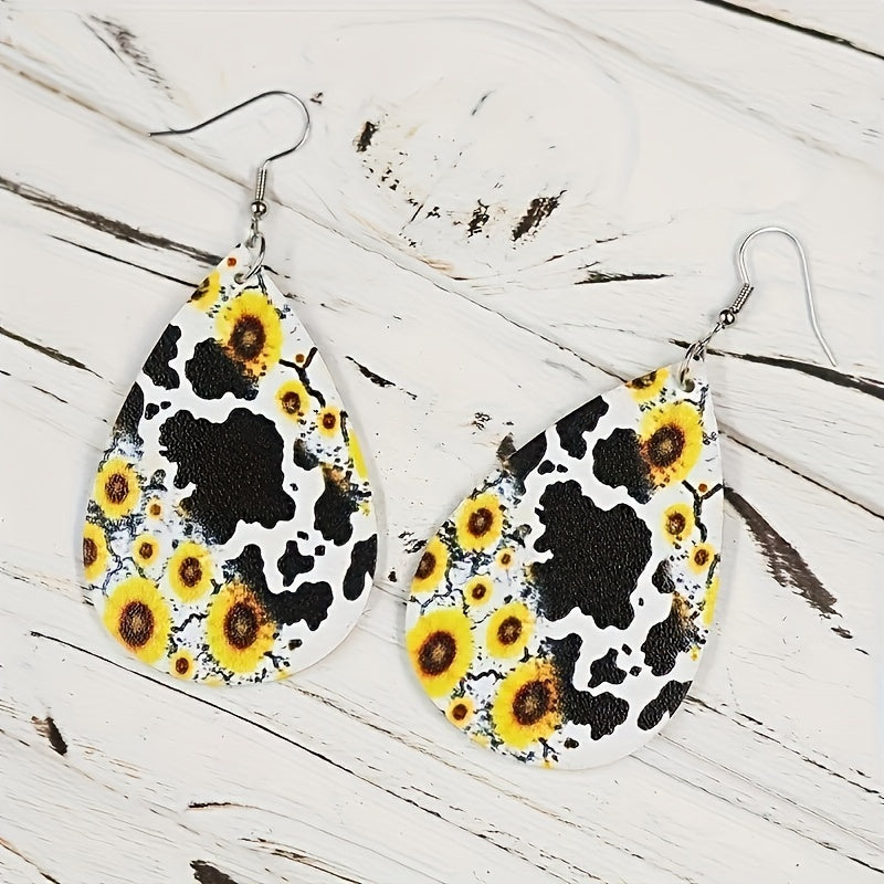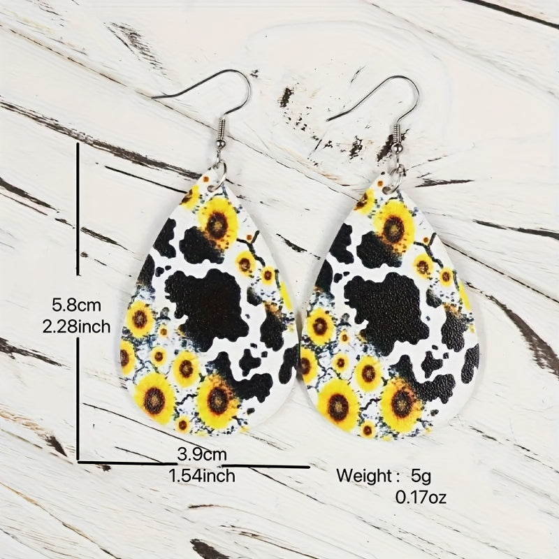 Add a touch of wild style to your holiday look with these leopard print and cow sunflower leather earrings. Perfect for parties and events, these earrings are a unique and eye-catching accessory.