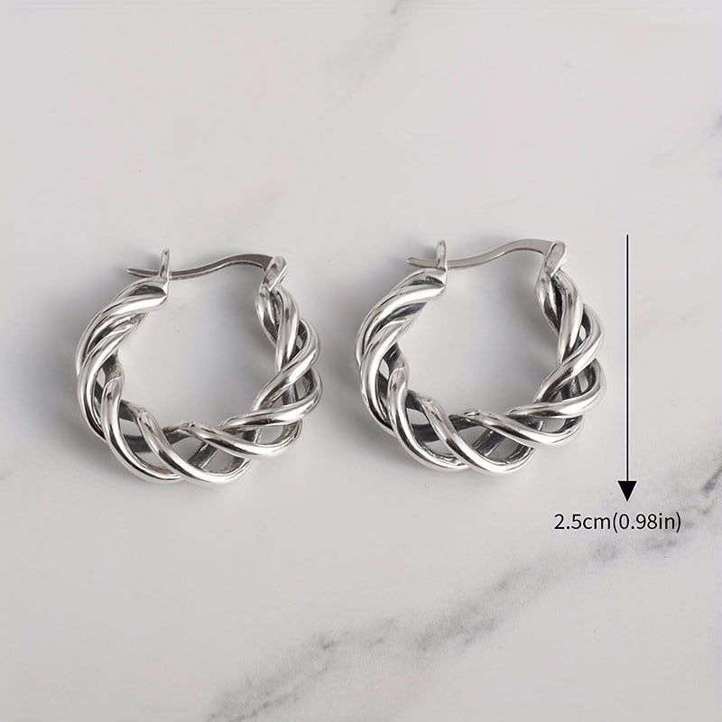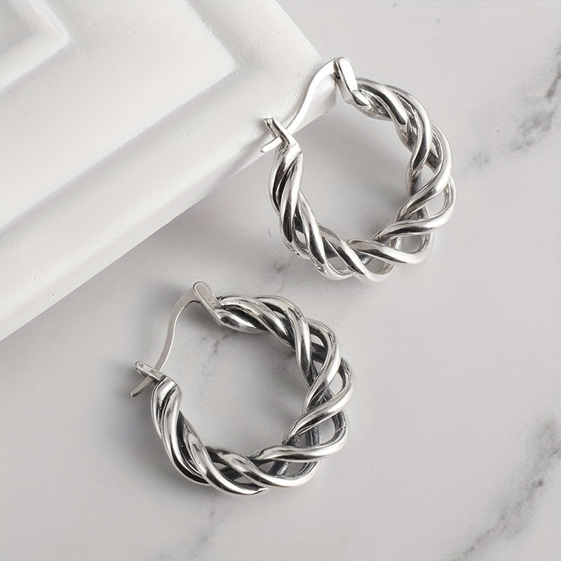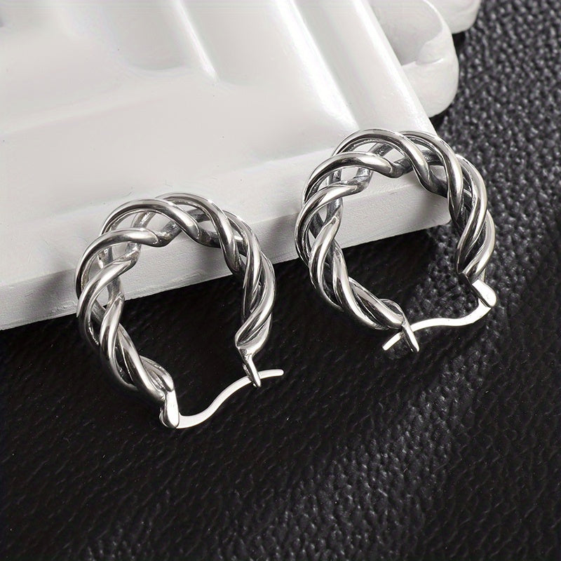 Stand out with these unique braided twisted hoop earrings. Perfect for parties and rock-inspired looks. Show off your style and make a statement with these earrings.