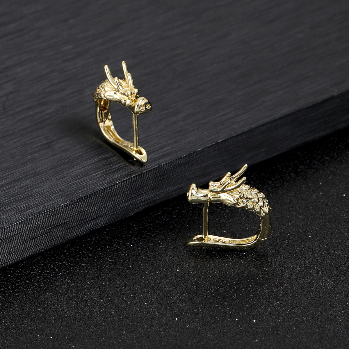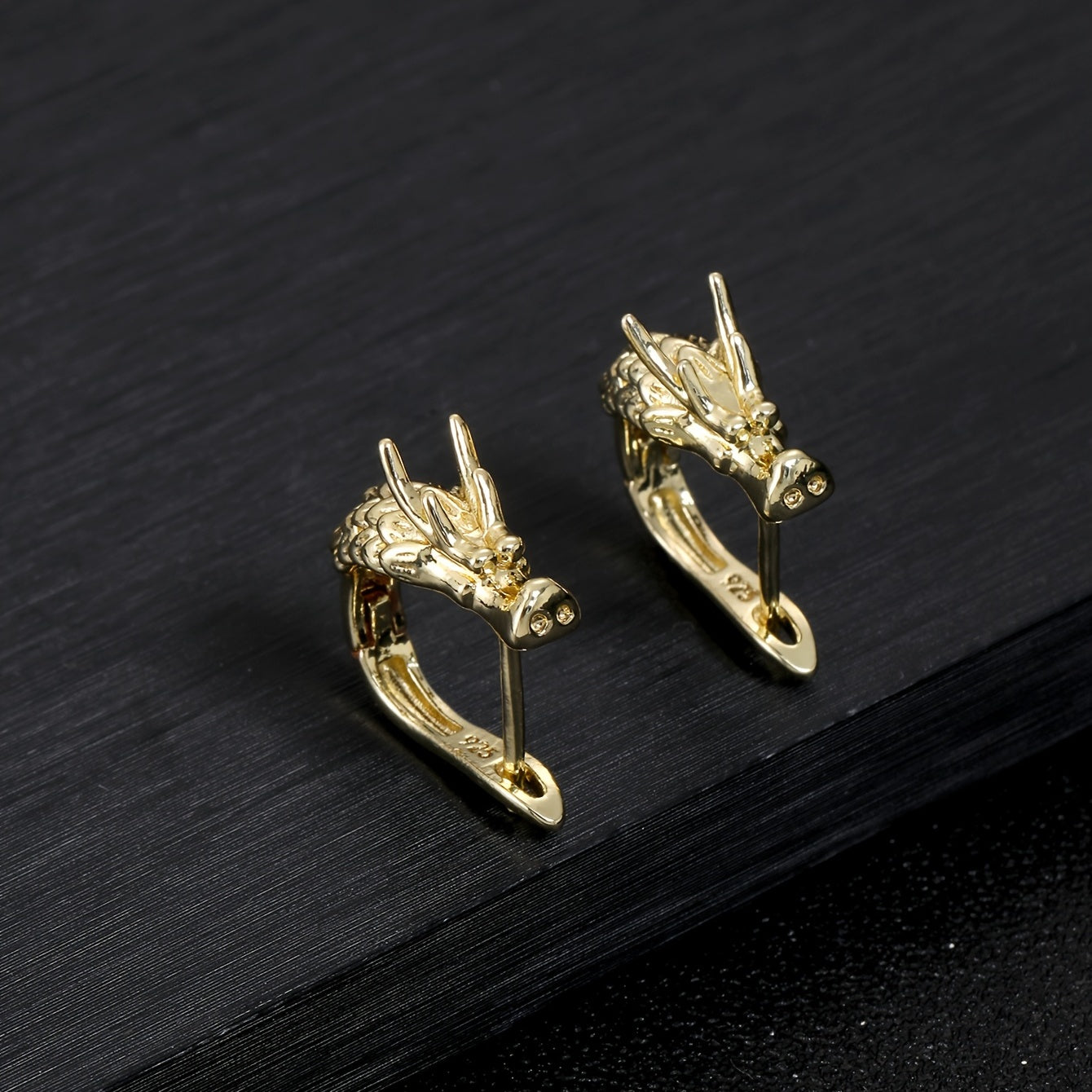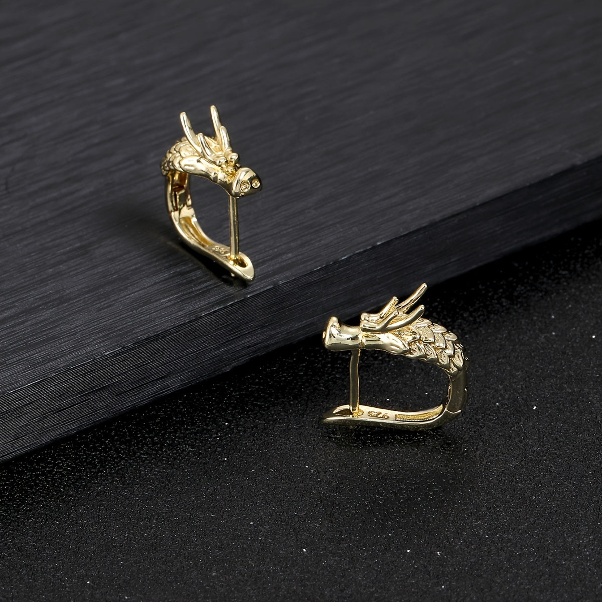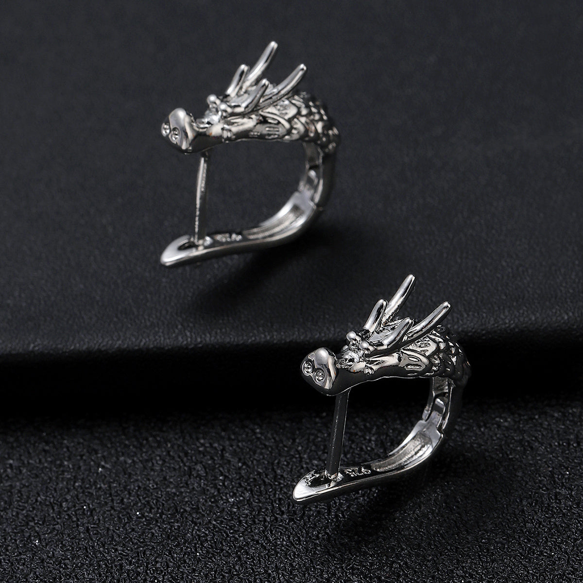 Men's Dragon Head Statement Stud Earrings Punk Style