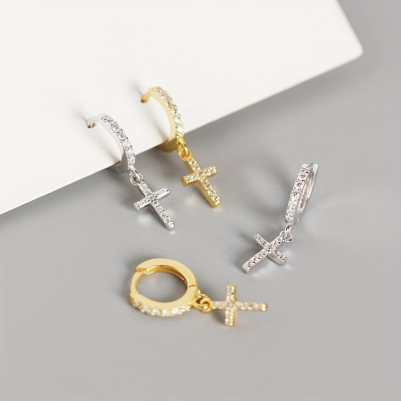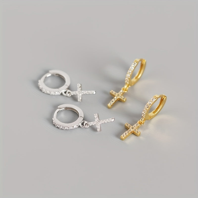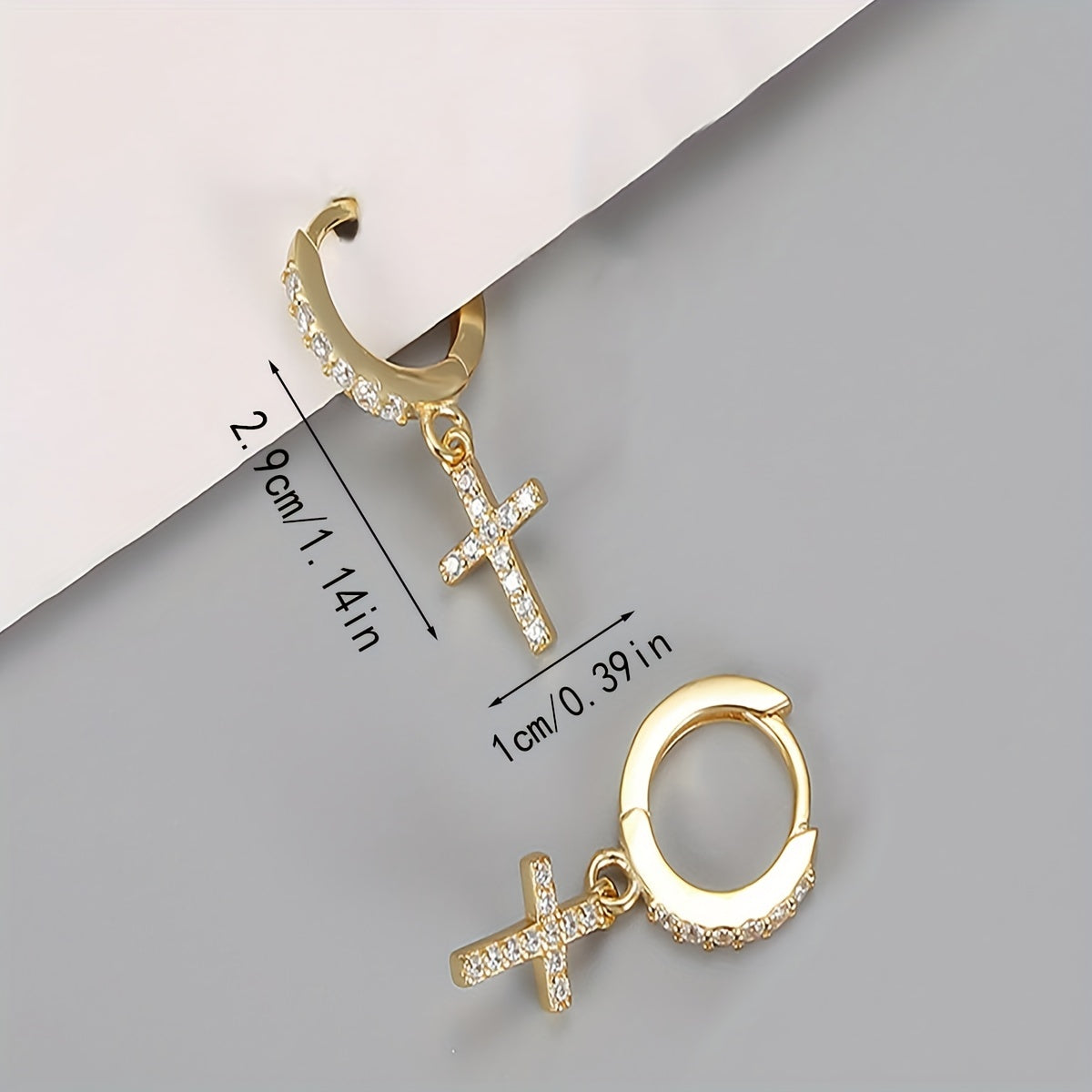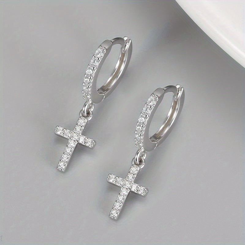 Add a touch of personality with these stylish earrings featuring full rhinestones and a cross design.