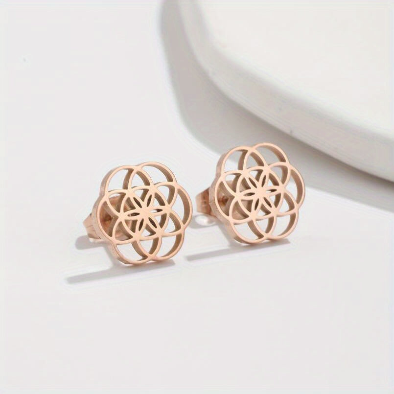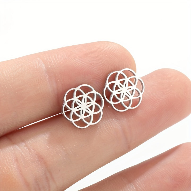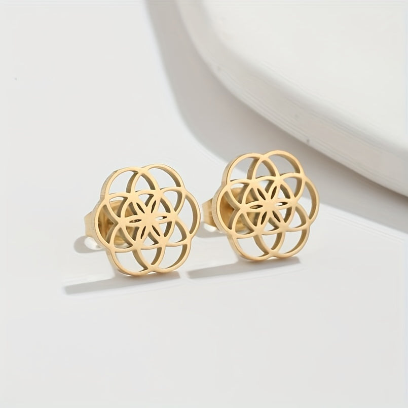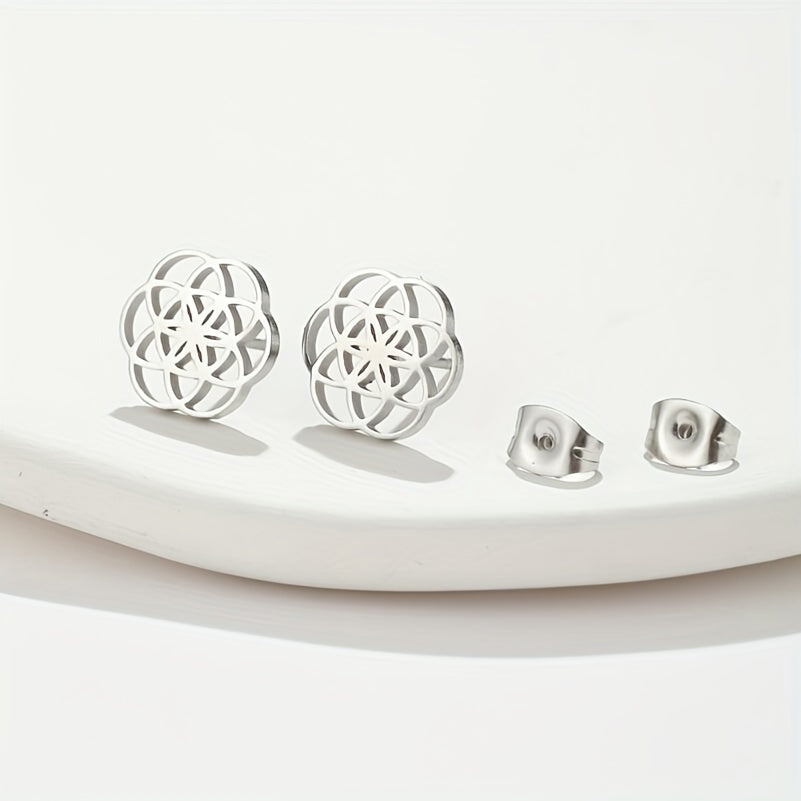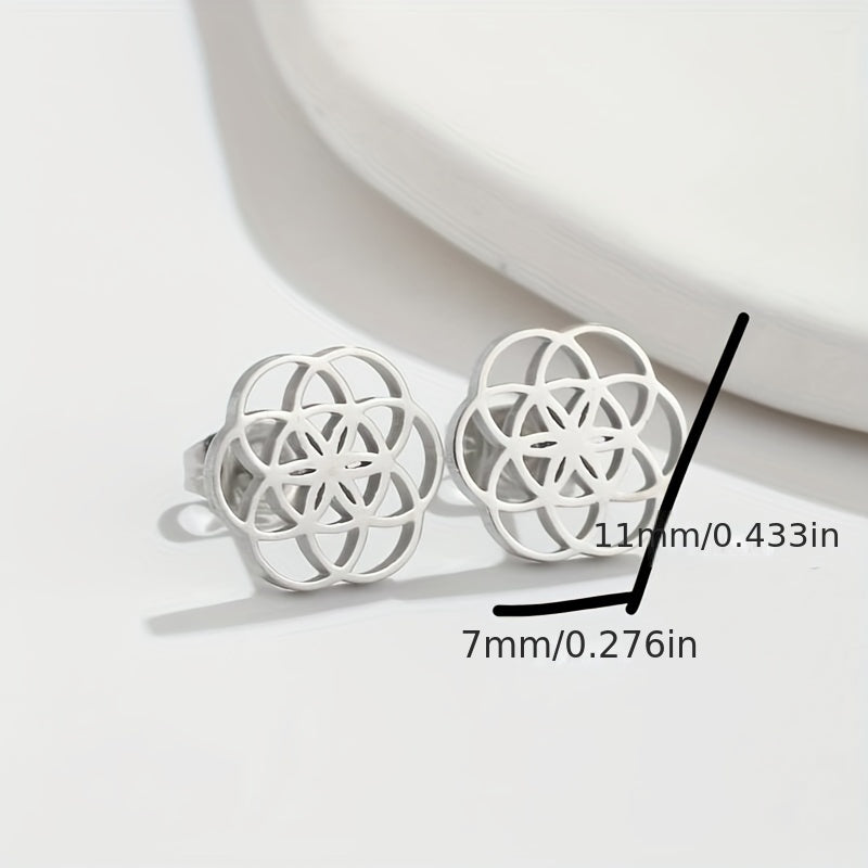 Get these trendy hot selling earrings for men crafted from stainless steel. The circular design features hollowed out flowers, creating a unique and stylish look.