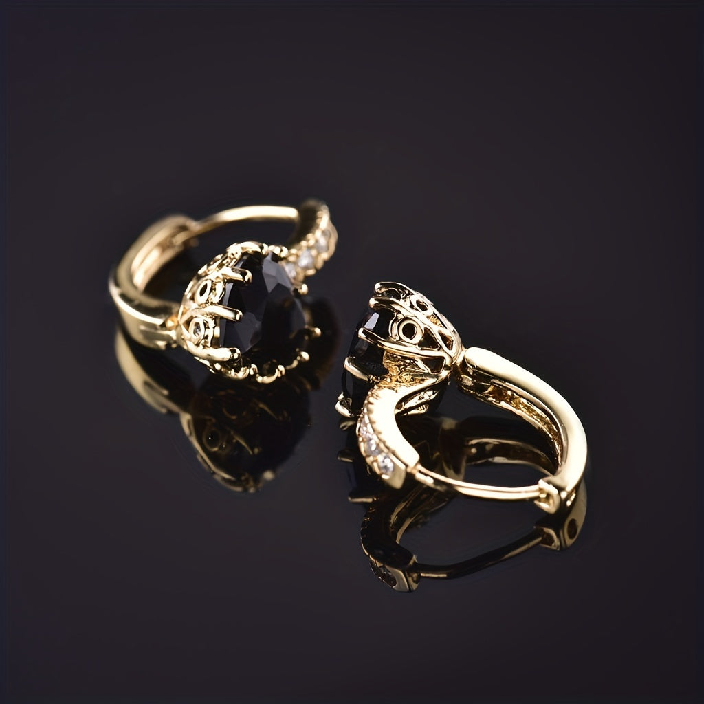 Add a touch of style with these golden stud earrings. Features a double huggie hoop design suitable for men with one ear hole.