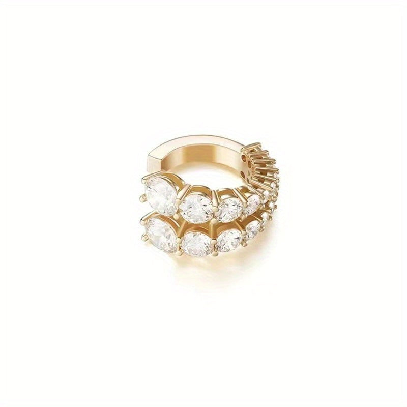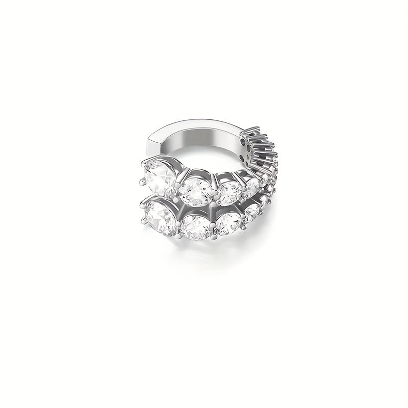 Enhance your look with these stylish C-shaped ear clip earrings featuring a layered design with faux diamonds. Perfect for men without ear piercings.