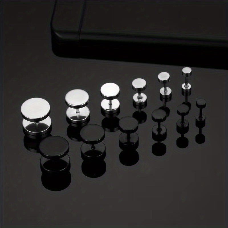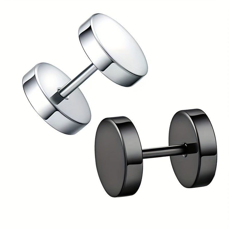 Enhance your style with these men's silver round disc earrings made of 316L medical stainless steel. The earrings feature bone clasps that can be twisted at both ends for a secure fit.